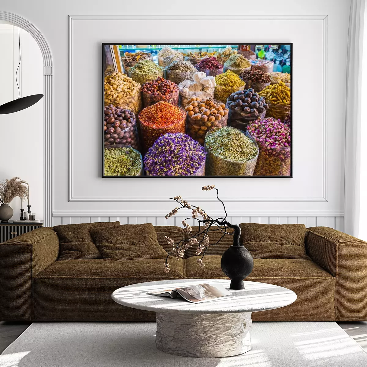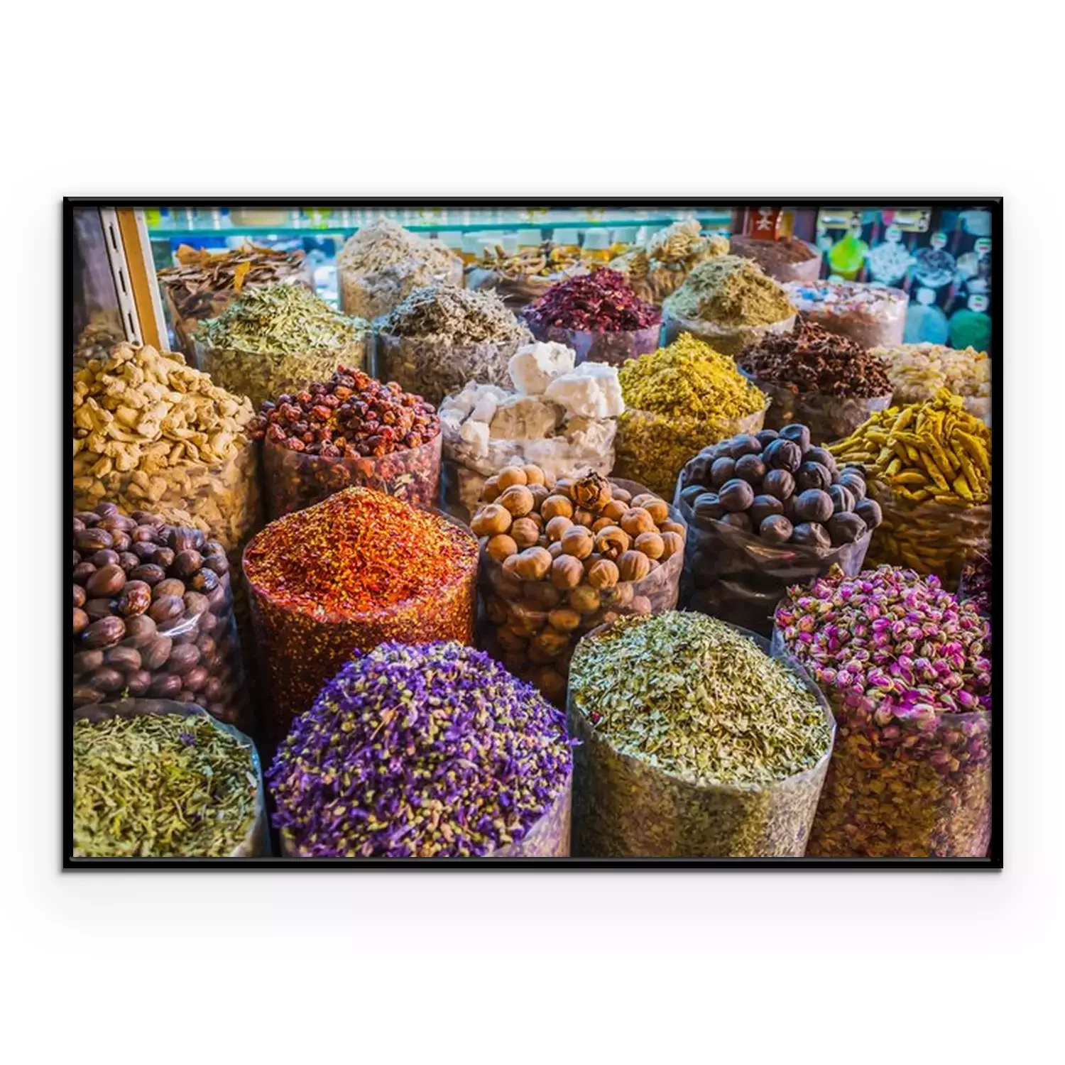 Poster  herbes séchées fleurs épices dans le souk des épices à Deira