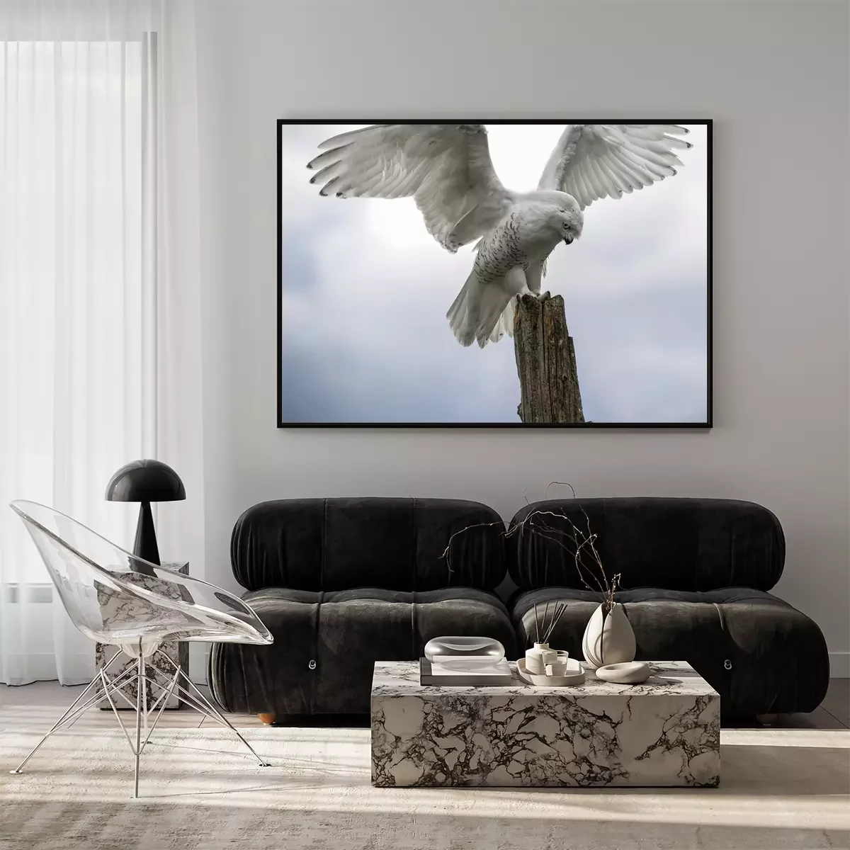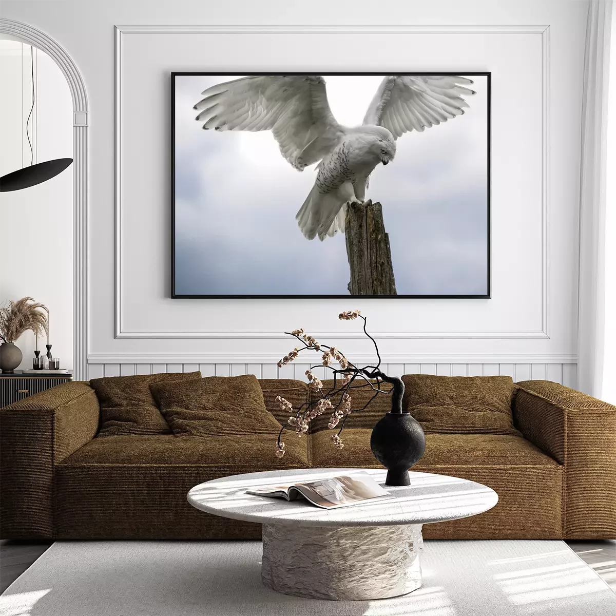 Poster : Hibou blanc contre le ciel