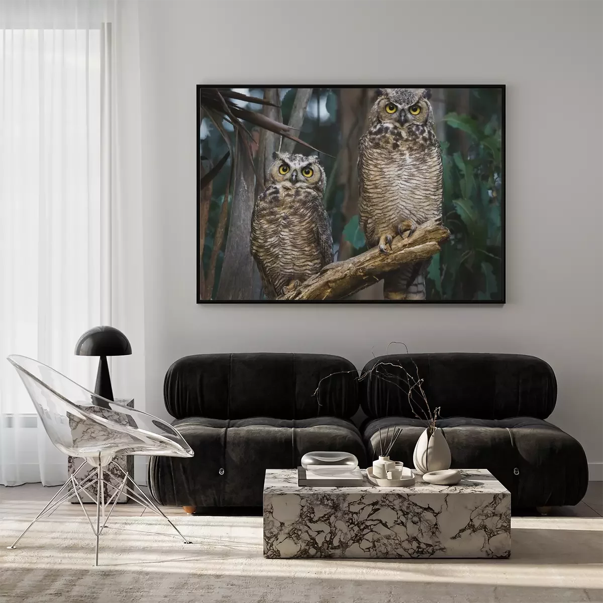 Poster : Hiboux assis sur une branche