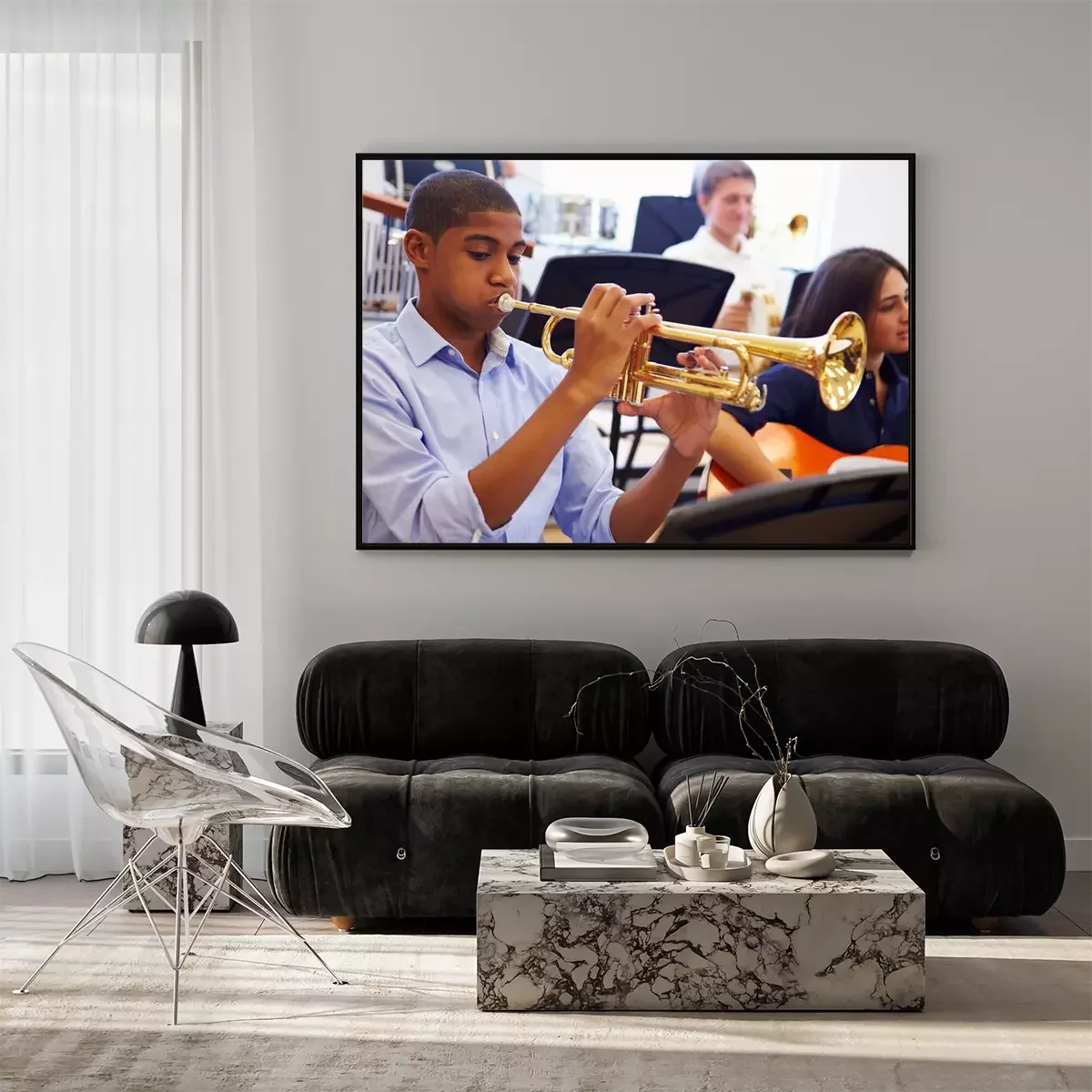 Poster  Homme d'élèves jouant la trompette dans l'orchestre de lycée