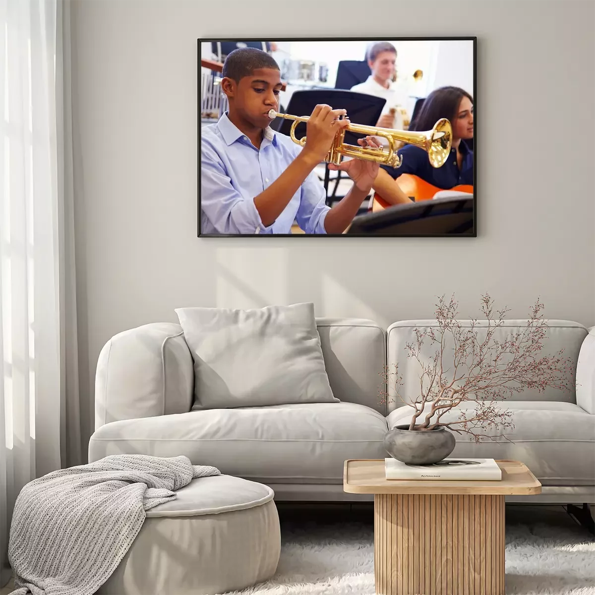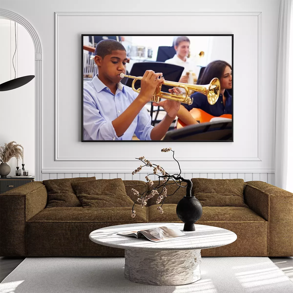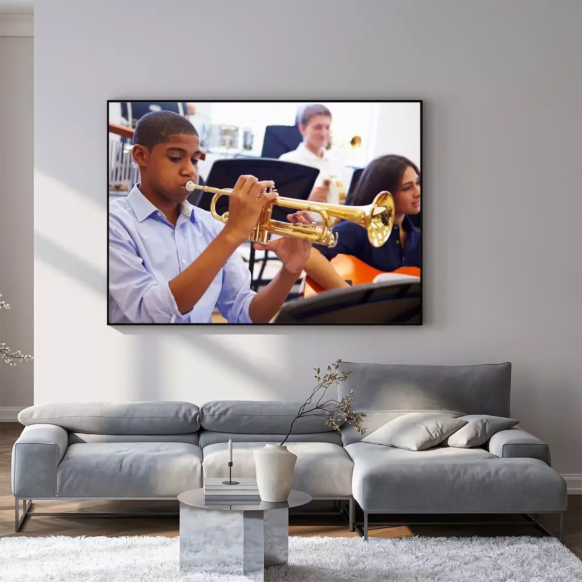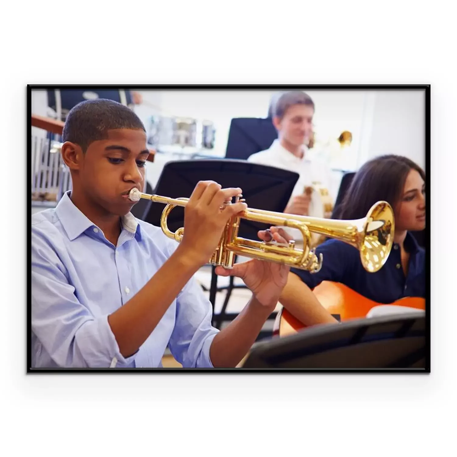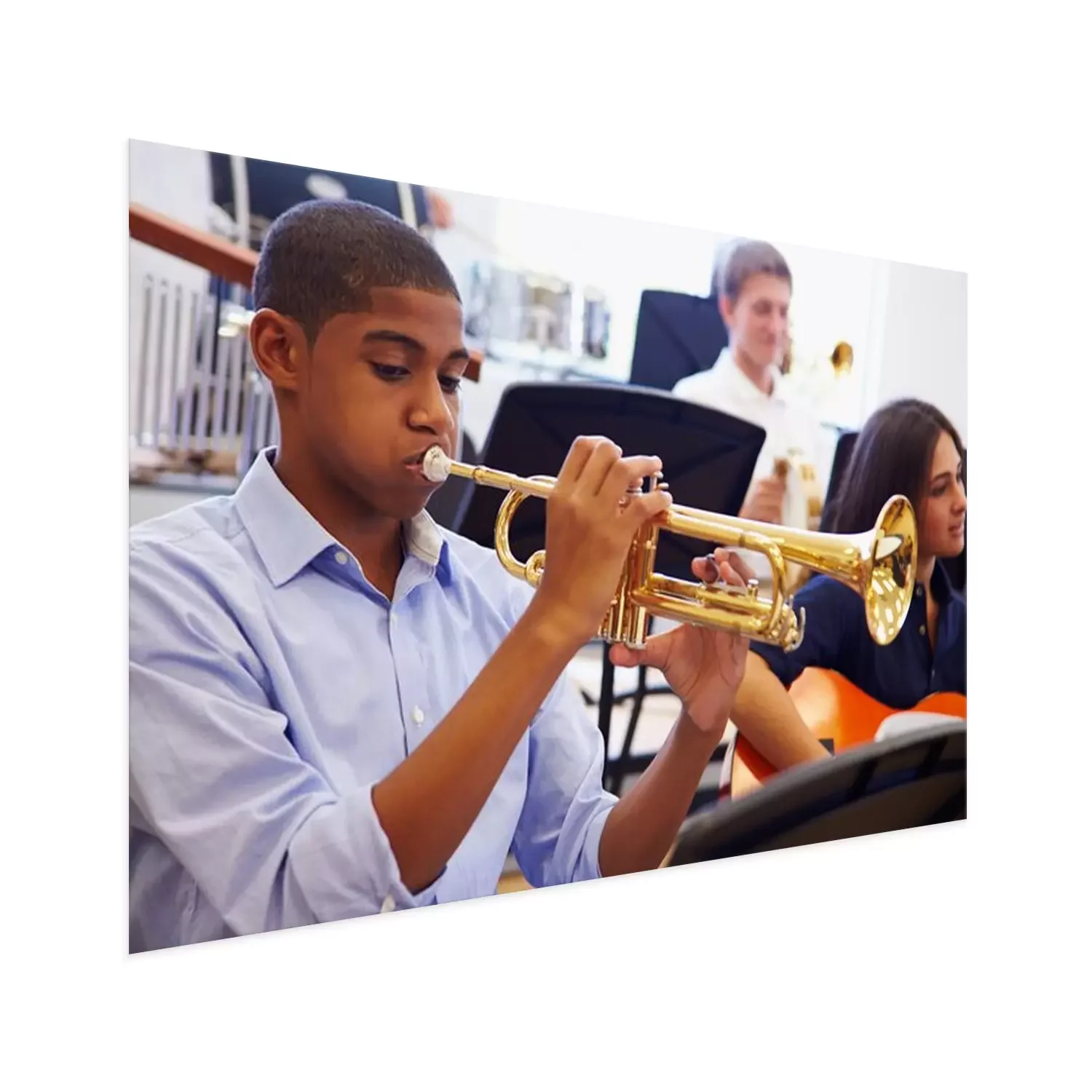 Poster : Homme d'élèves jouant la trompette dans l'orchestre de lycée