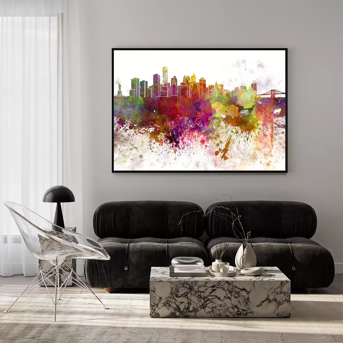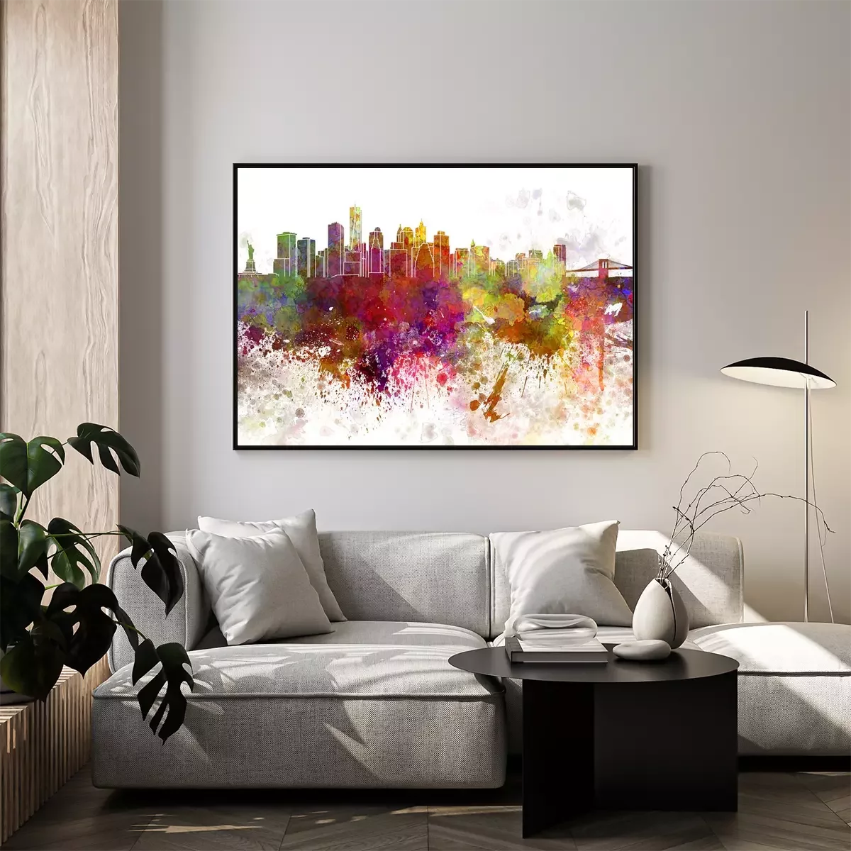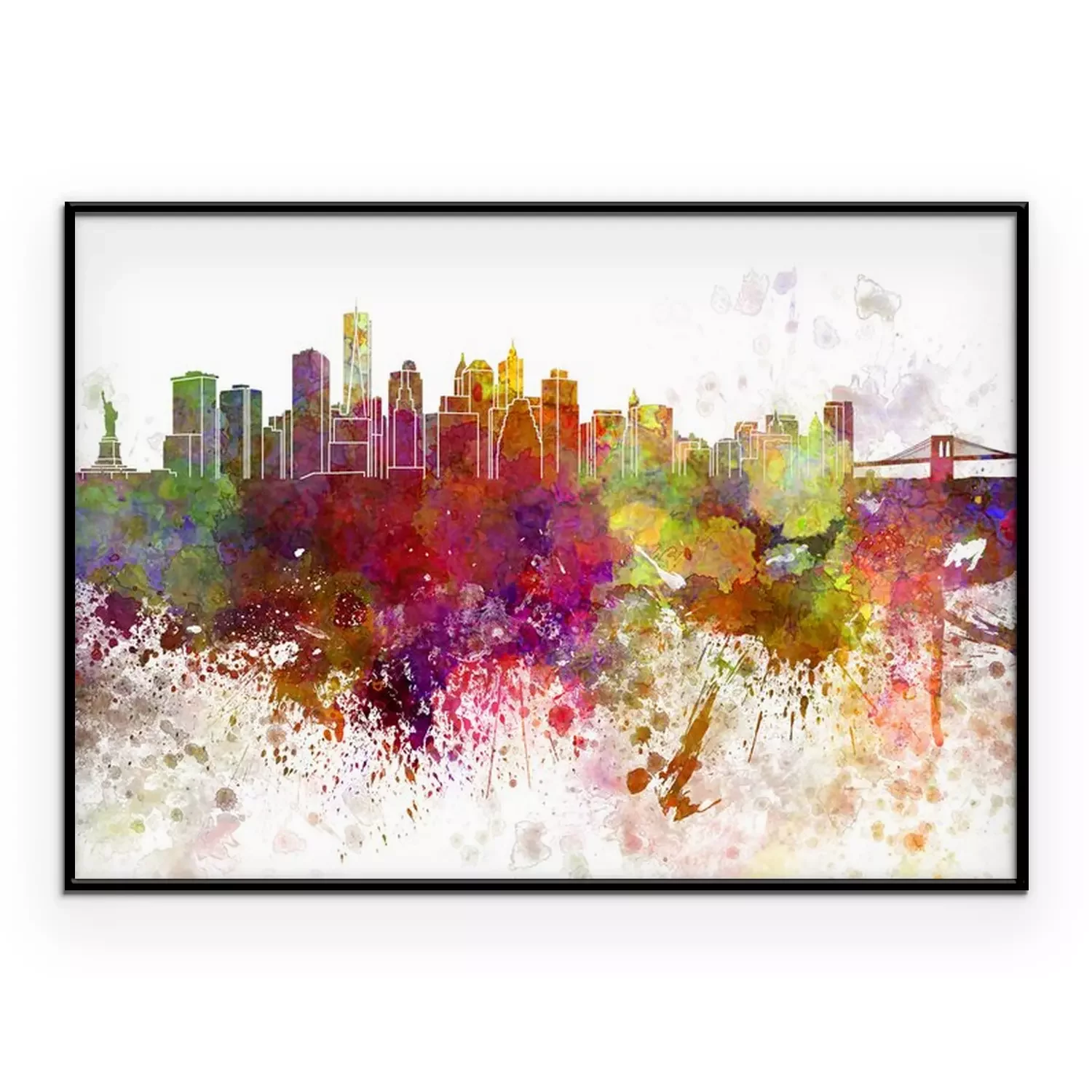 Poster : Horizon de New York v2 en fond d'aquarelle