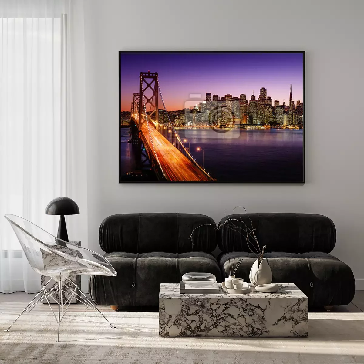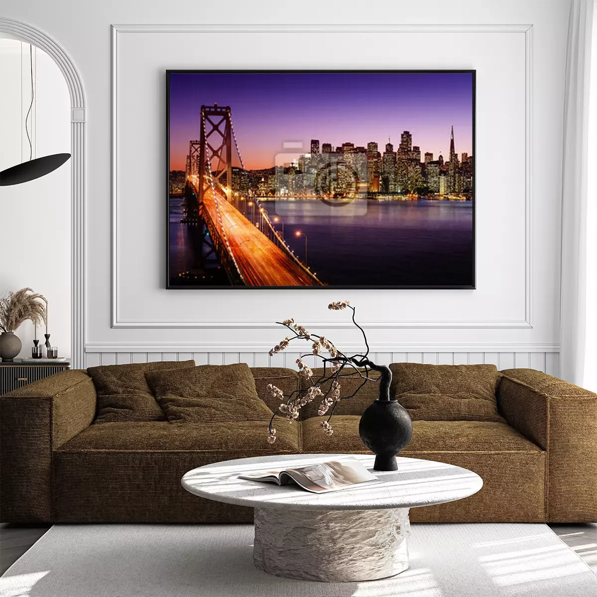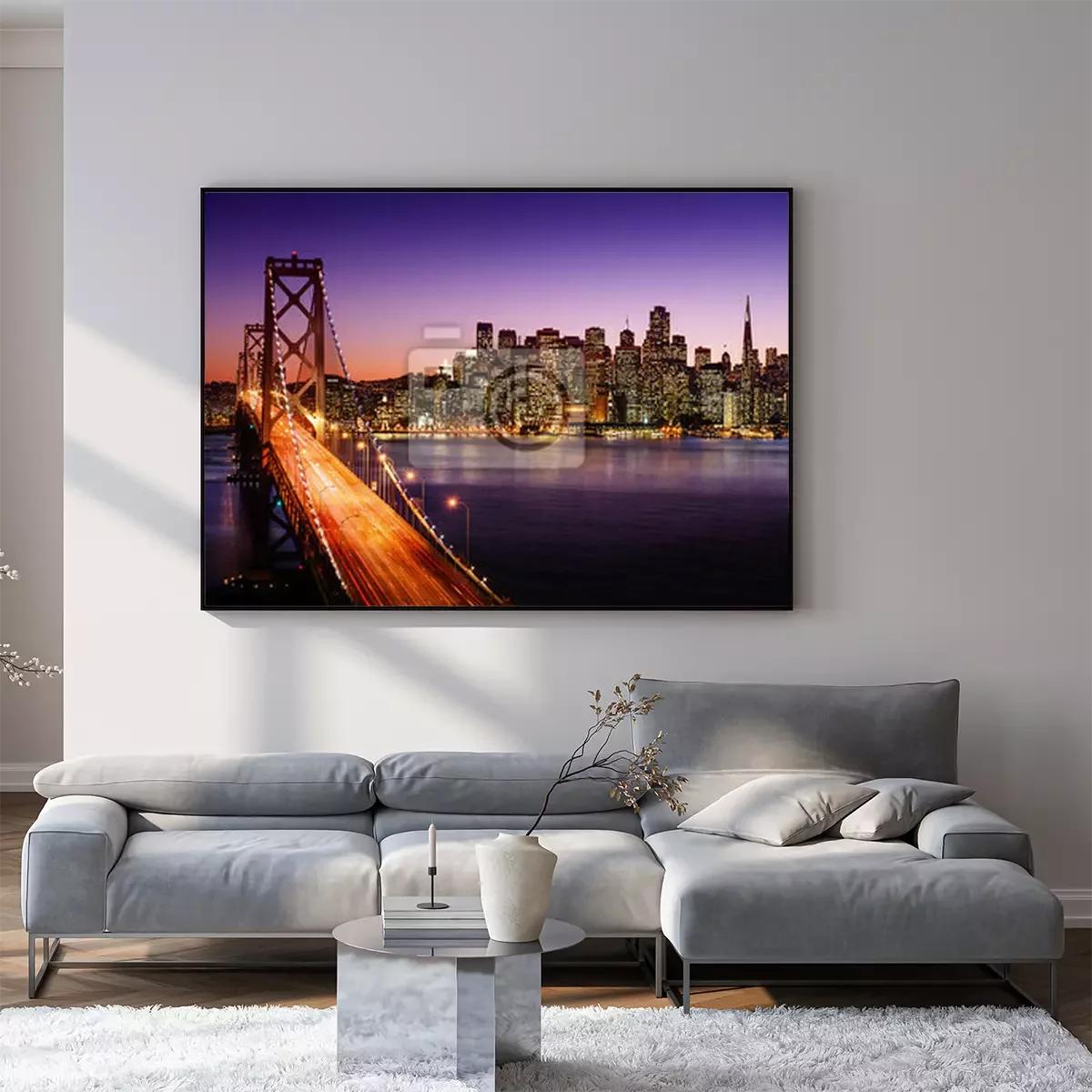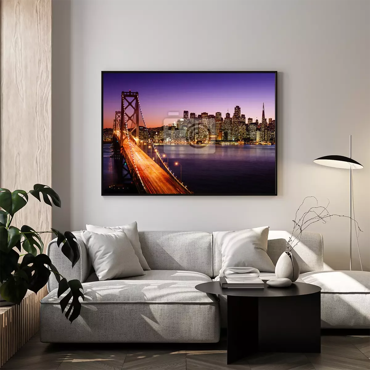 Poster  Horizon de San Francisco et Bay Bridge au coucher du soleil, en Californie