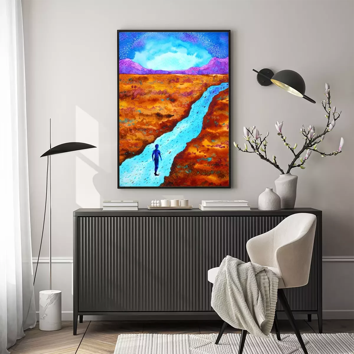 Poster : human walking abstract mind spiritual way watercolor painting art illustration design hand drawing