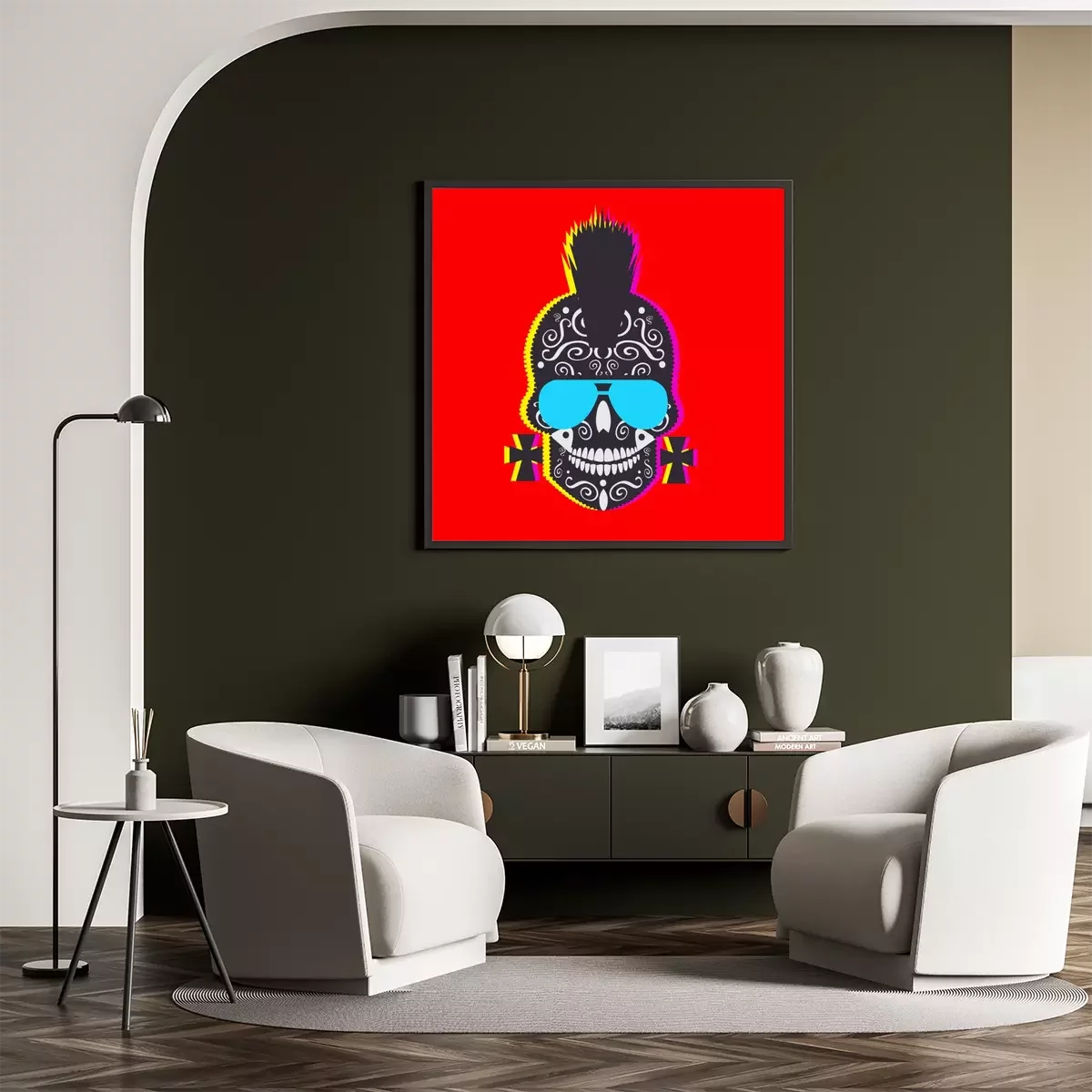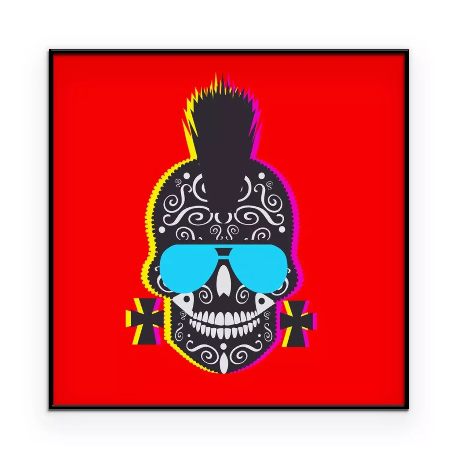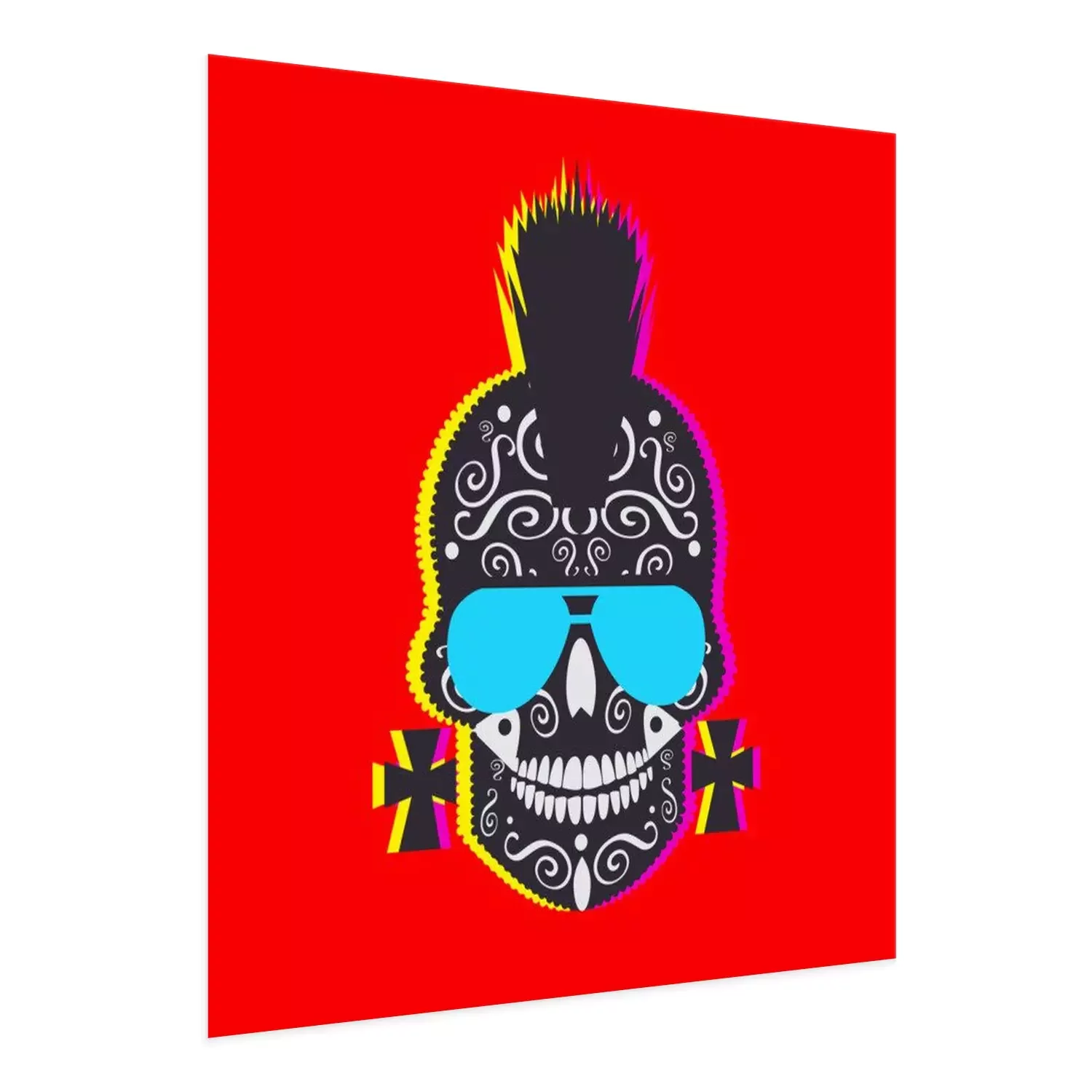 Poster  Icône de crâne moderne, avec lunettes de soleil et Mohawk, design d'ombre duo