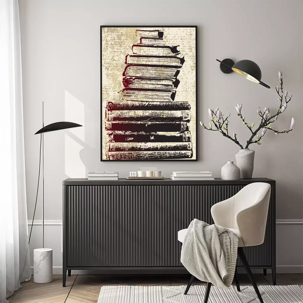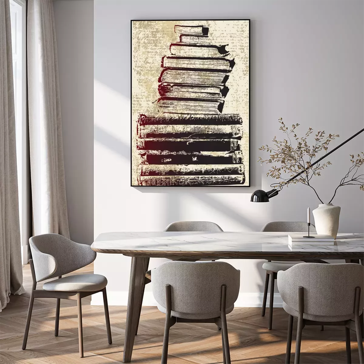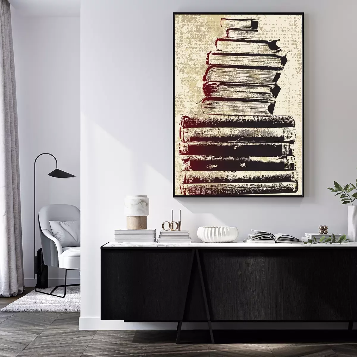 Poster : Illustration avec une pile de livres
