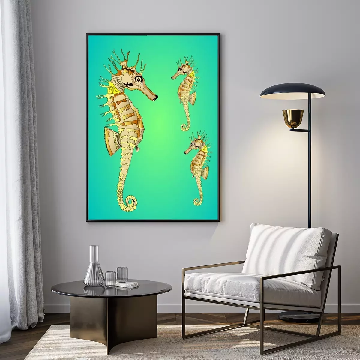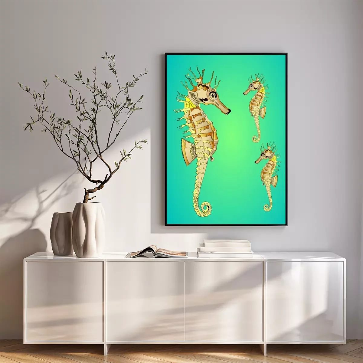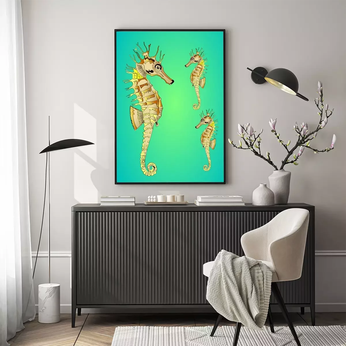 Poster  Illustration d'hippocampes dans l'océan