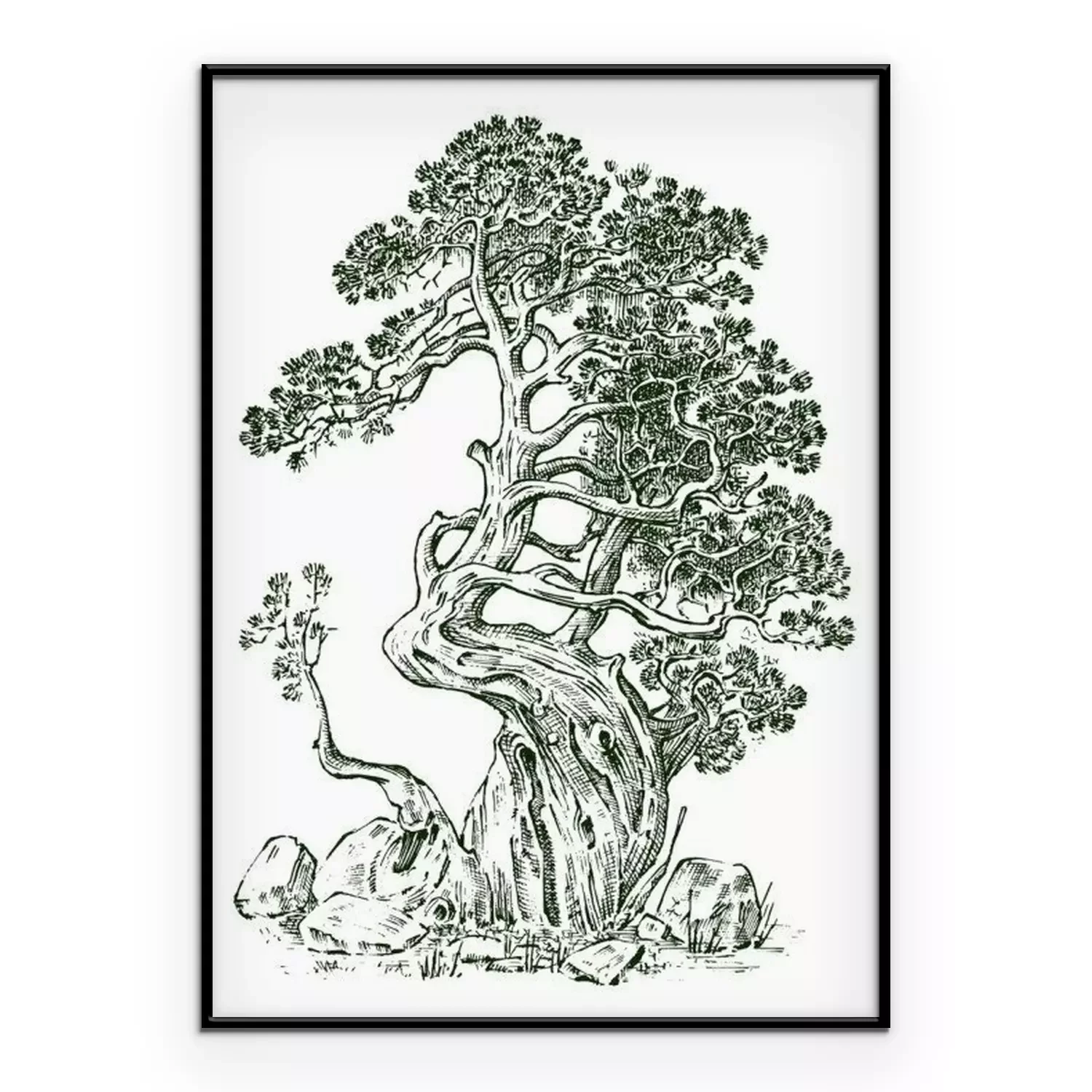 Poster  Illustration d'un pin tordu dans un style de croquis