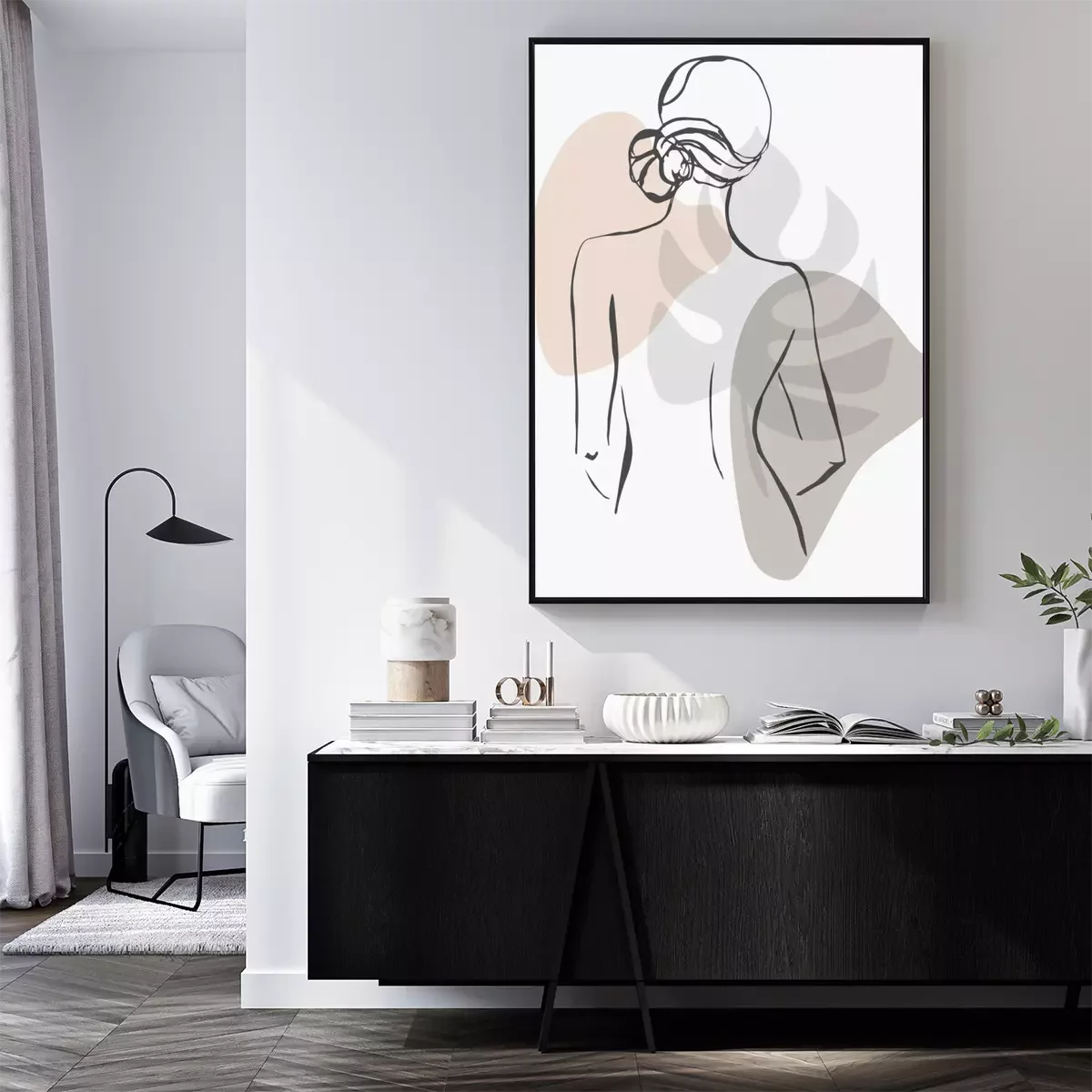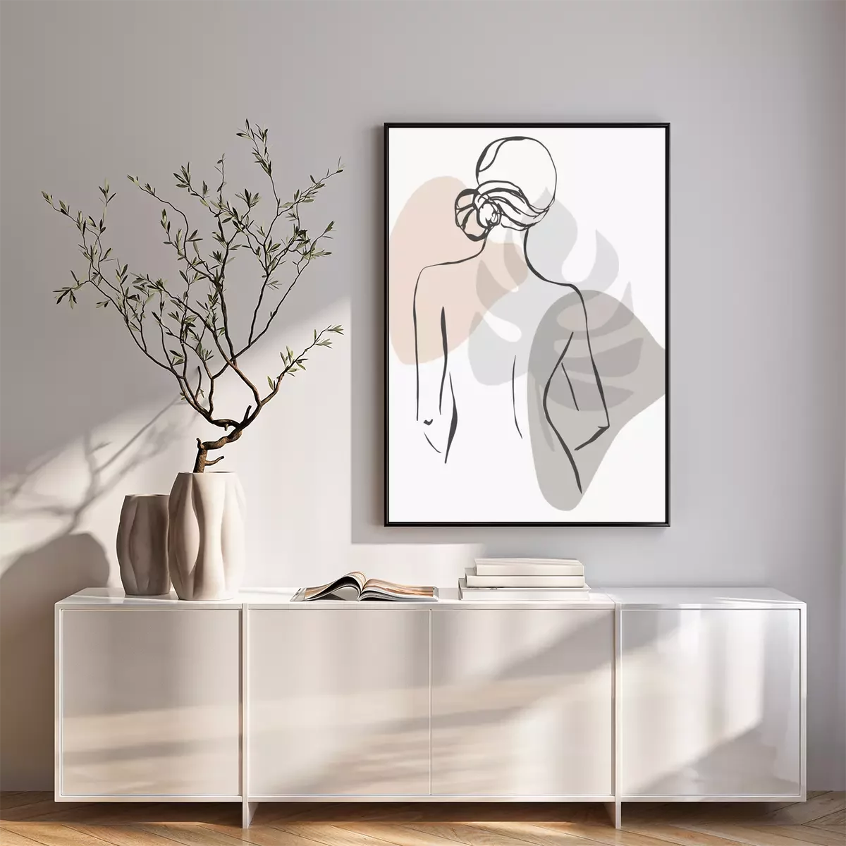 Silhouettes féminines minimalistes sur fond tropical Feuilles