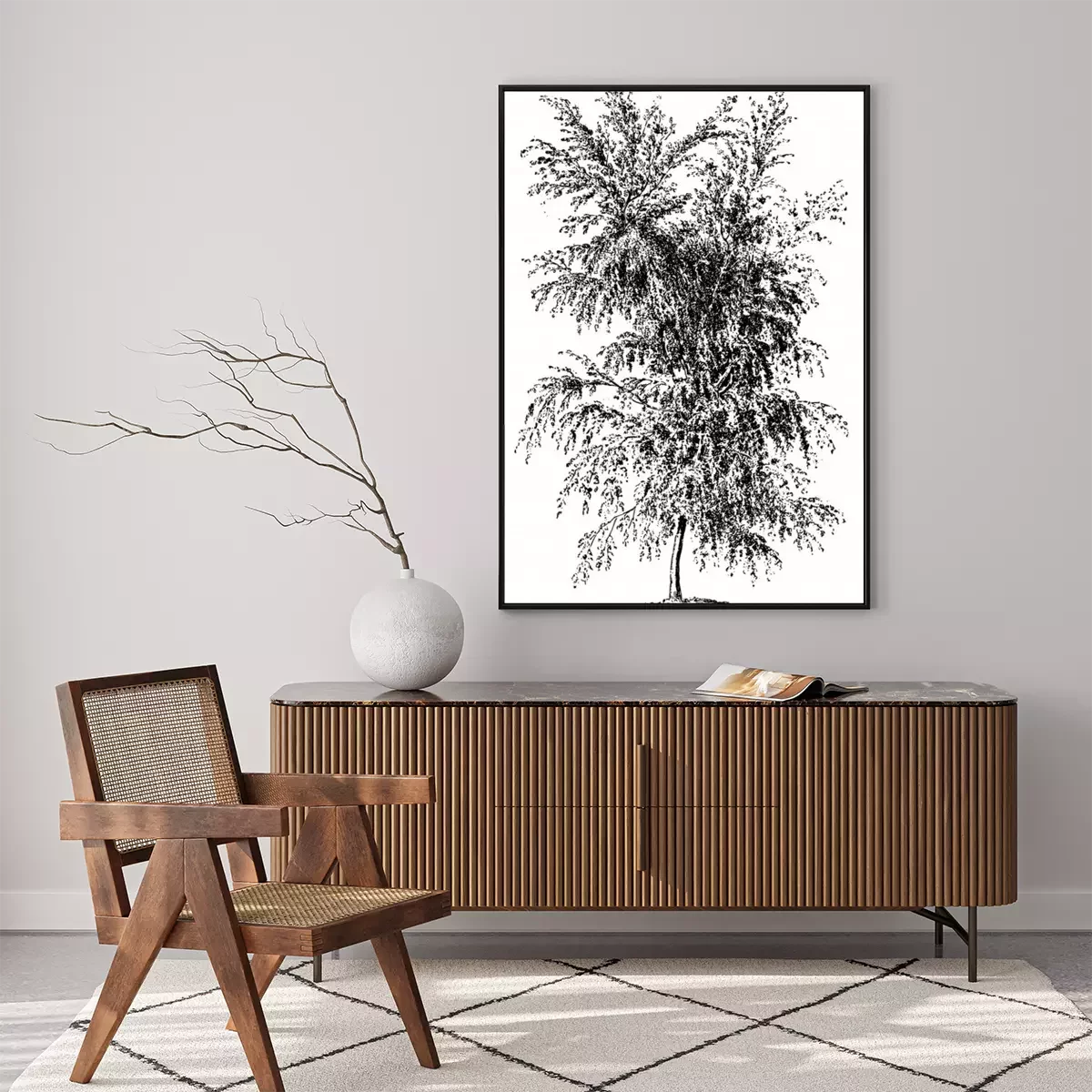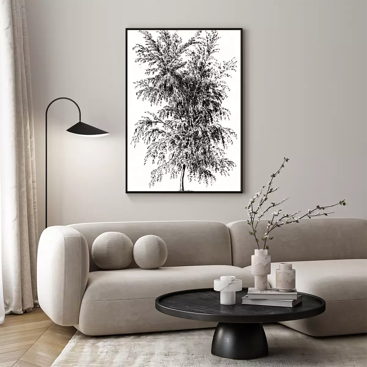 Poster  Illustration d'une forêt de bouleaux se dissipant dans le brouillard