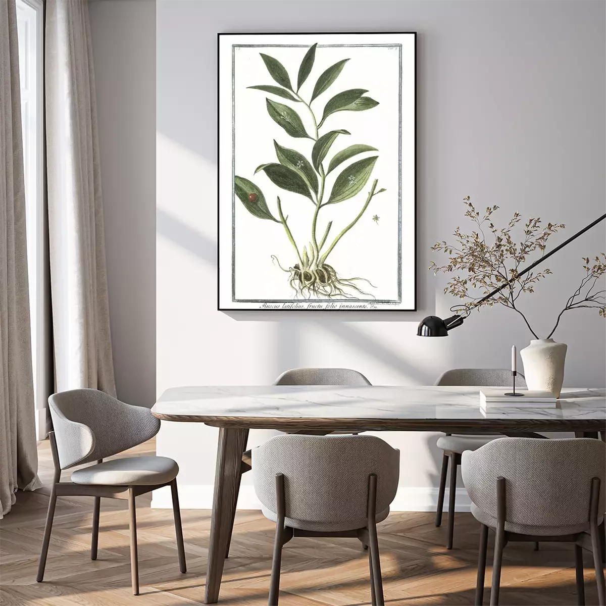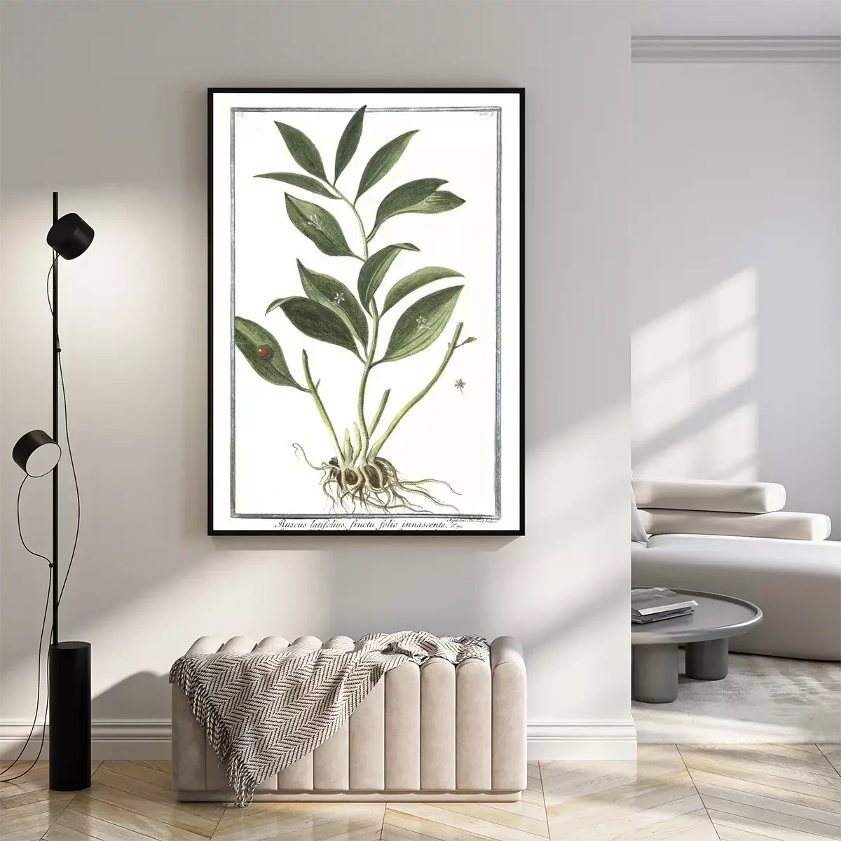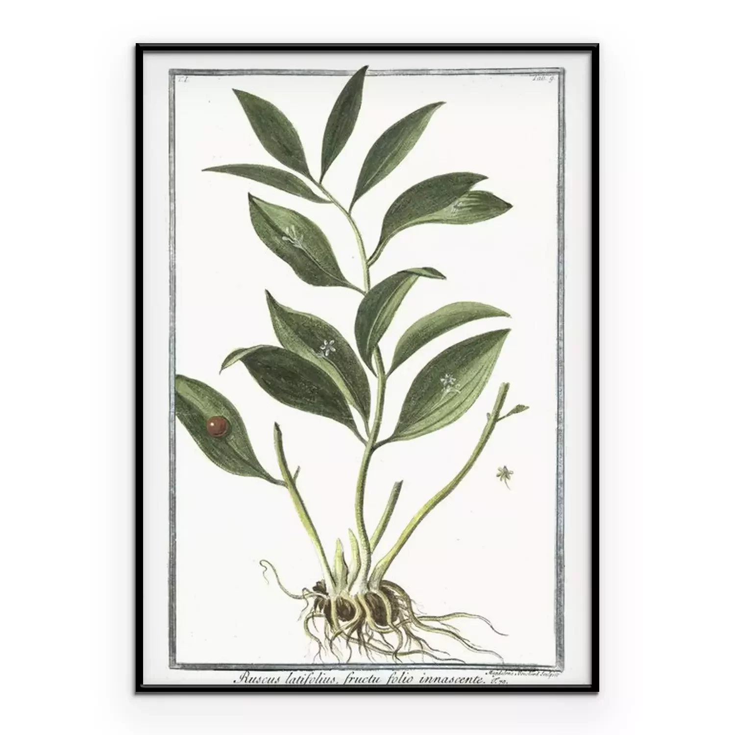 Gravure d'une plante exotique dans un cadre vert