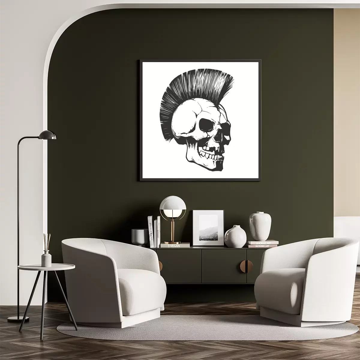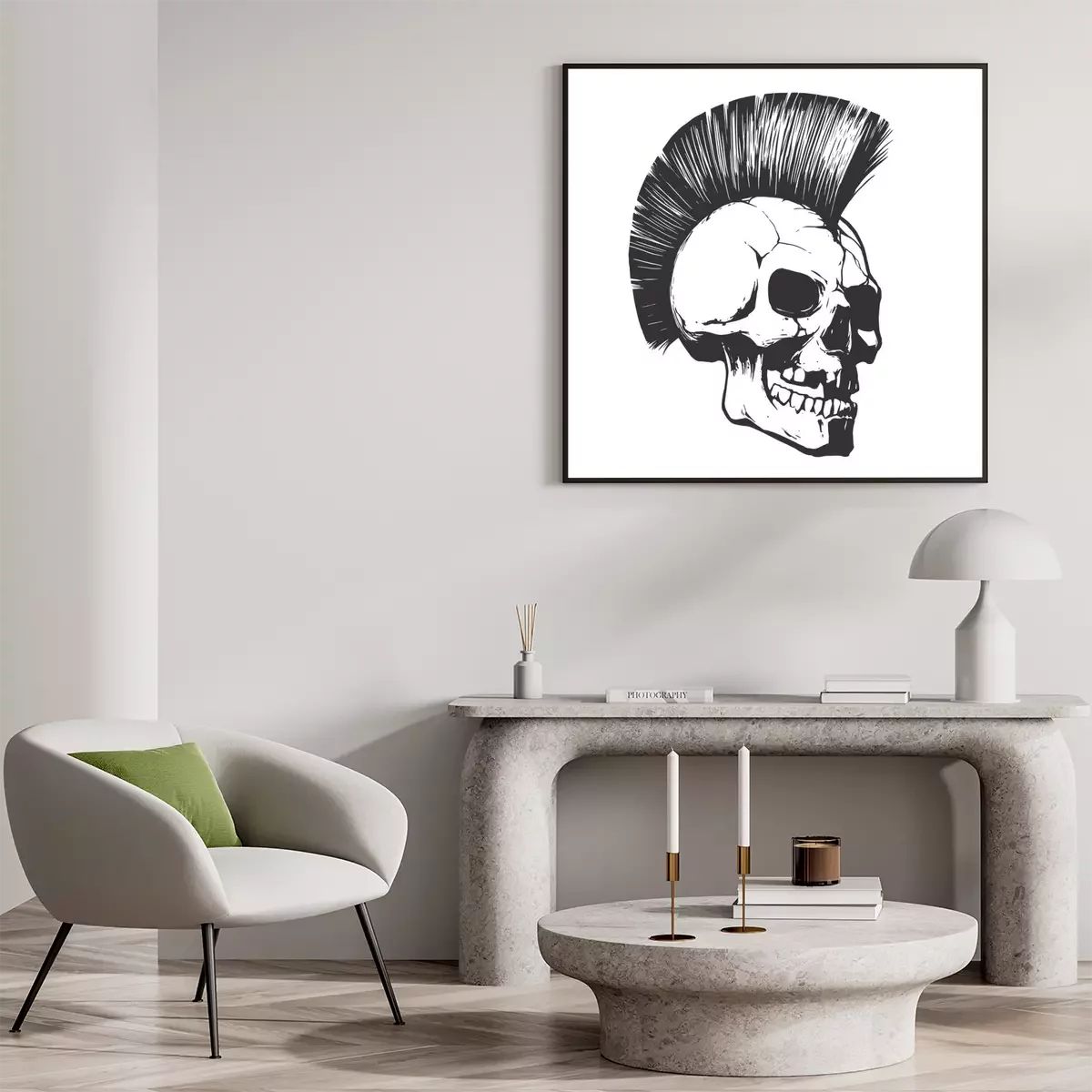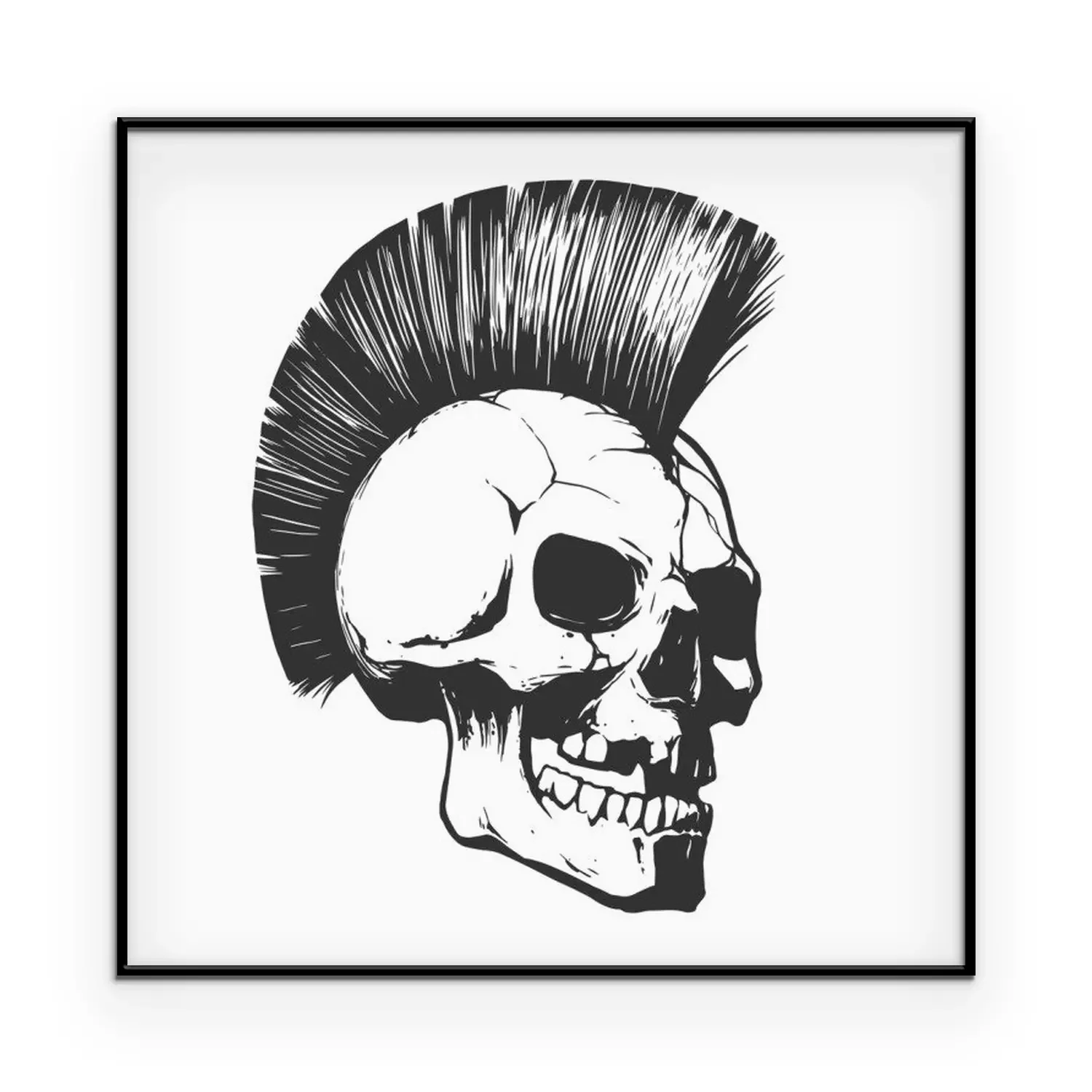 Crâne blanc avec un Mohawk d'os. Une goutte de sang et le texte Hard Rock Hallelujah. Illustration vectorielle crâne punk avec mohawk pour un design t-shirt ou tatouage. Punk rocker. Rouge.
