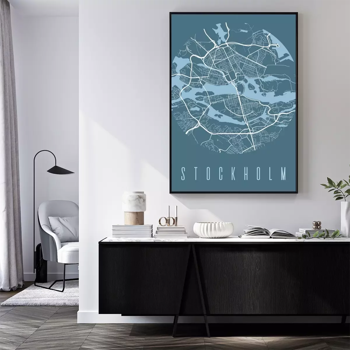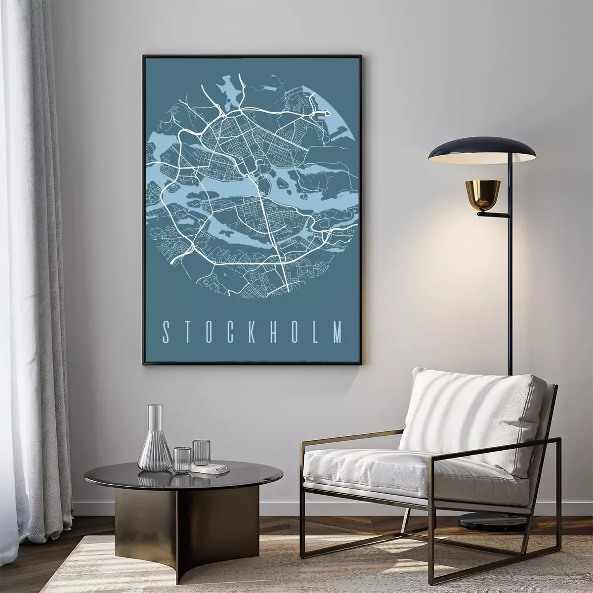 Poster : Illustration de Stockholm avec carte