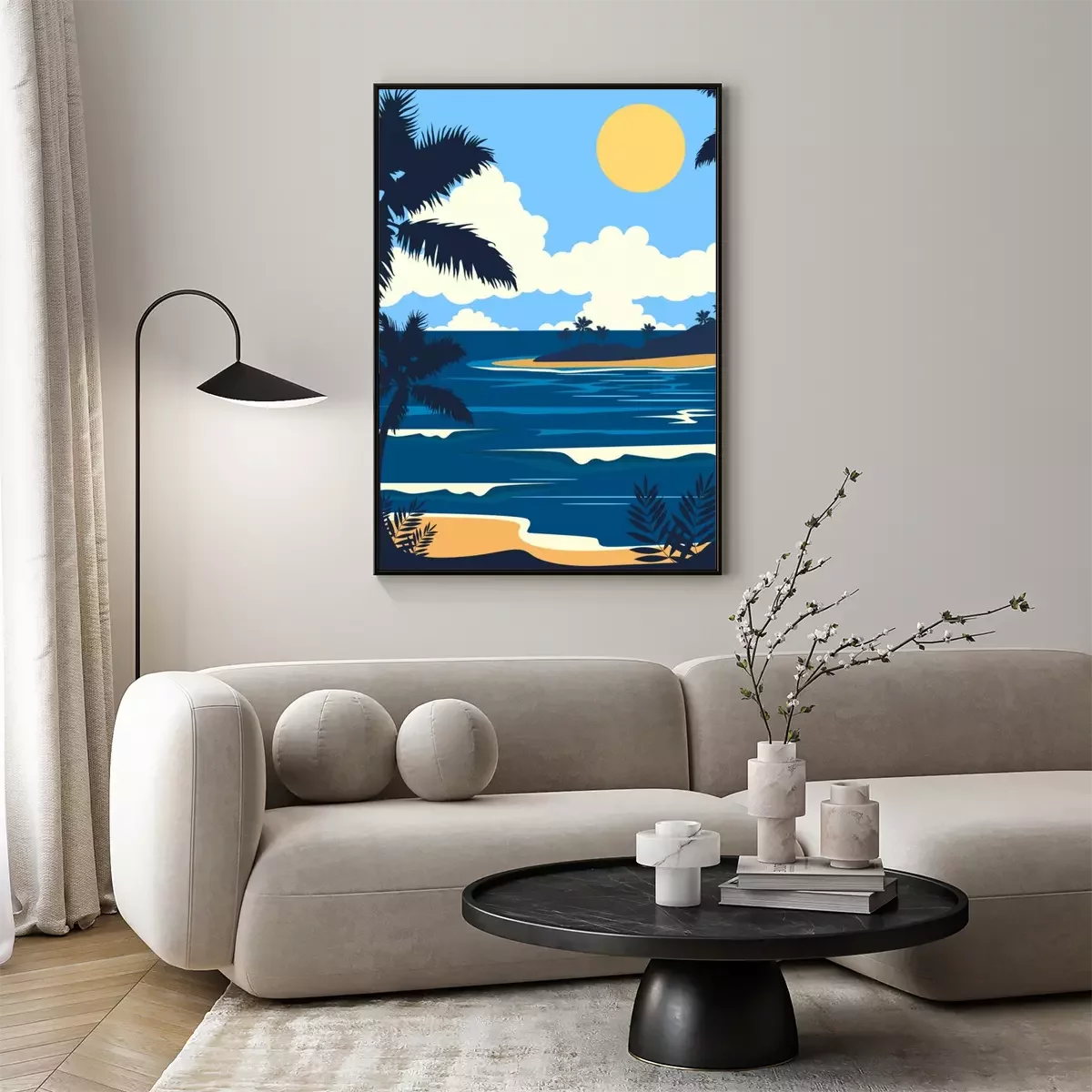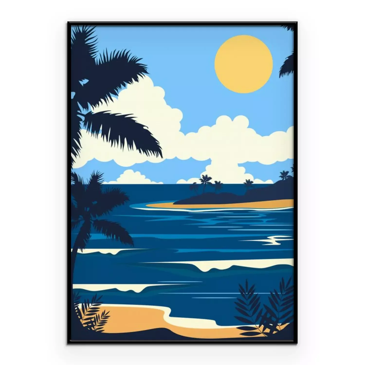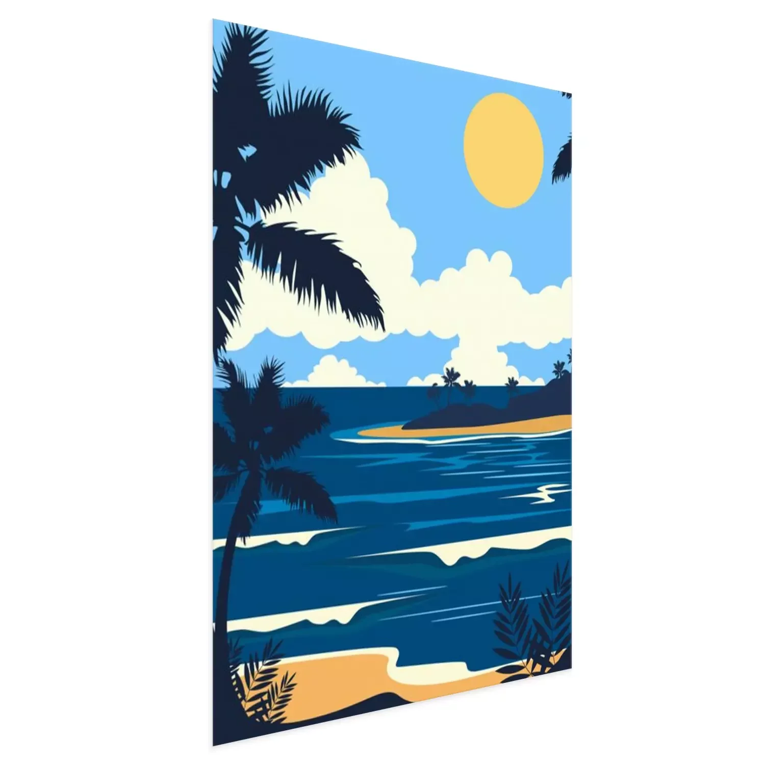 Poster : Illustration minimaliste d'un palmier au bord de la mer