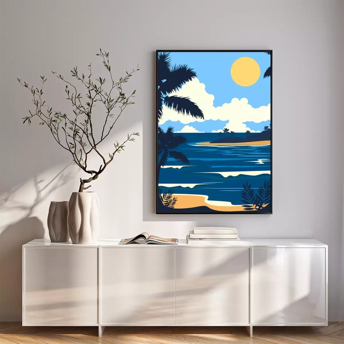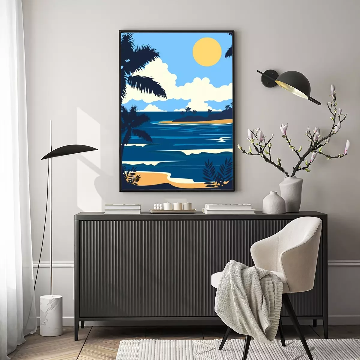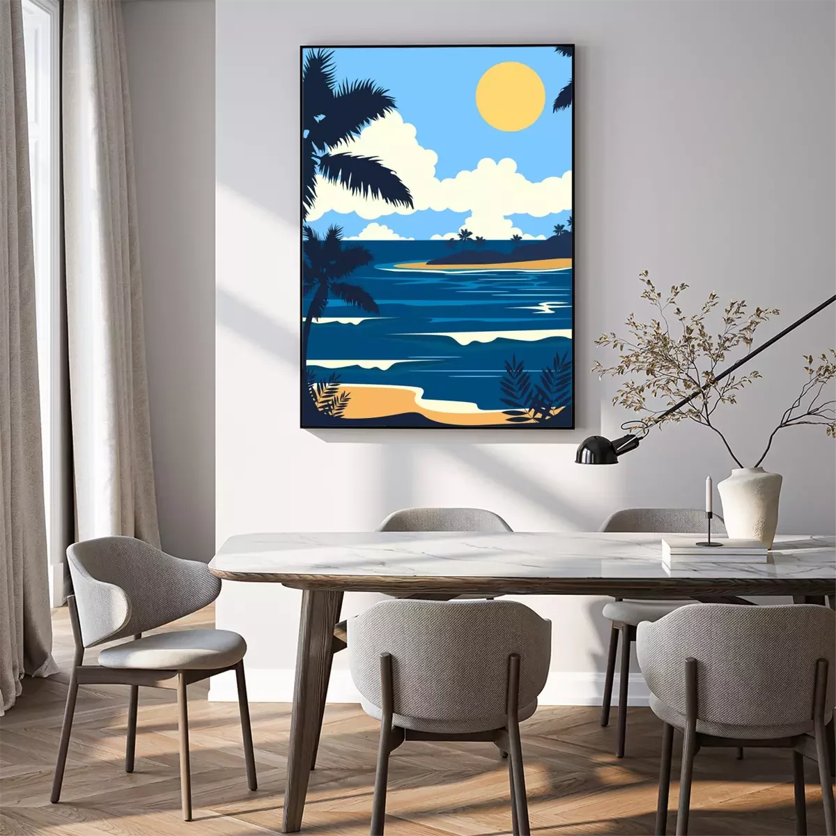 Poster : Illustration minimaliste d'un palmier au bord de la mer