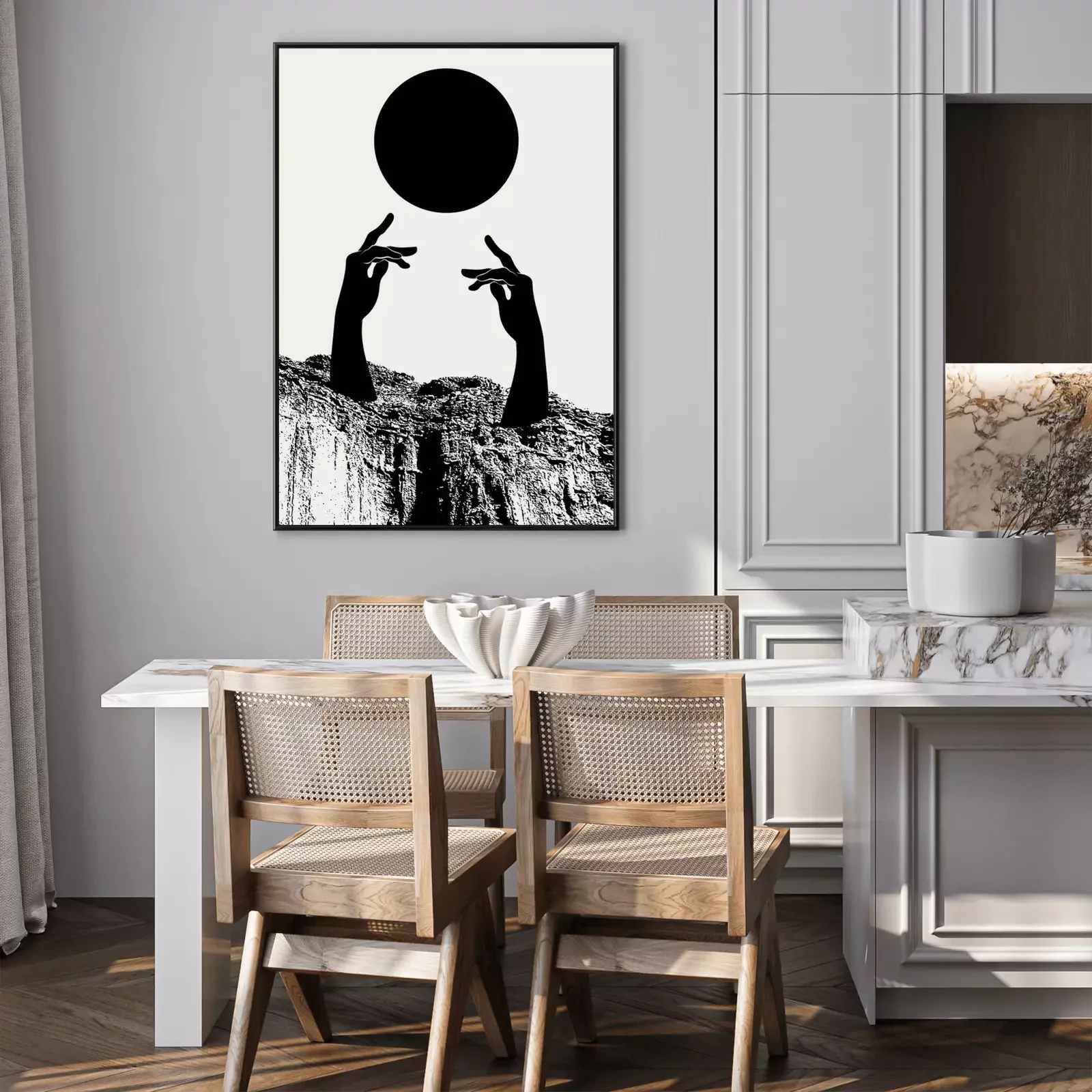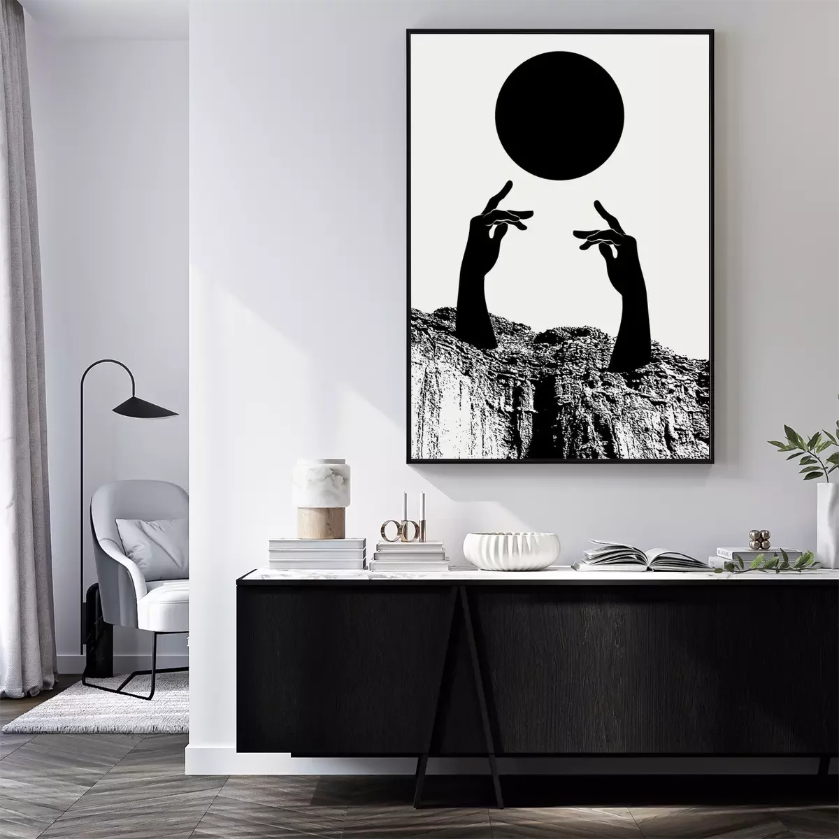 Poster : Illustration monochrome avec les mains