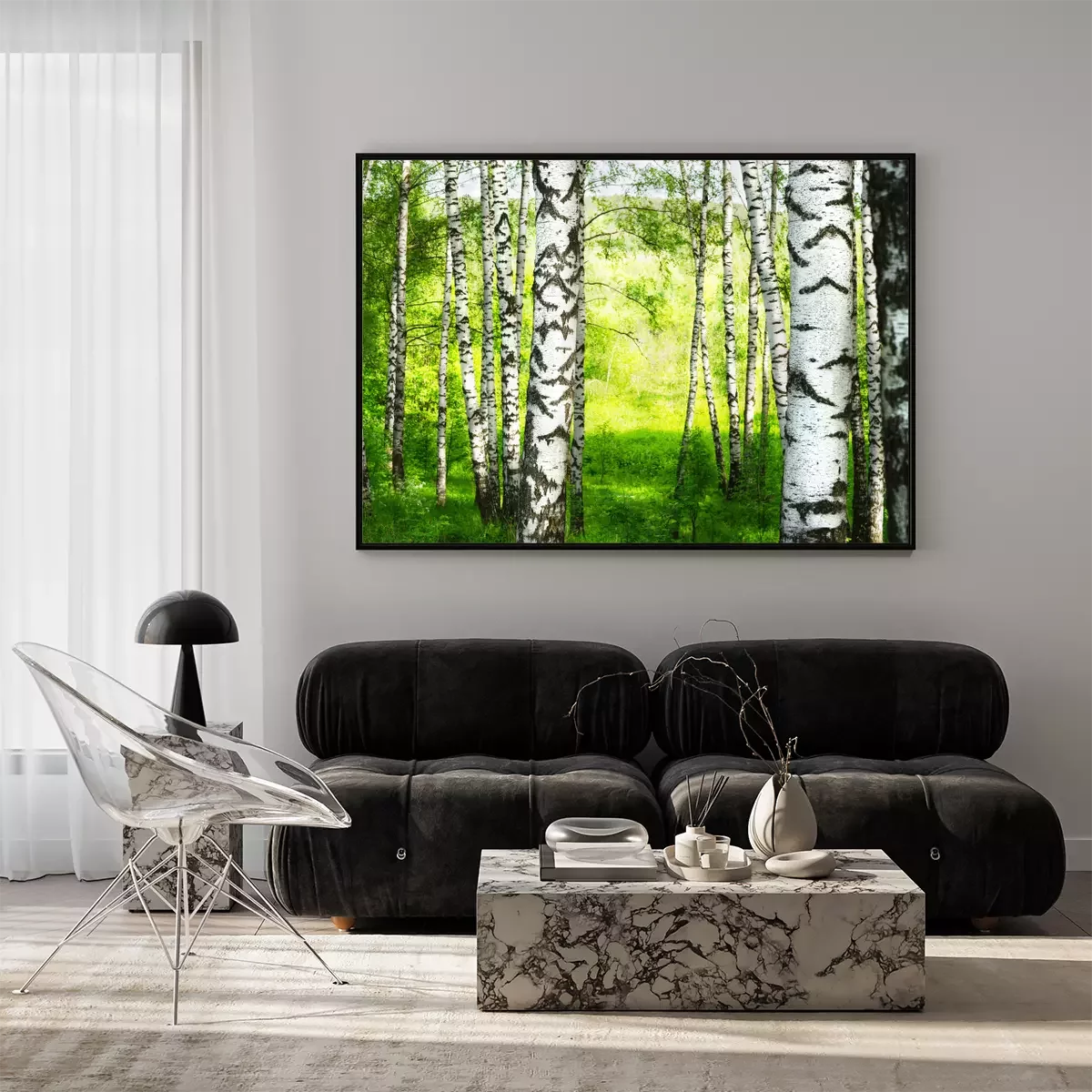 Poster : Illustration rétro d'une personne sous un bouleau étalé