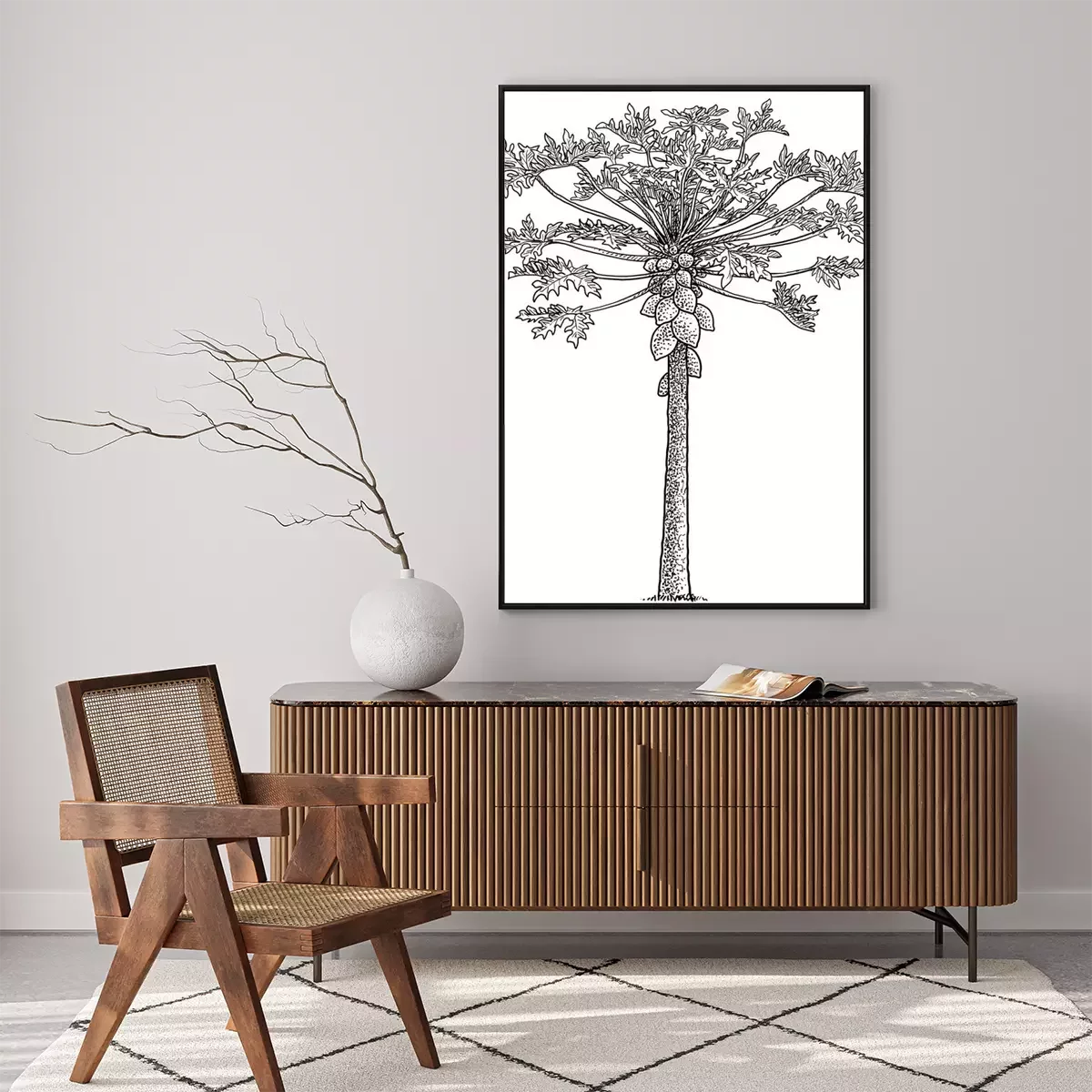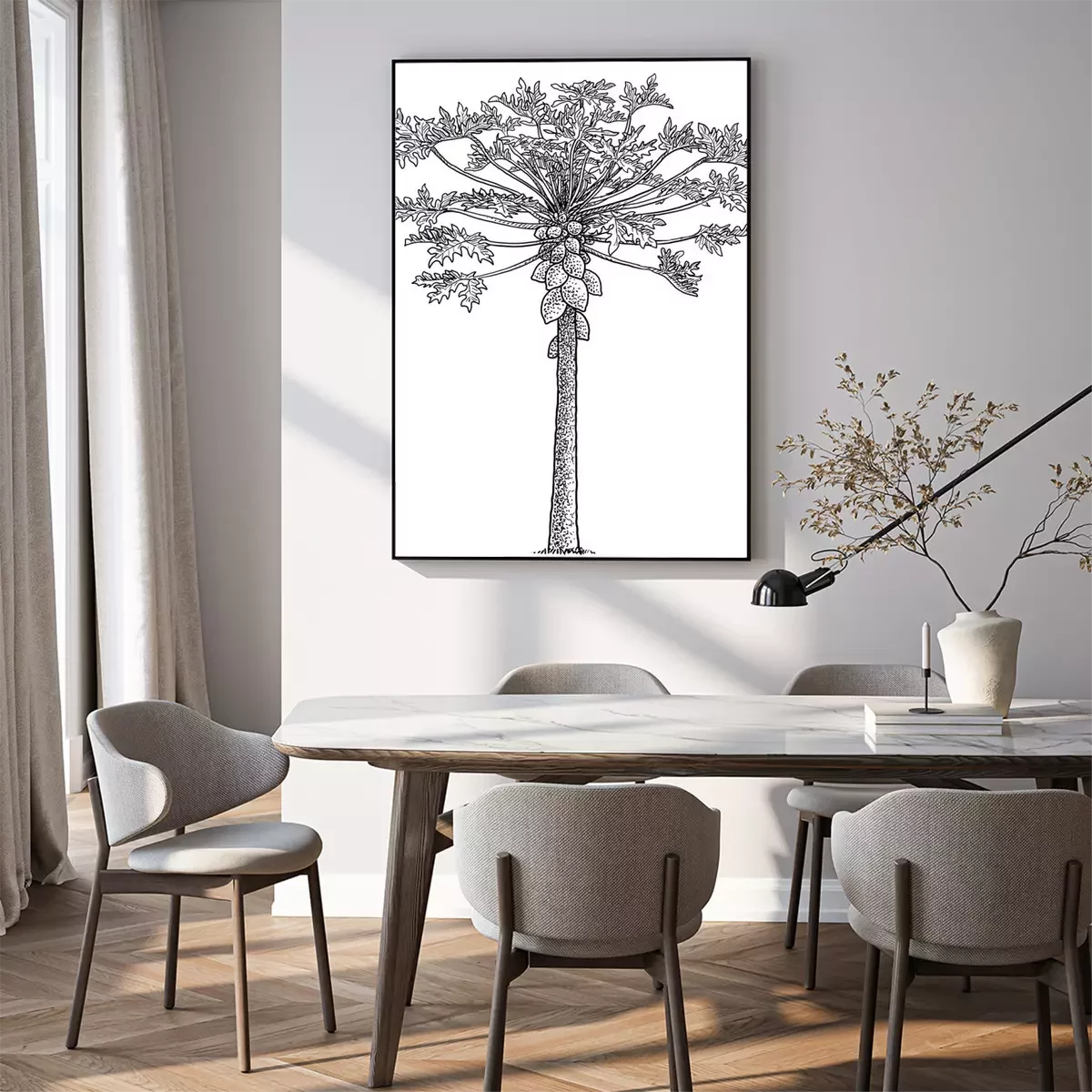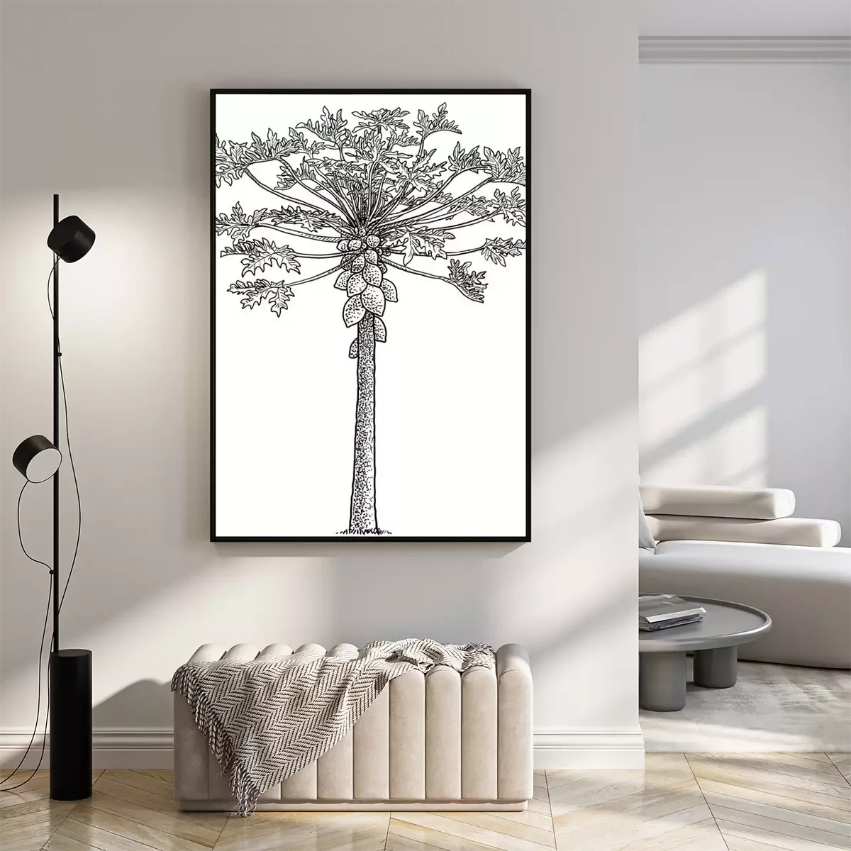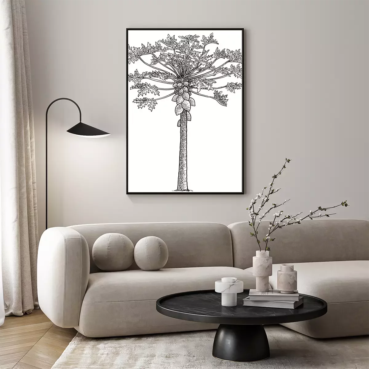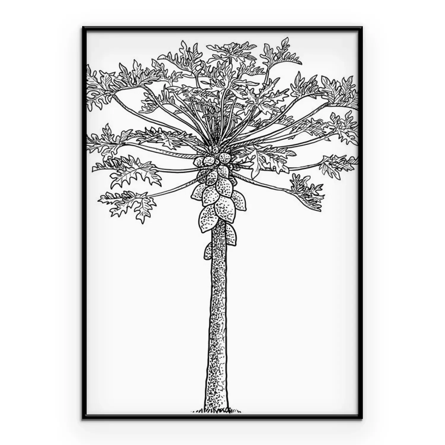 Poster : Illustration simple en noir et blanc d'un arbre de papaye