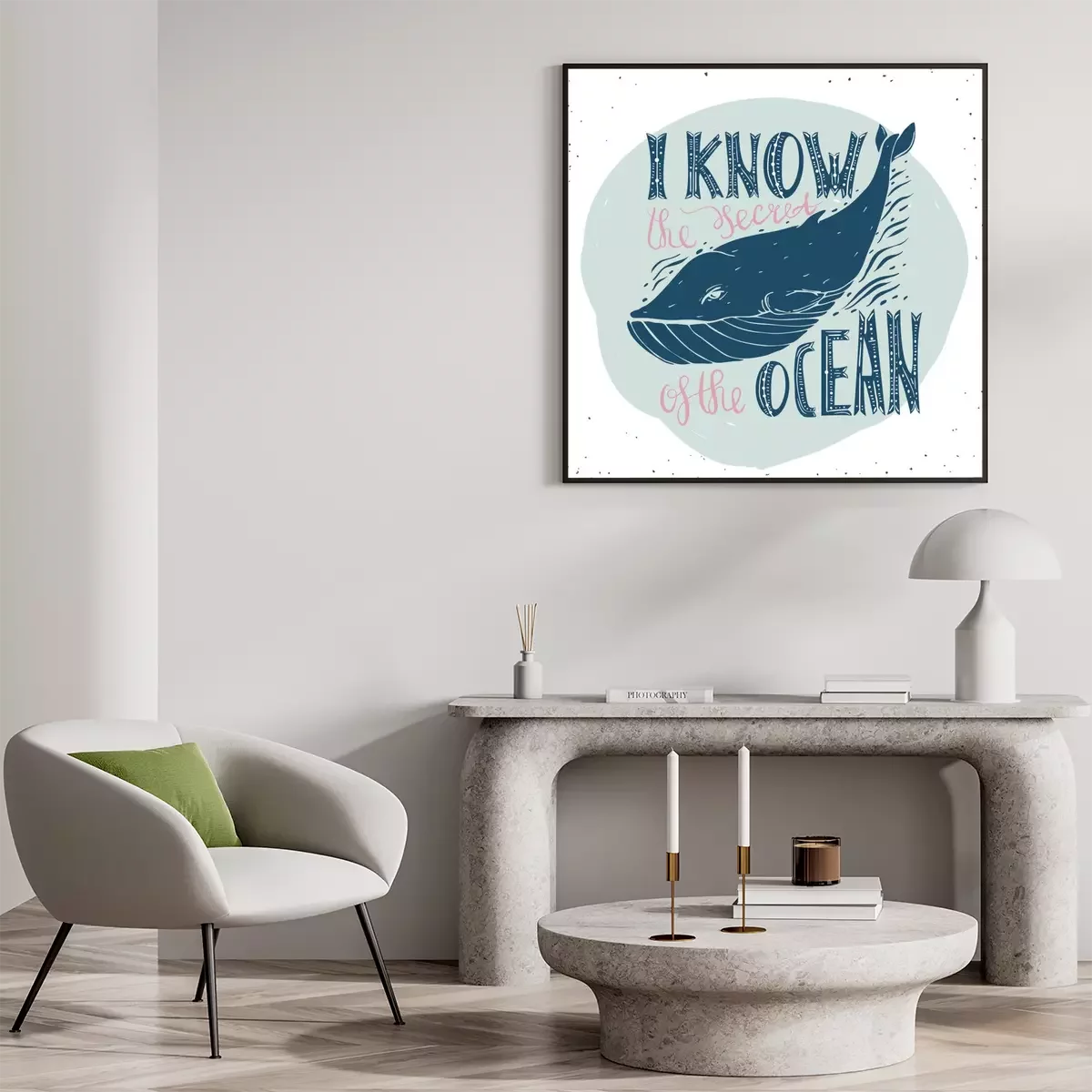 Poster : Illustration typographique avec une baleine