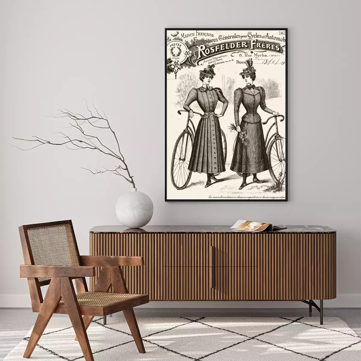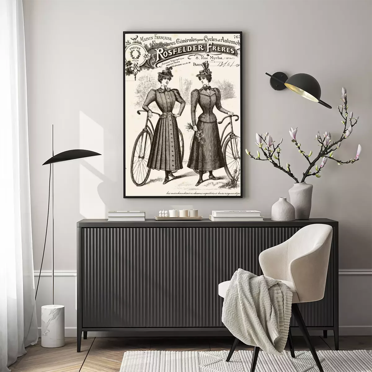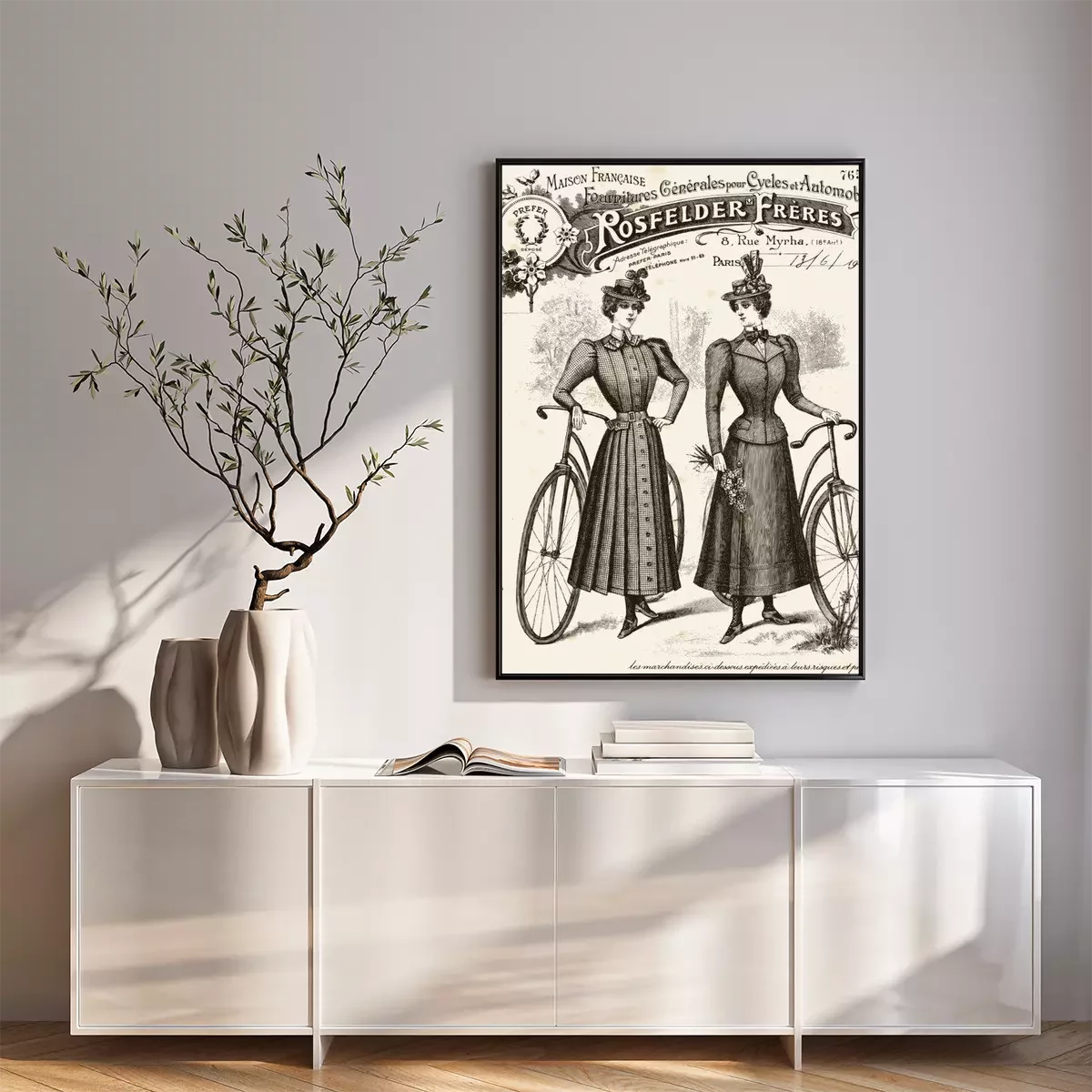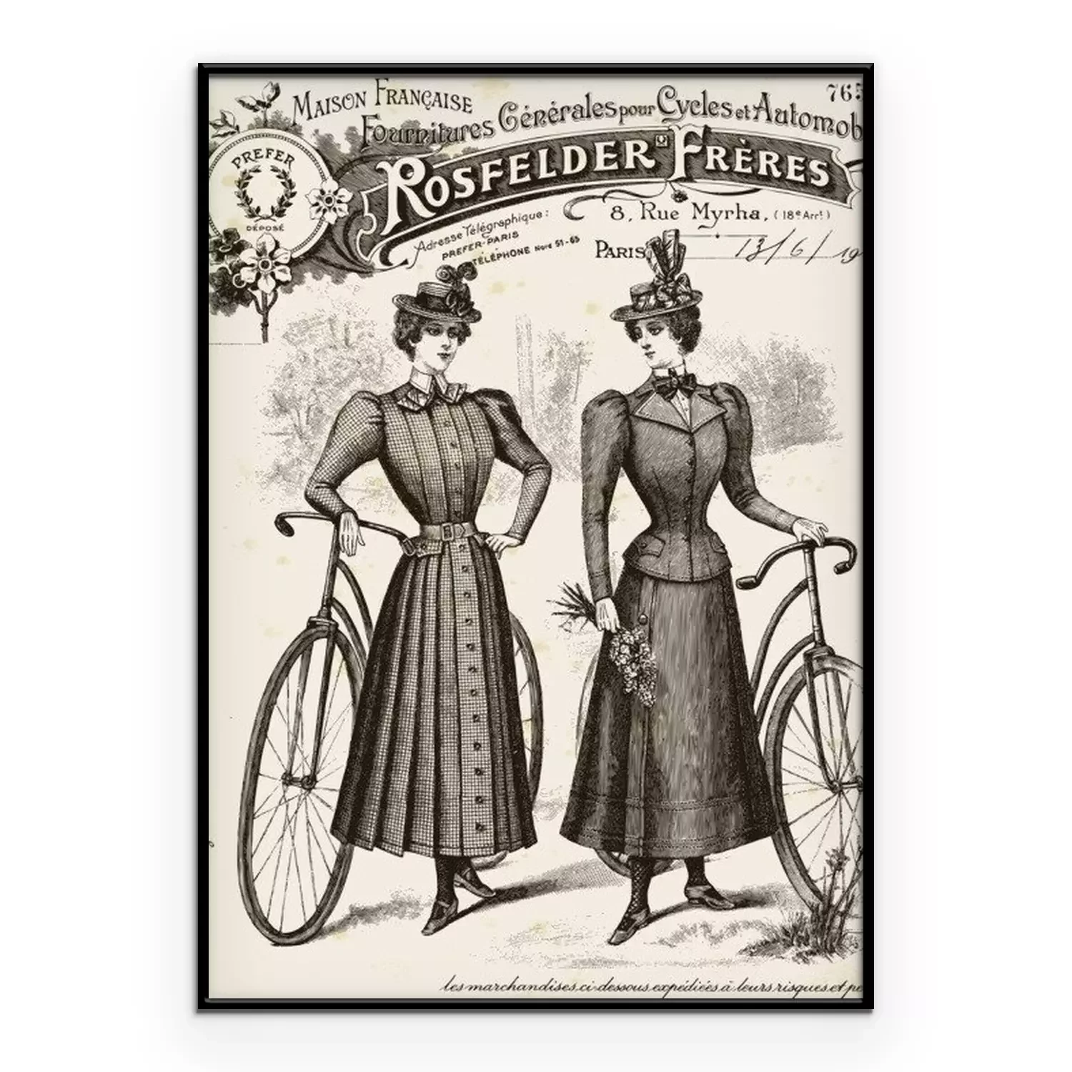 Poster  Illustration vintage de femmes avec des bicyclettes