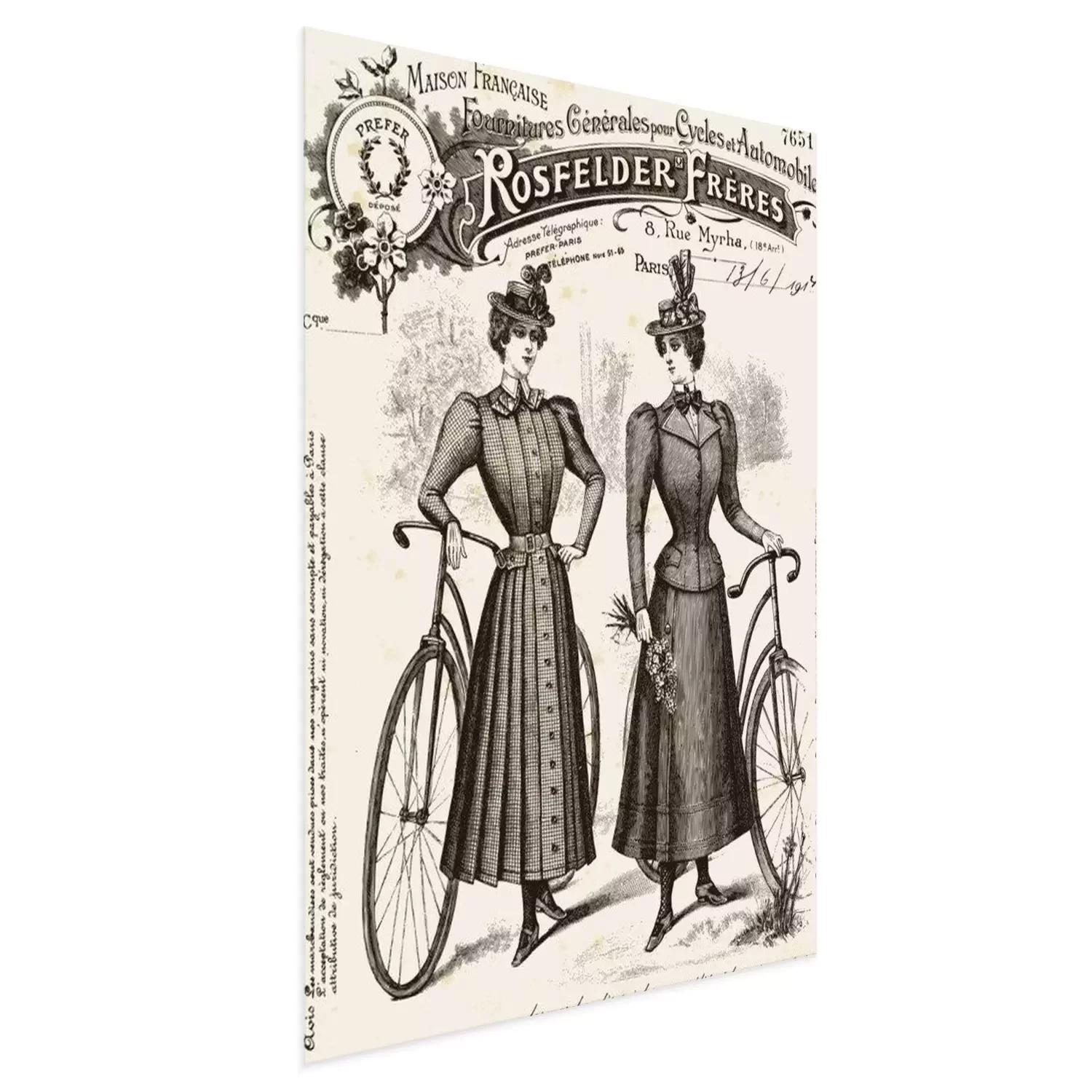 Poster : Illustration vintage de femmes avec des bicyclettes