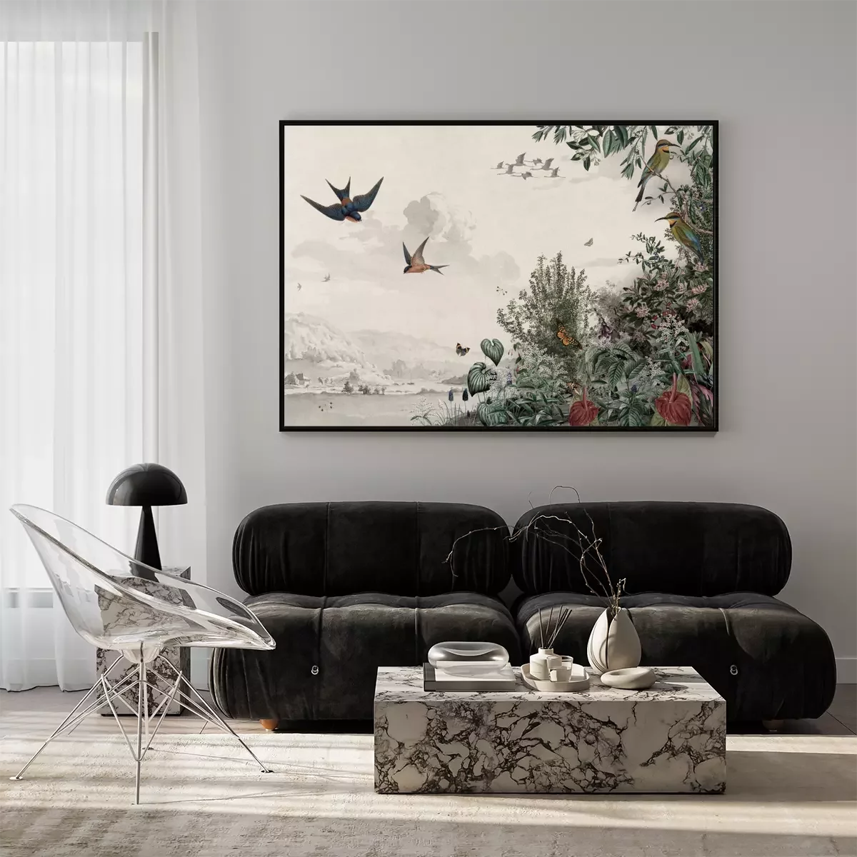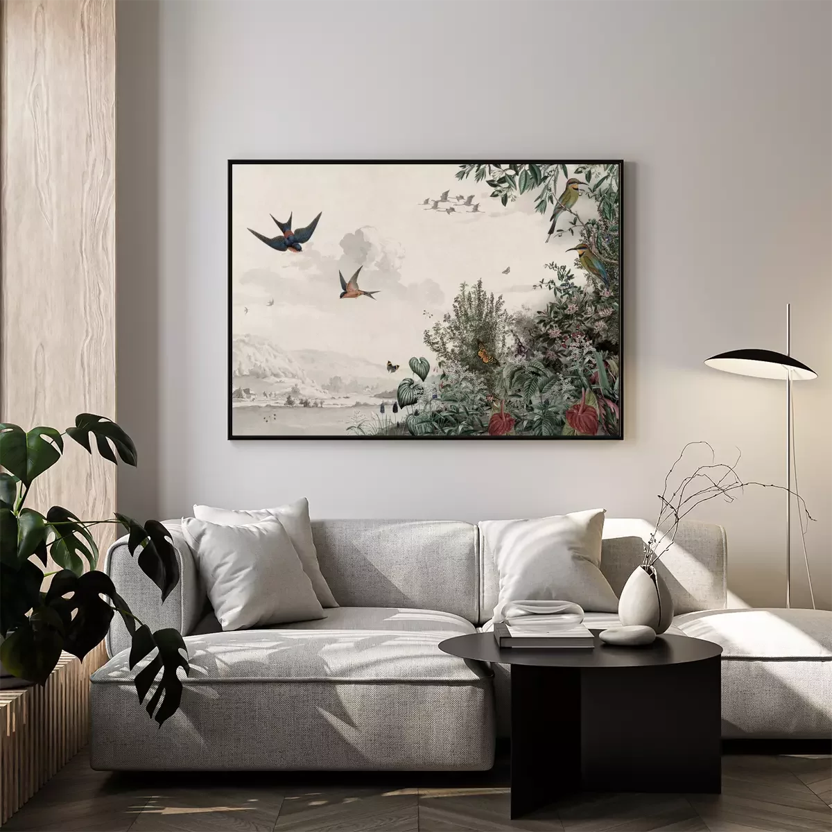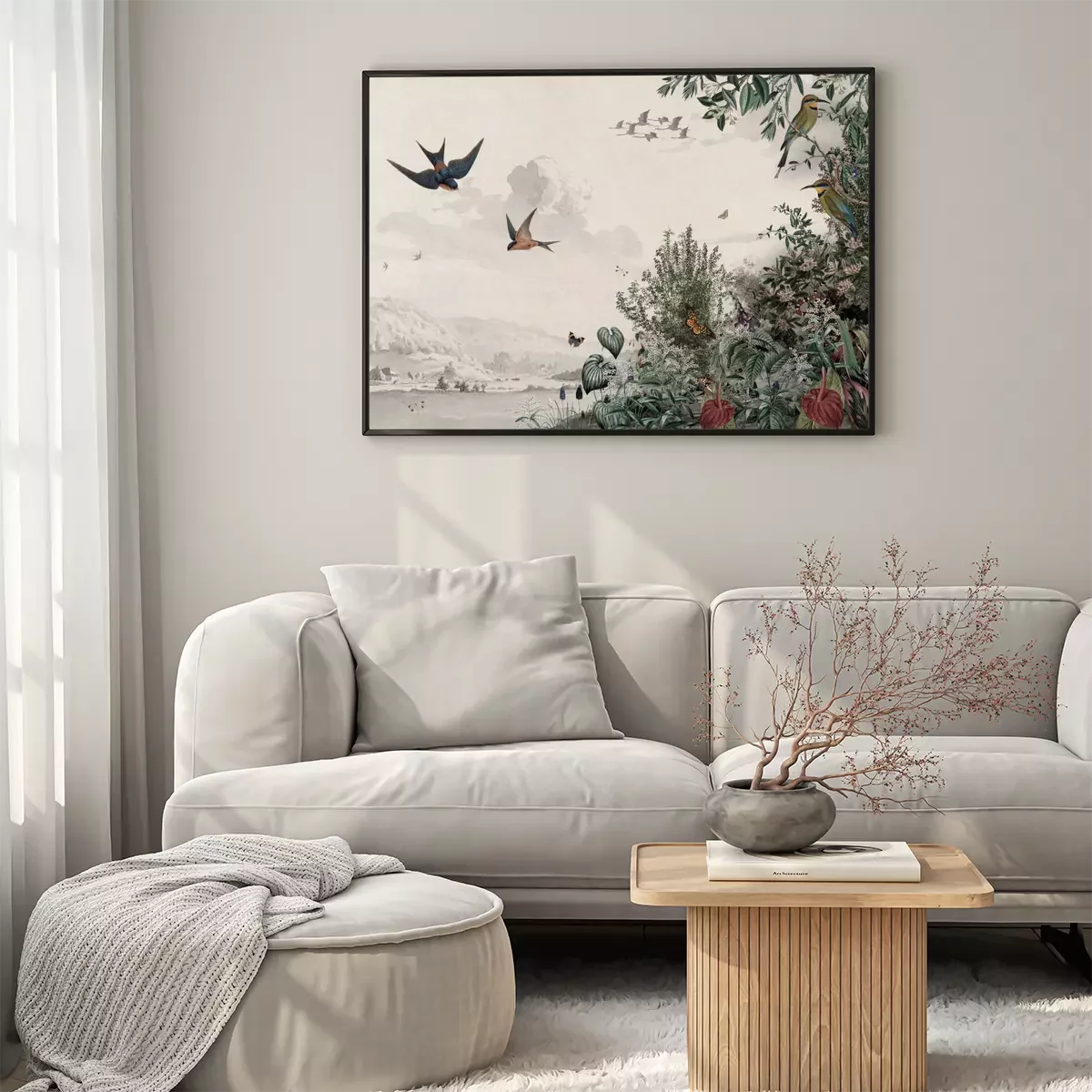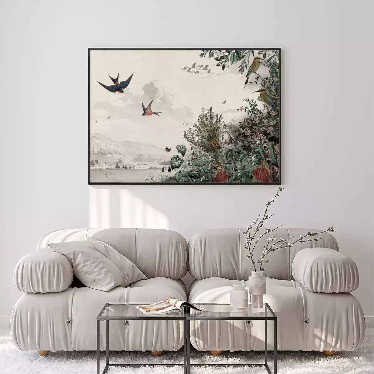 Poster  Illustration vintage de plantes sauvages et d'oiseaux