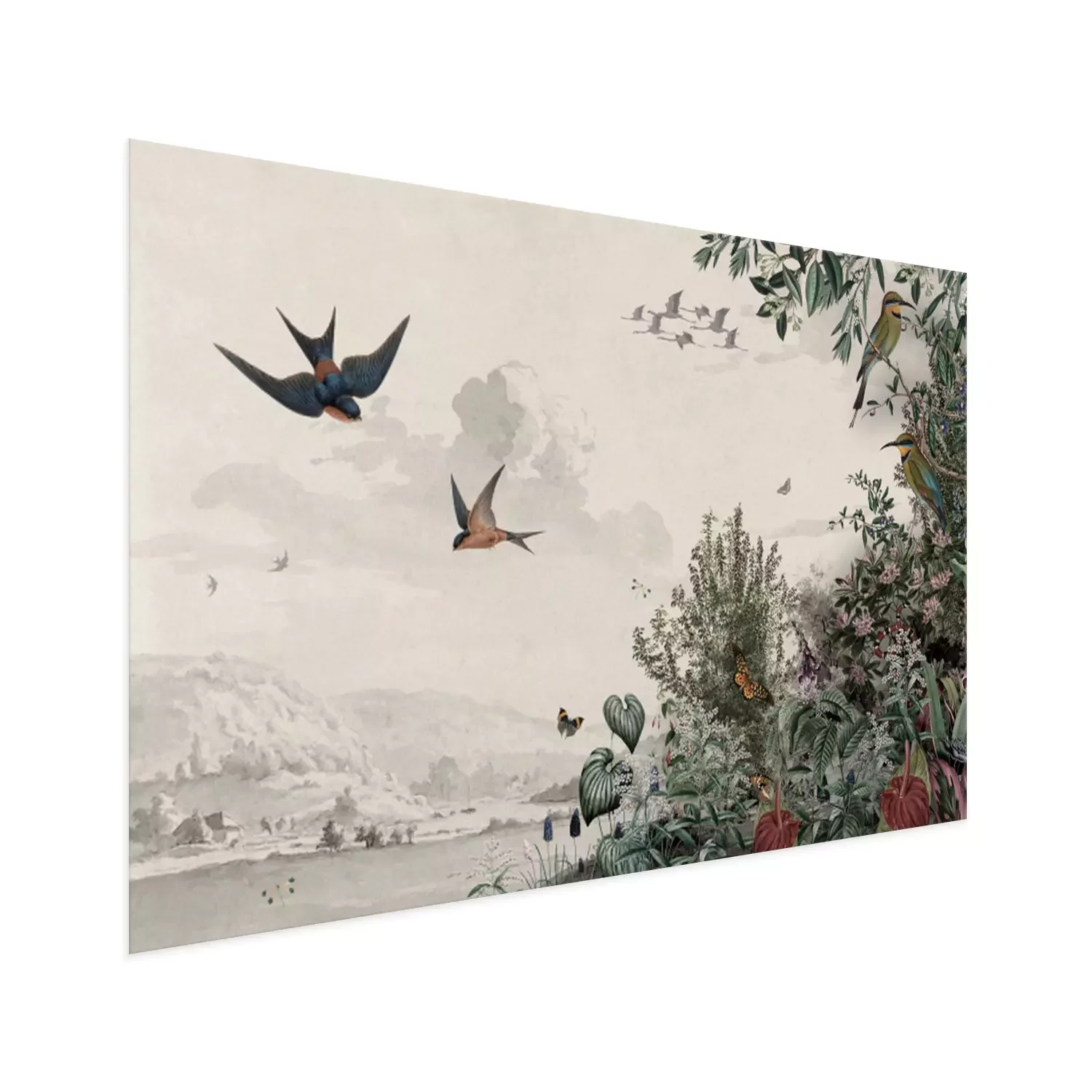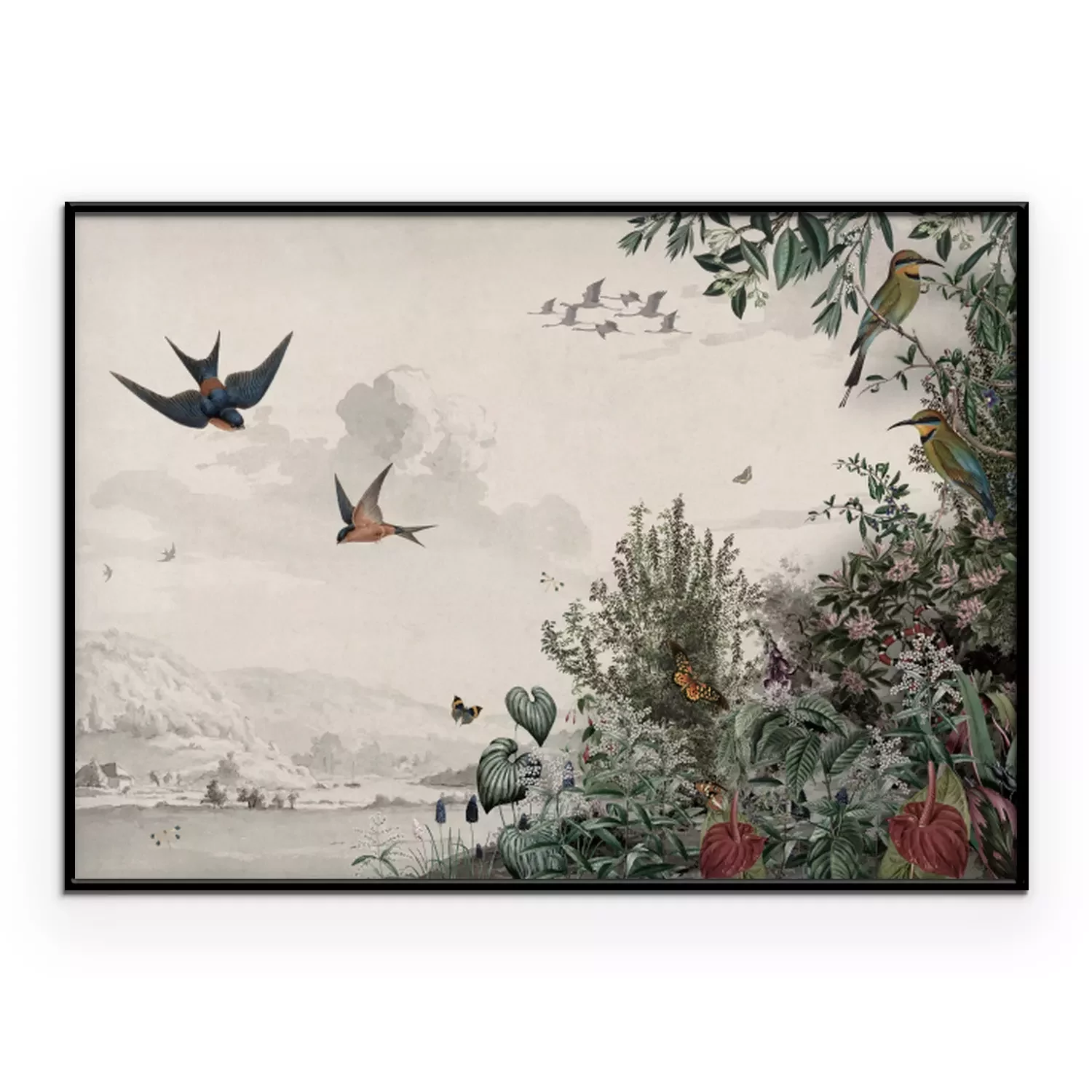 Poster : Illustration vintage de plantes sauvages et d'oiseaux