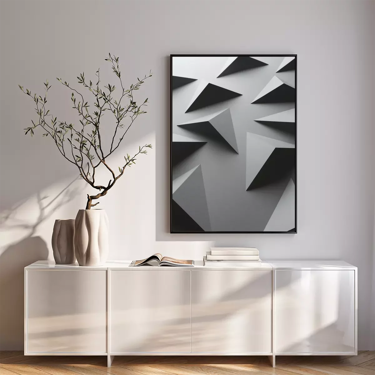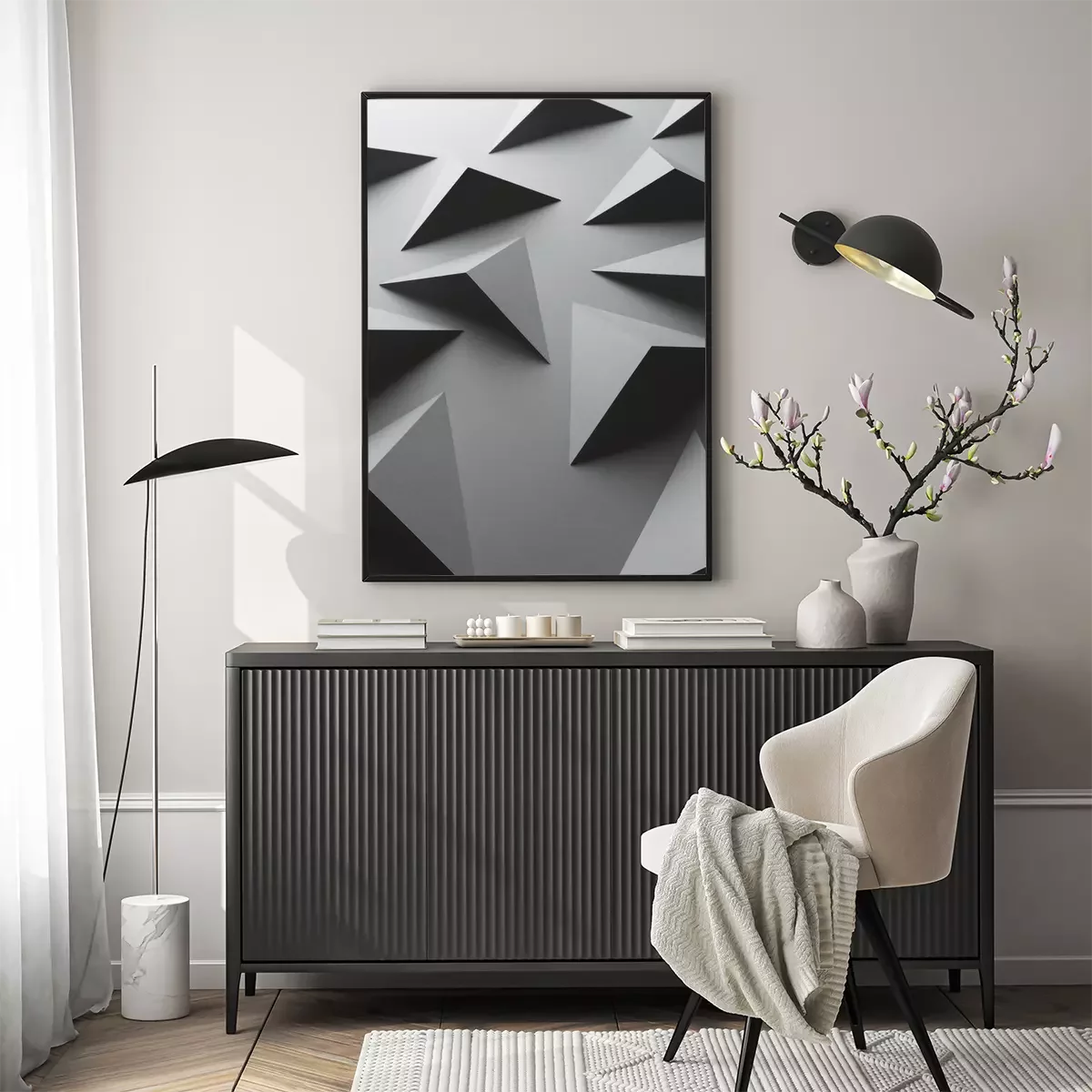 Poster  Image de macro de formes géométriques grises, effet tridimensionnel, fond abstrait