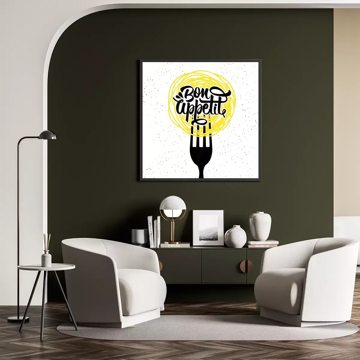 Poster : Image graphique avec des pâtes sur une fourchette