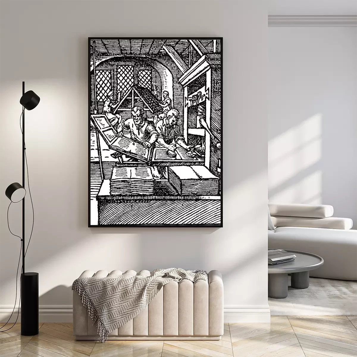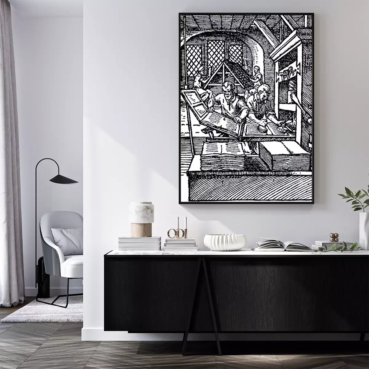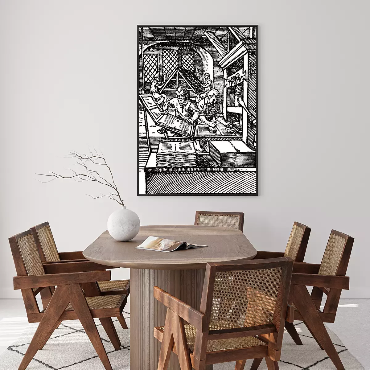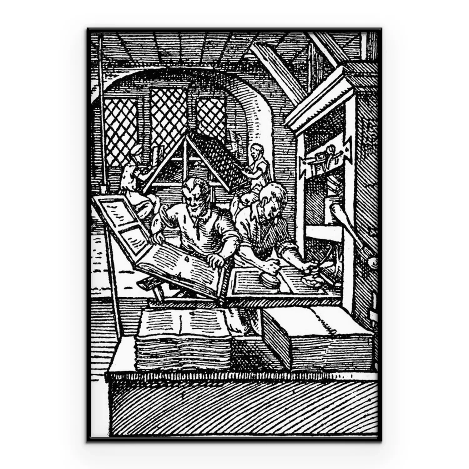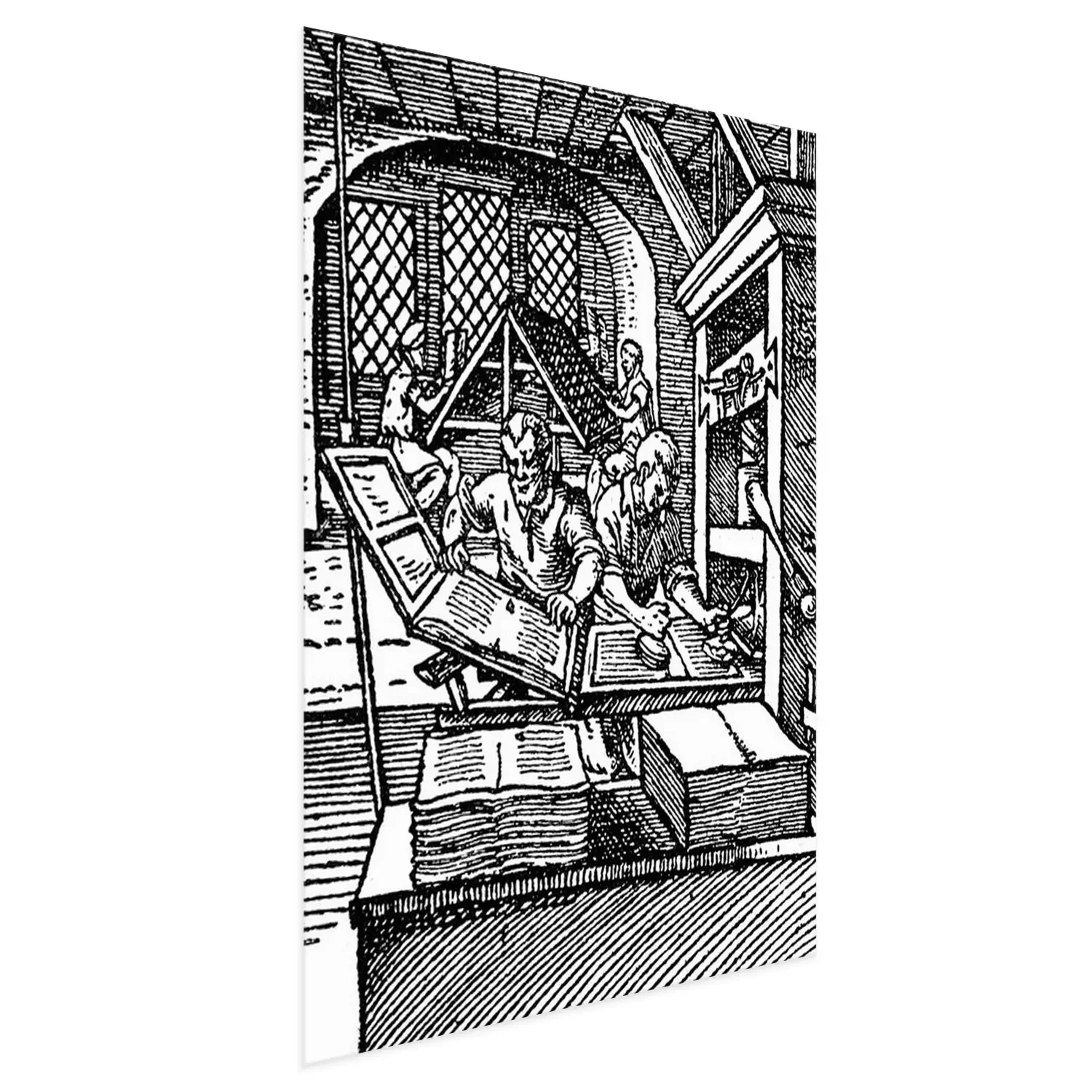 Poster  Imprimeurs au travail gravure noir et blanc