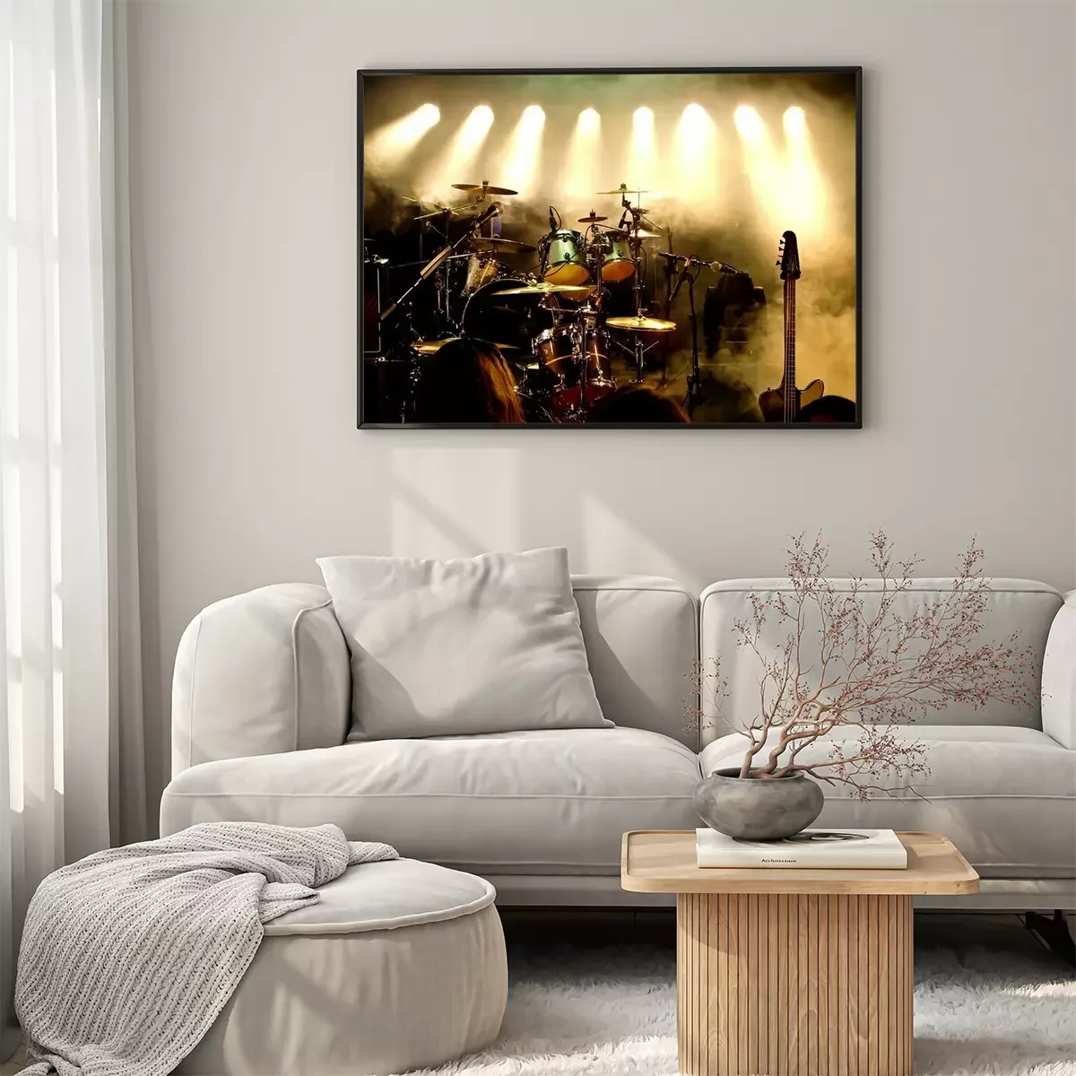Poster : Instruments de musique, Batterie / Guitare sur scène