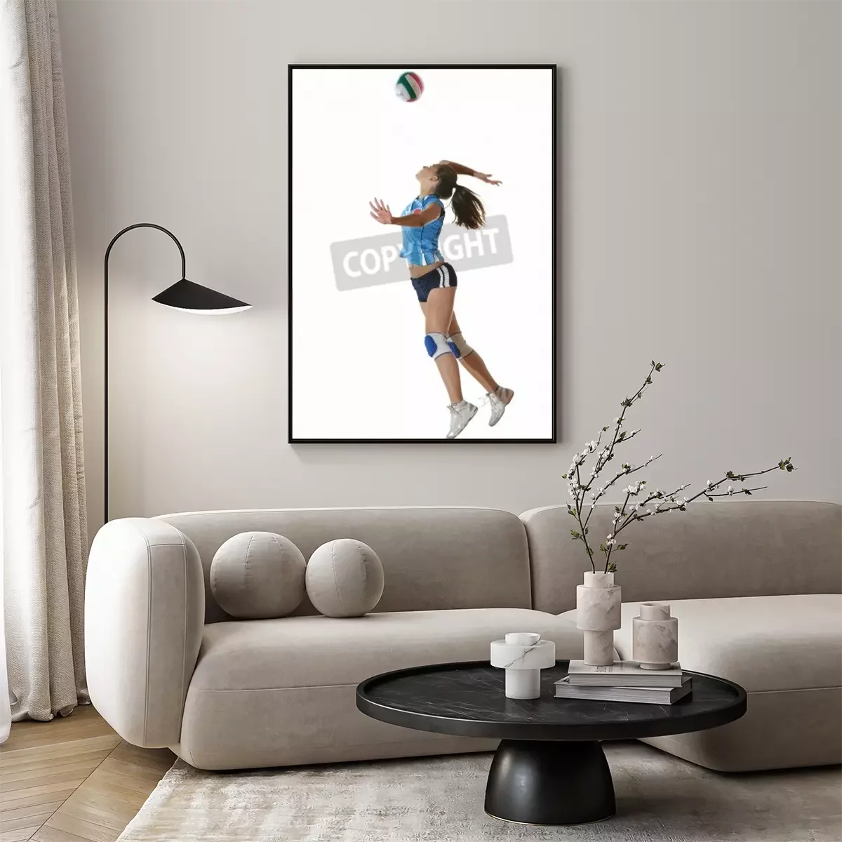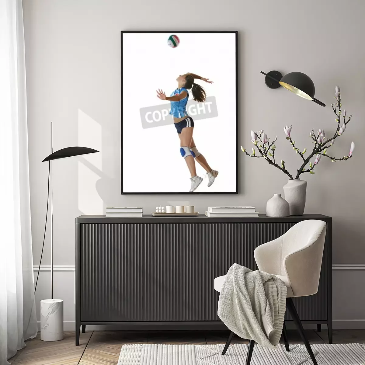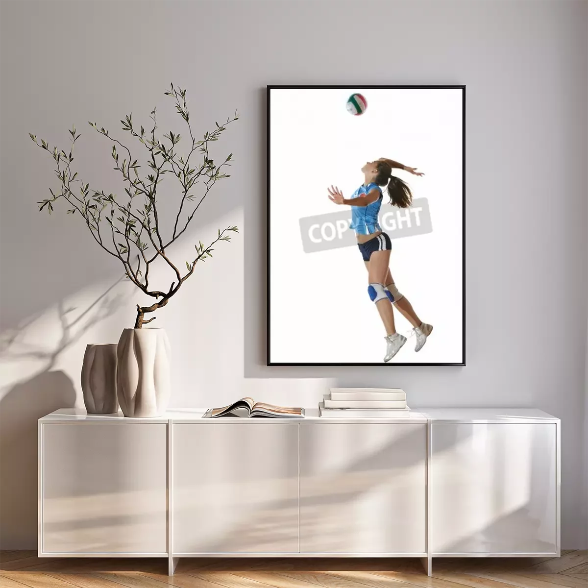 Poster : jeu de volley-ball avec le sport neautoful jeune fille oslated onver fond blanc