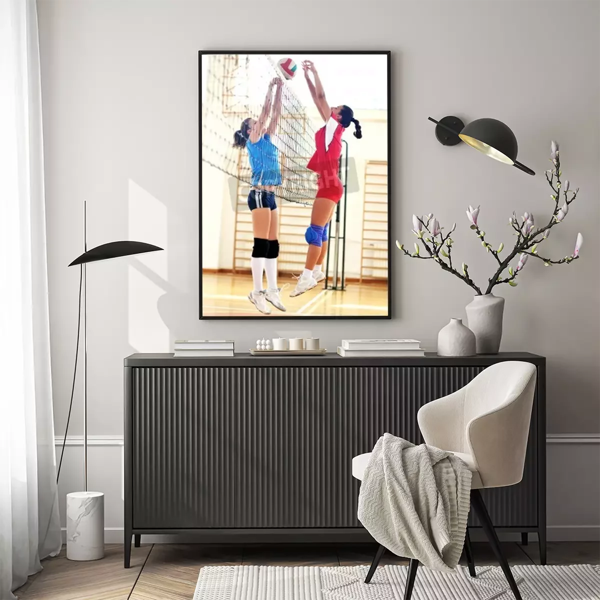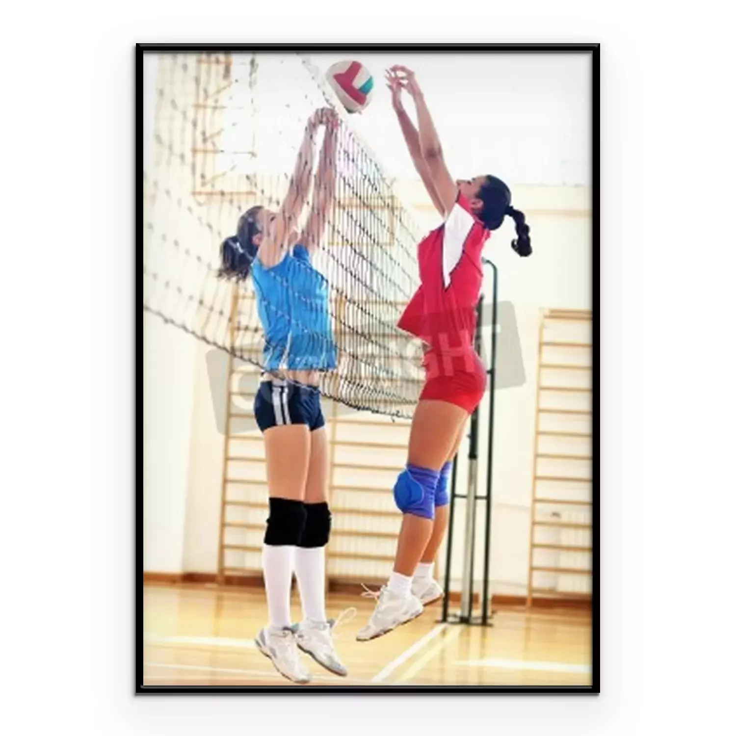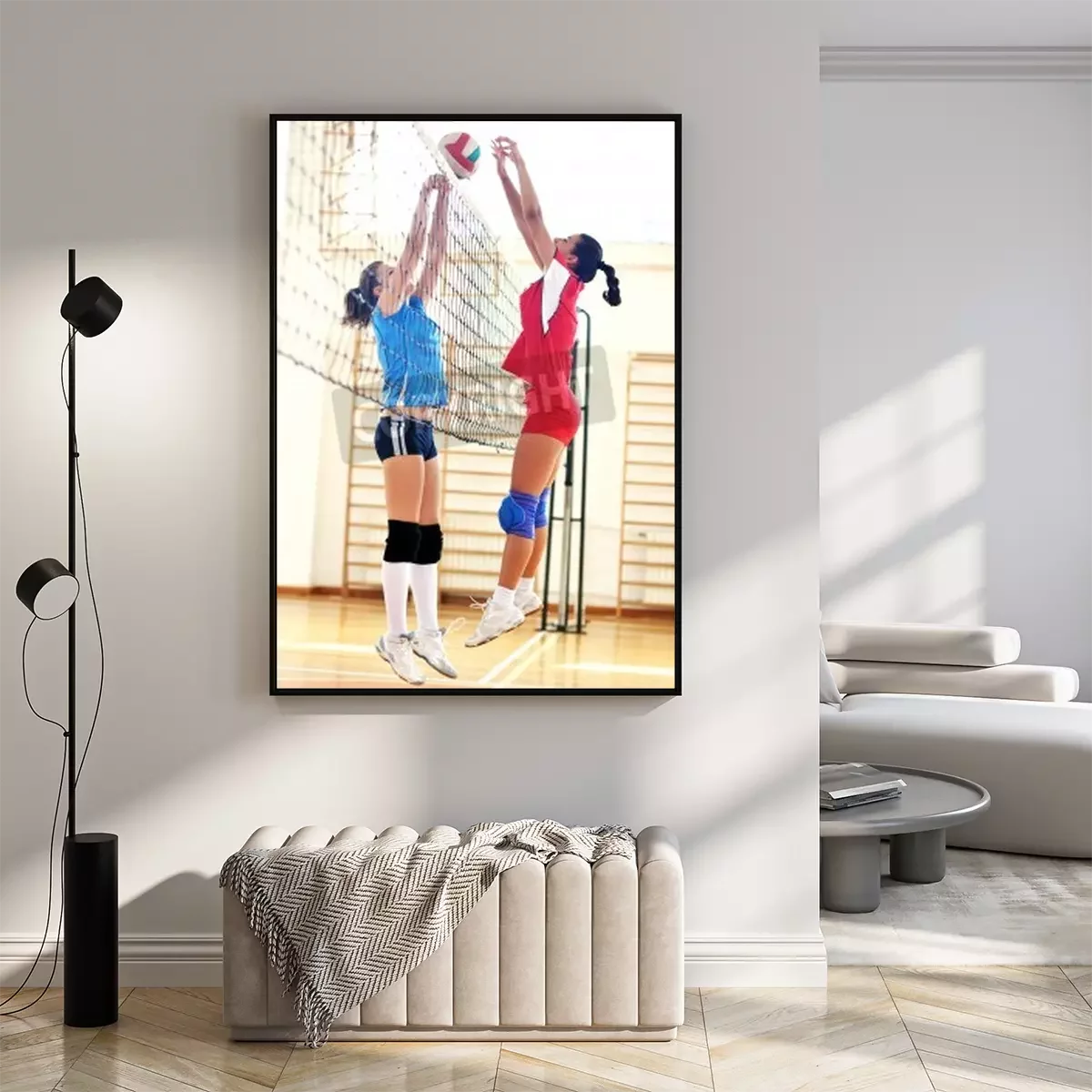 Poster : jeu de volley-ball du sport avec un groupe de belles jeunes filles à l'intérieur dans l'arène sportive