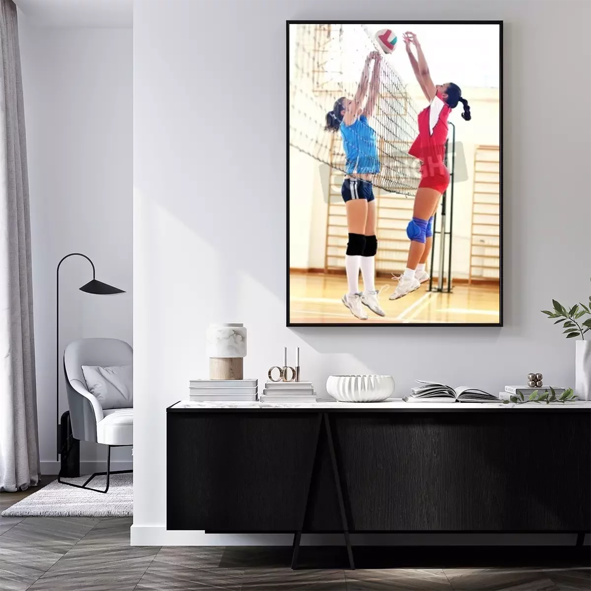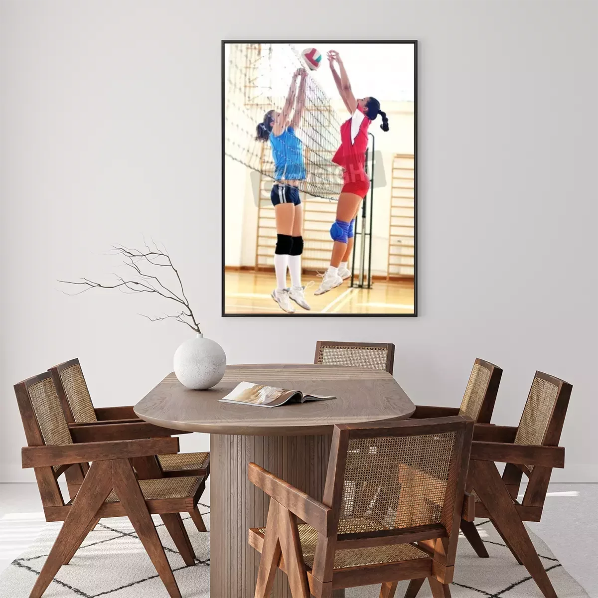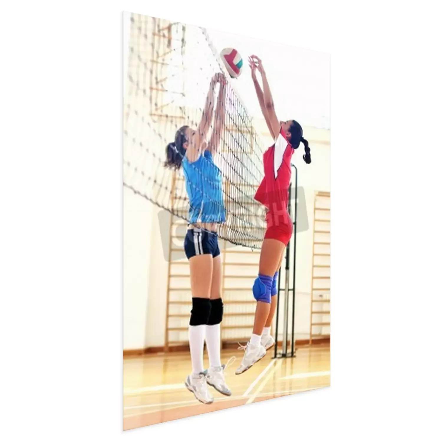 Poster : jeu de volley-ball du sport avec un groupe de belles jeunes filles à l'intérieur dans l'arène sportive