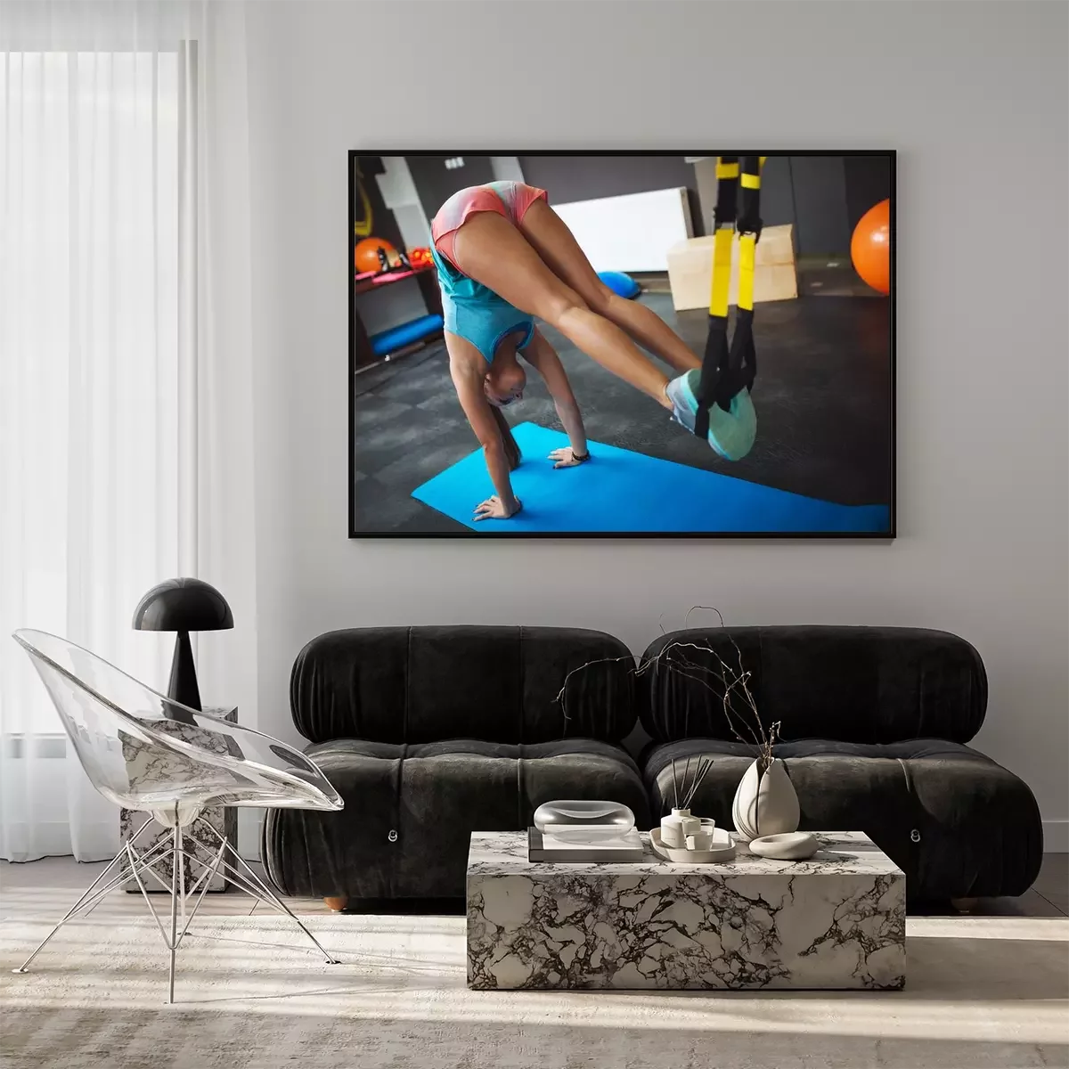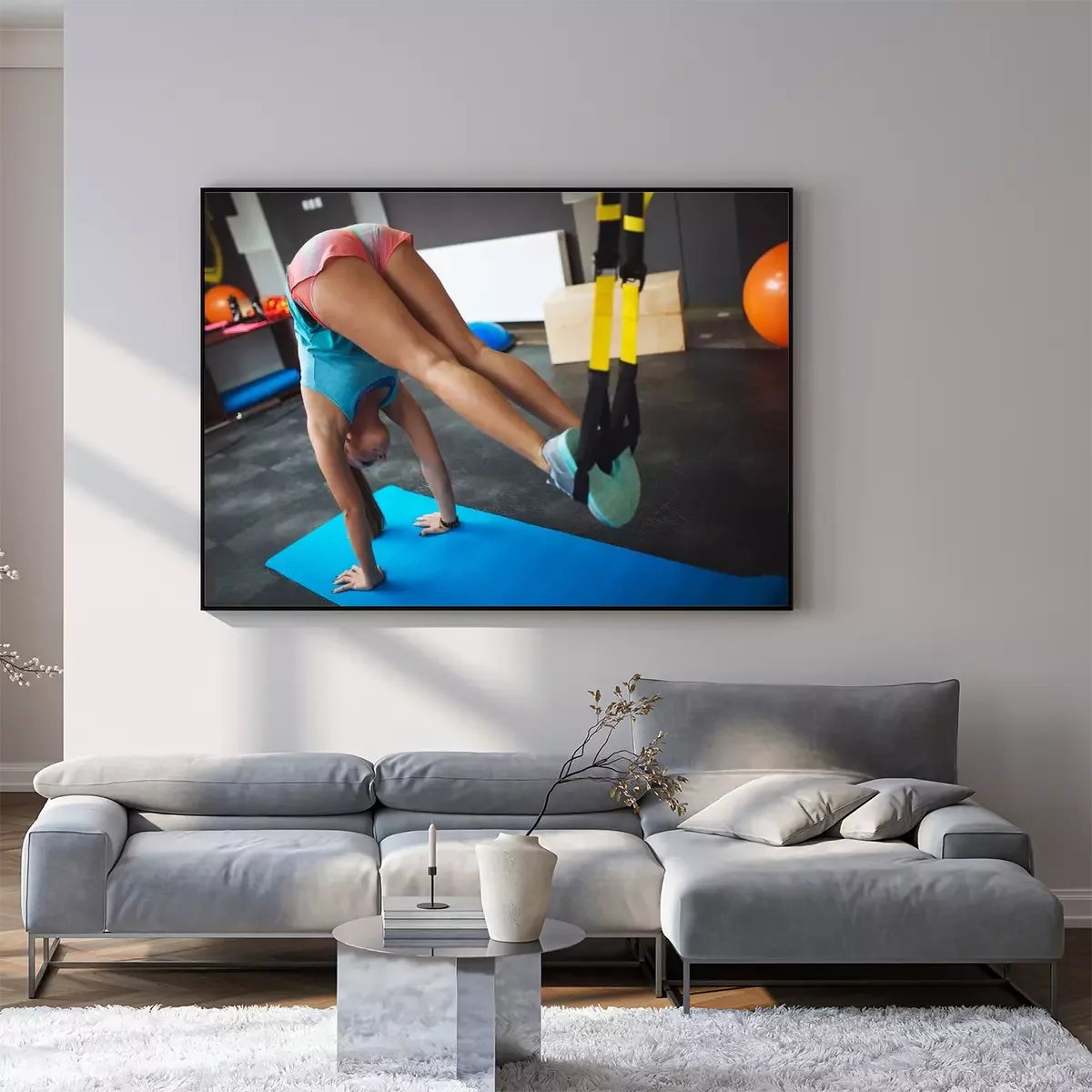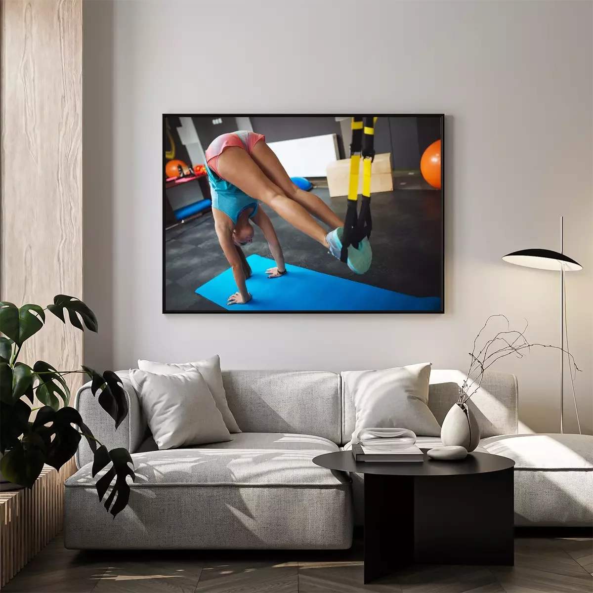 Poster : Jeune, femme, gymnase, fonctionnement, abs, trx