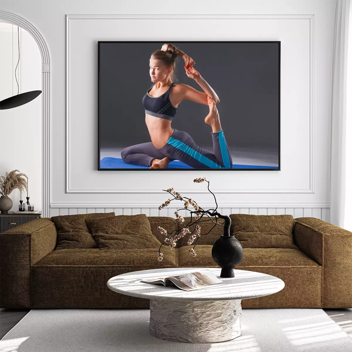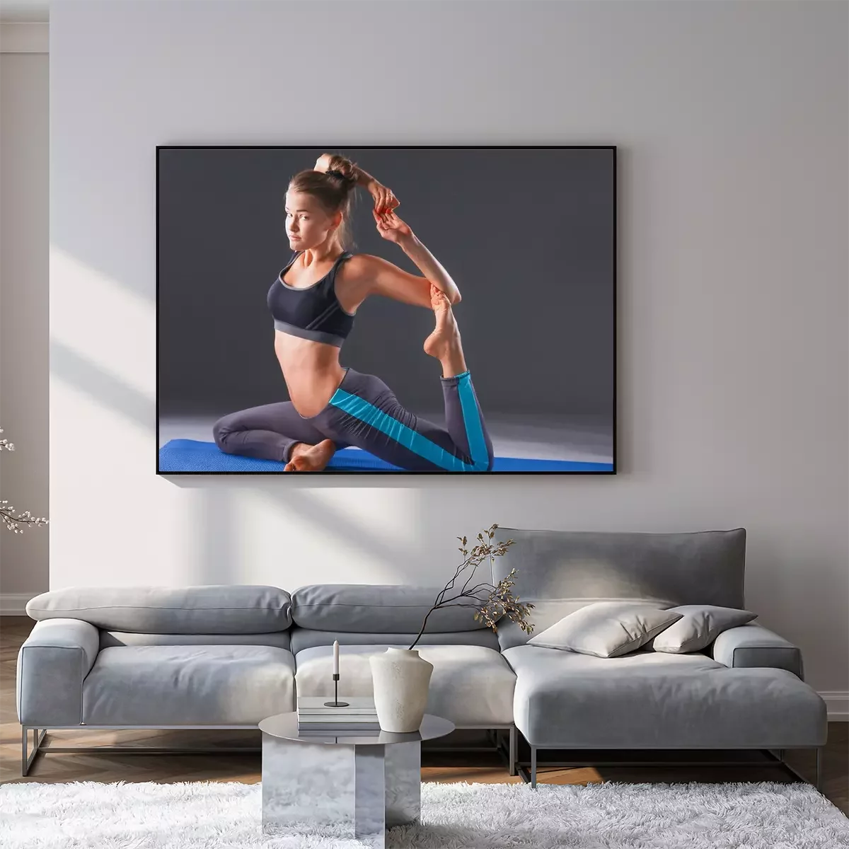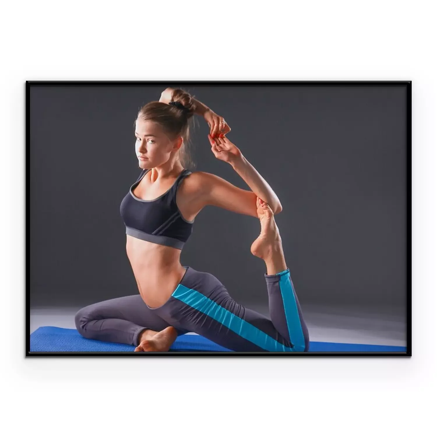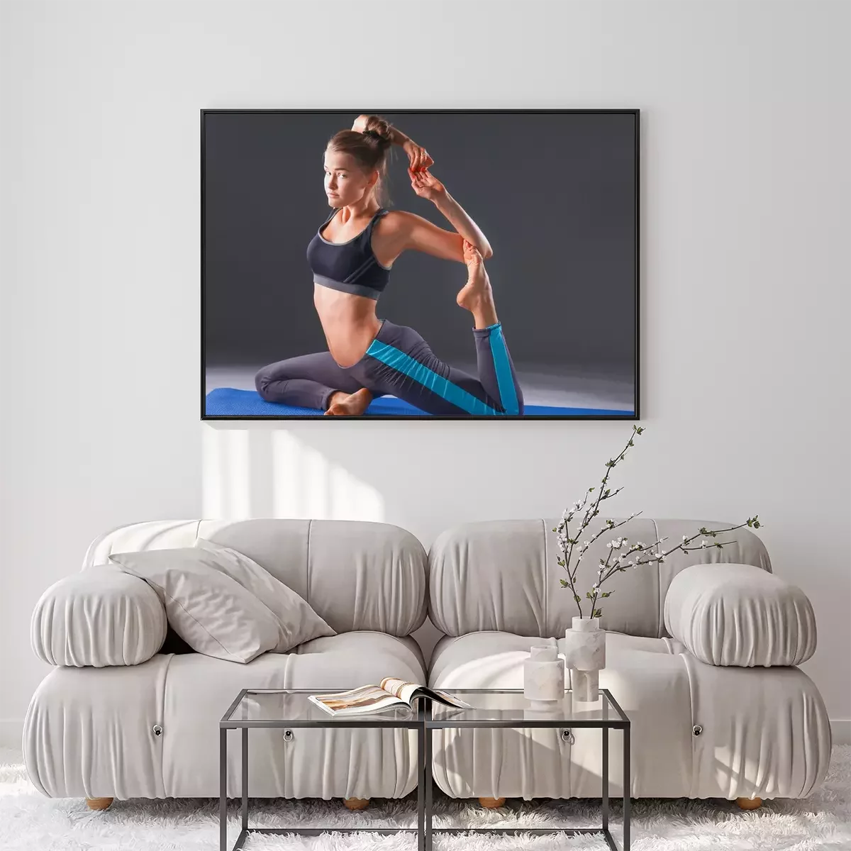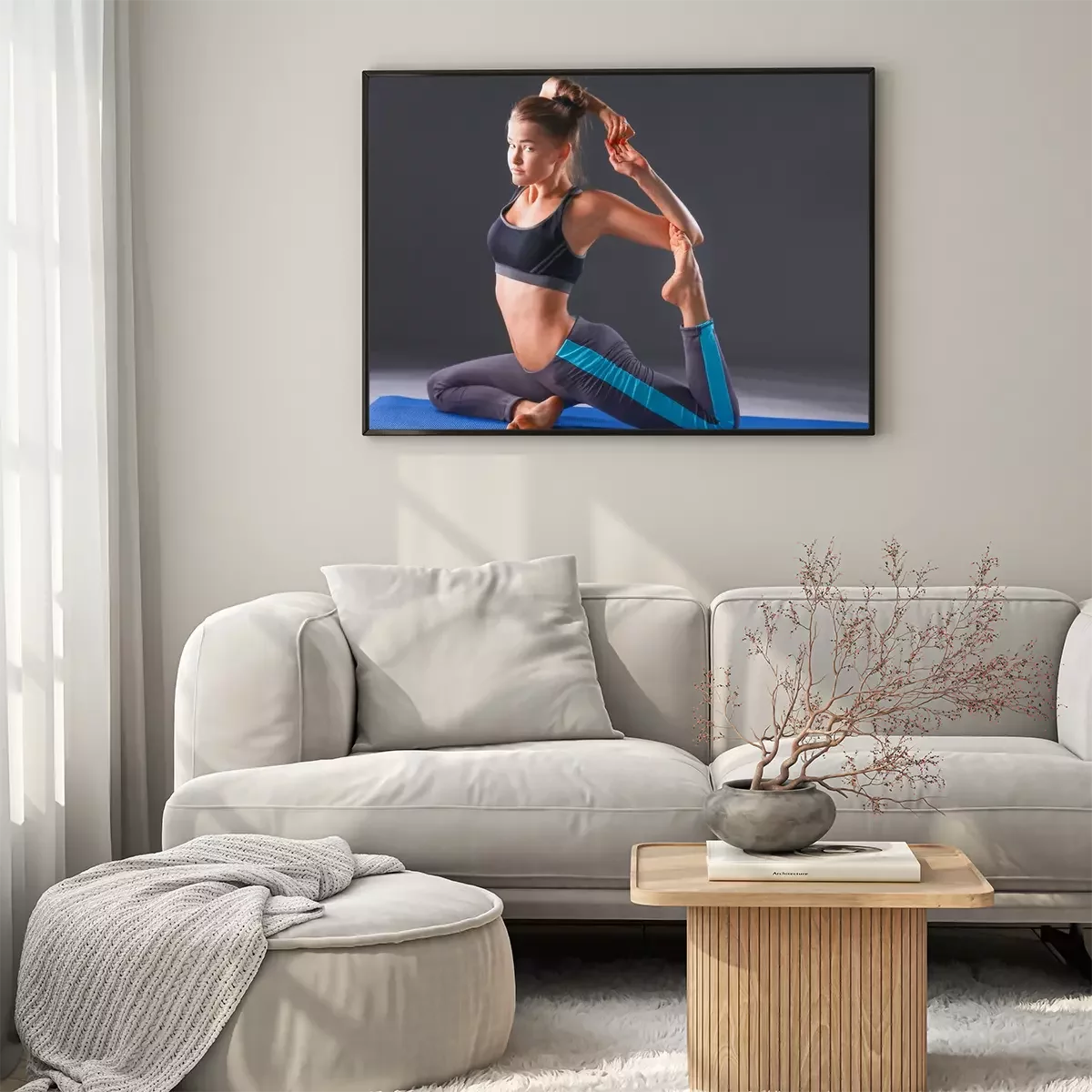 Poster  Jeune, femme, yoga, exercice, gris, fond
