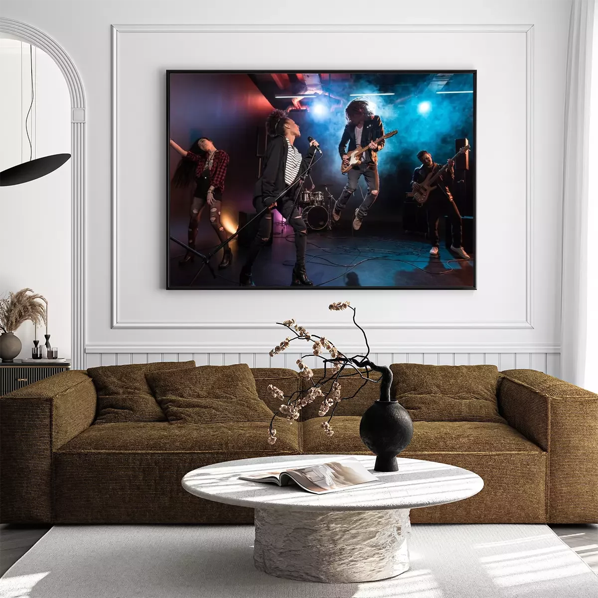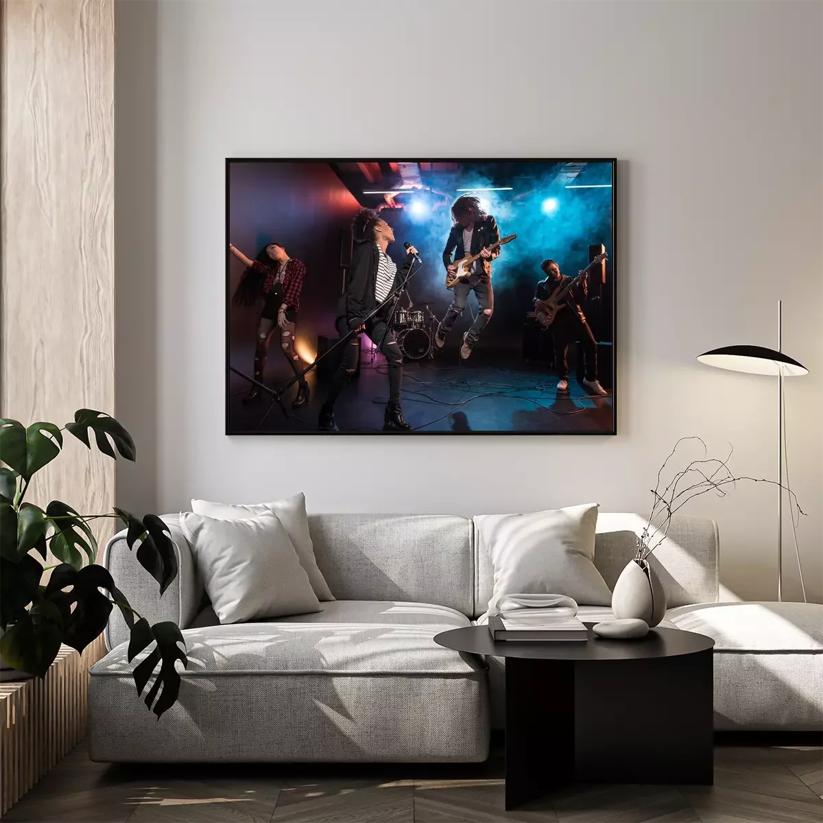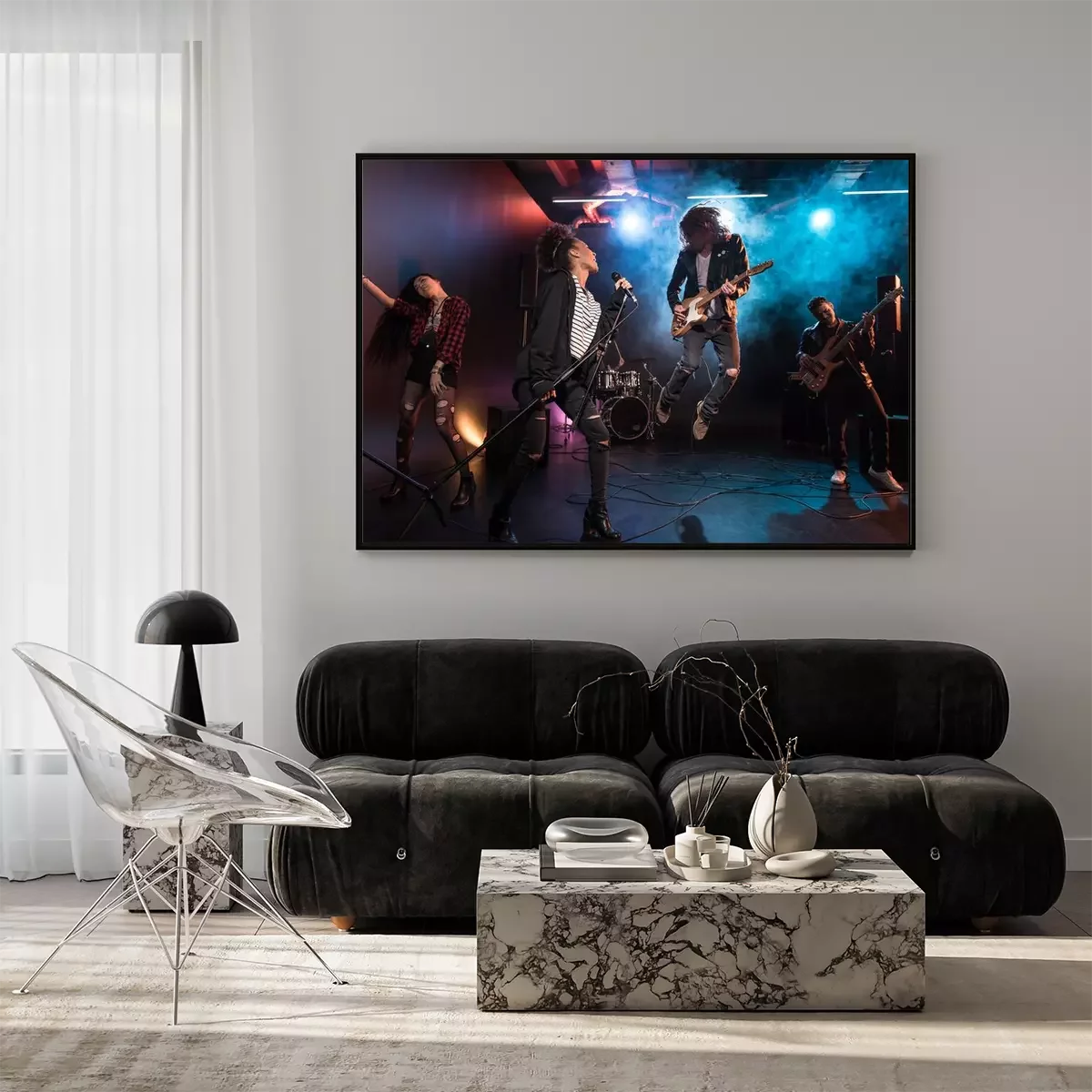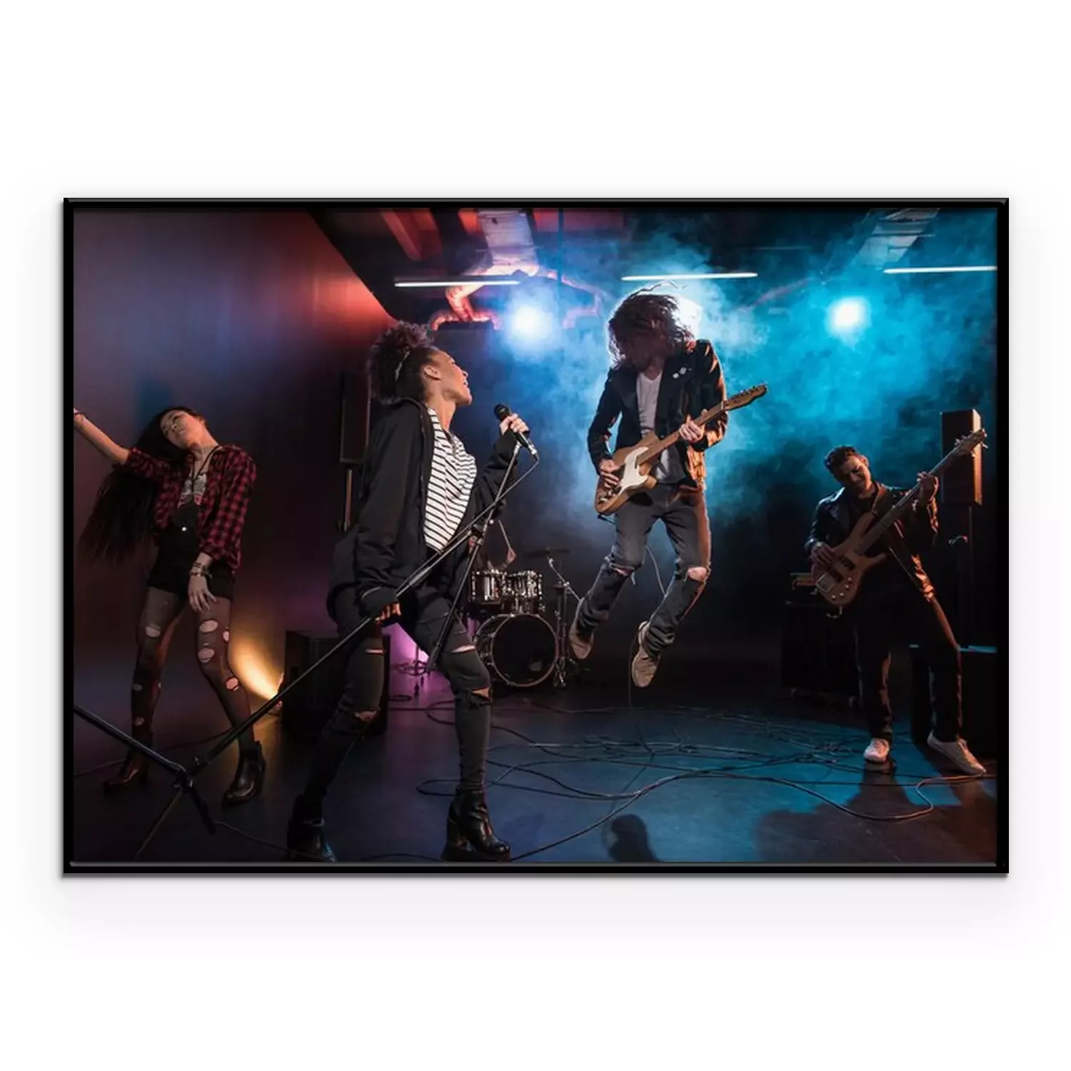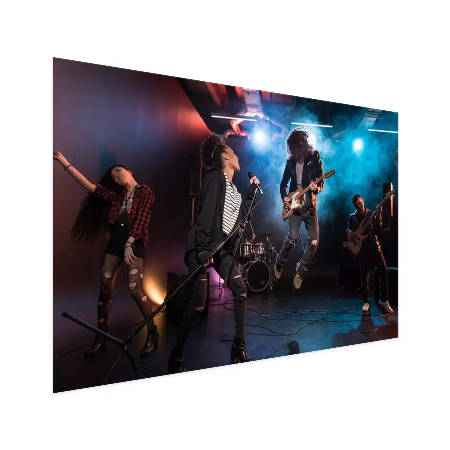 Poster  Jeune groupe multi-ethnique de rock and roll interprétant des musiques dures sur scène