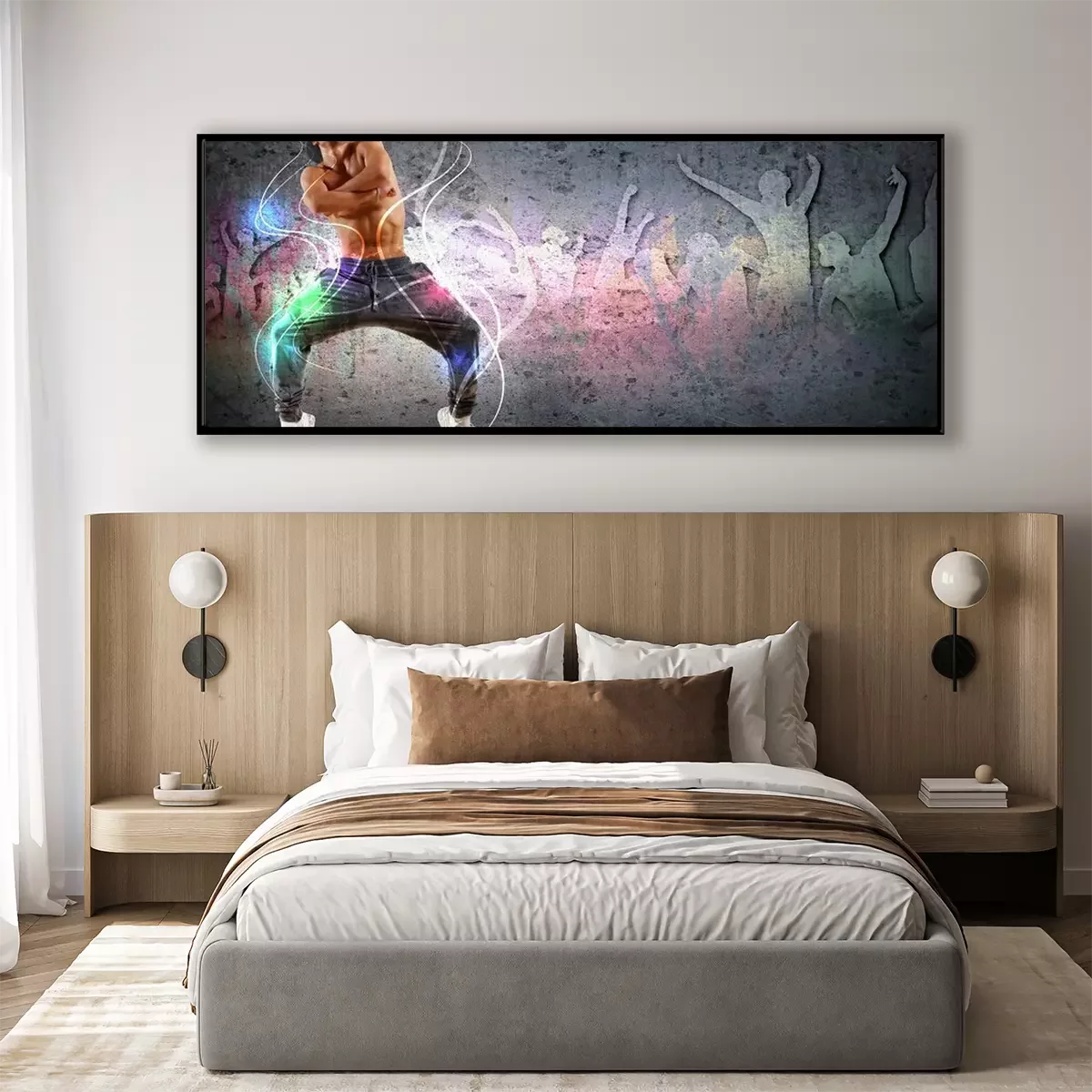 Poster  Jeune homme danse hip-hop avec des lignes de couleur