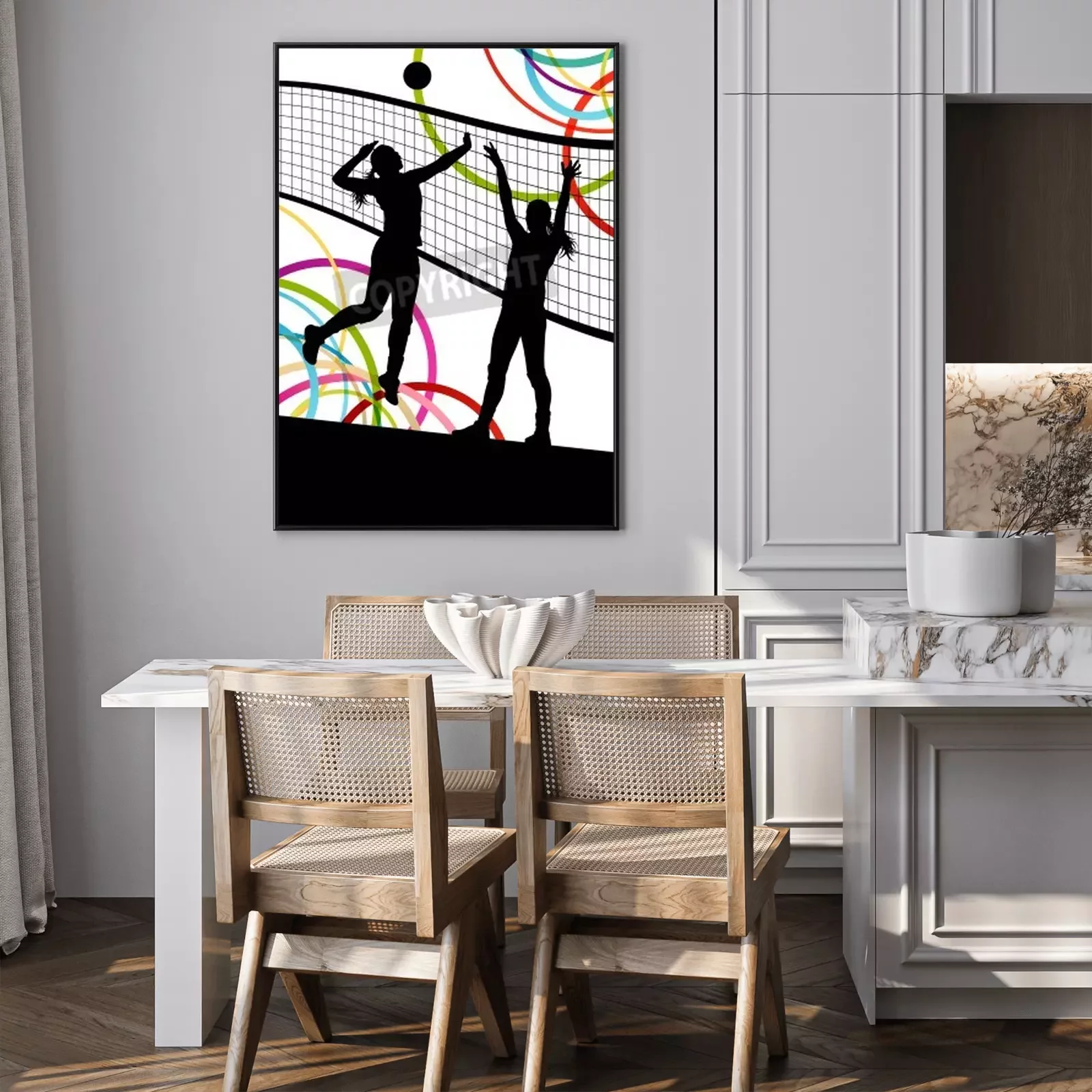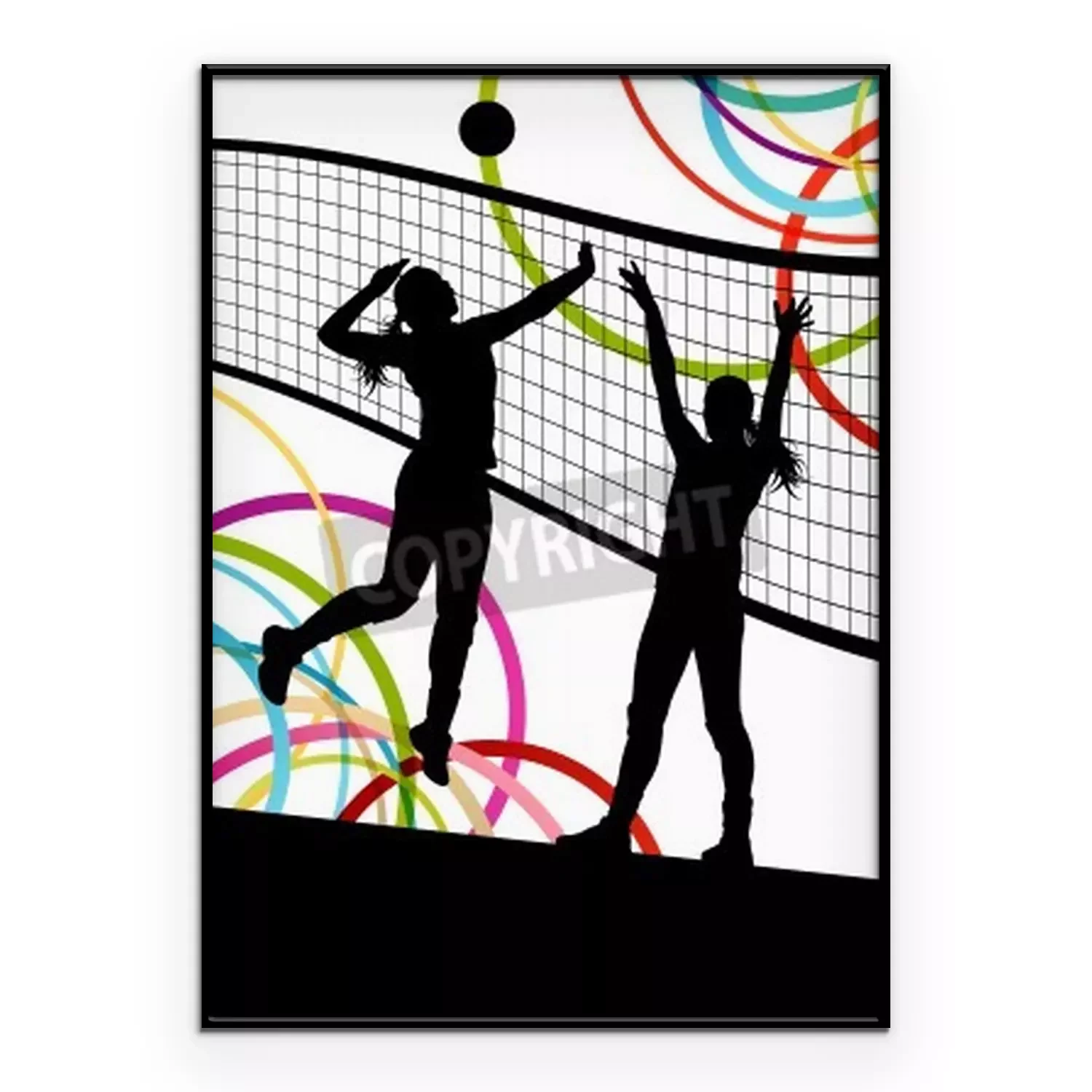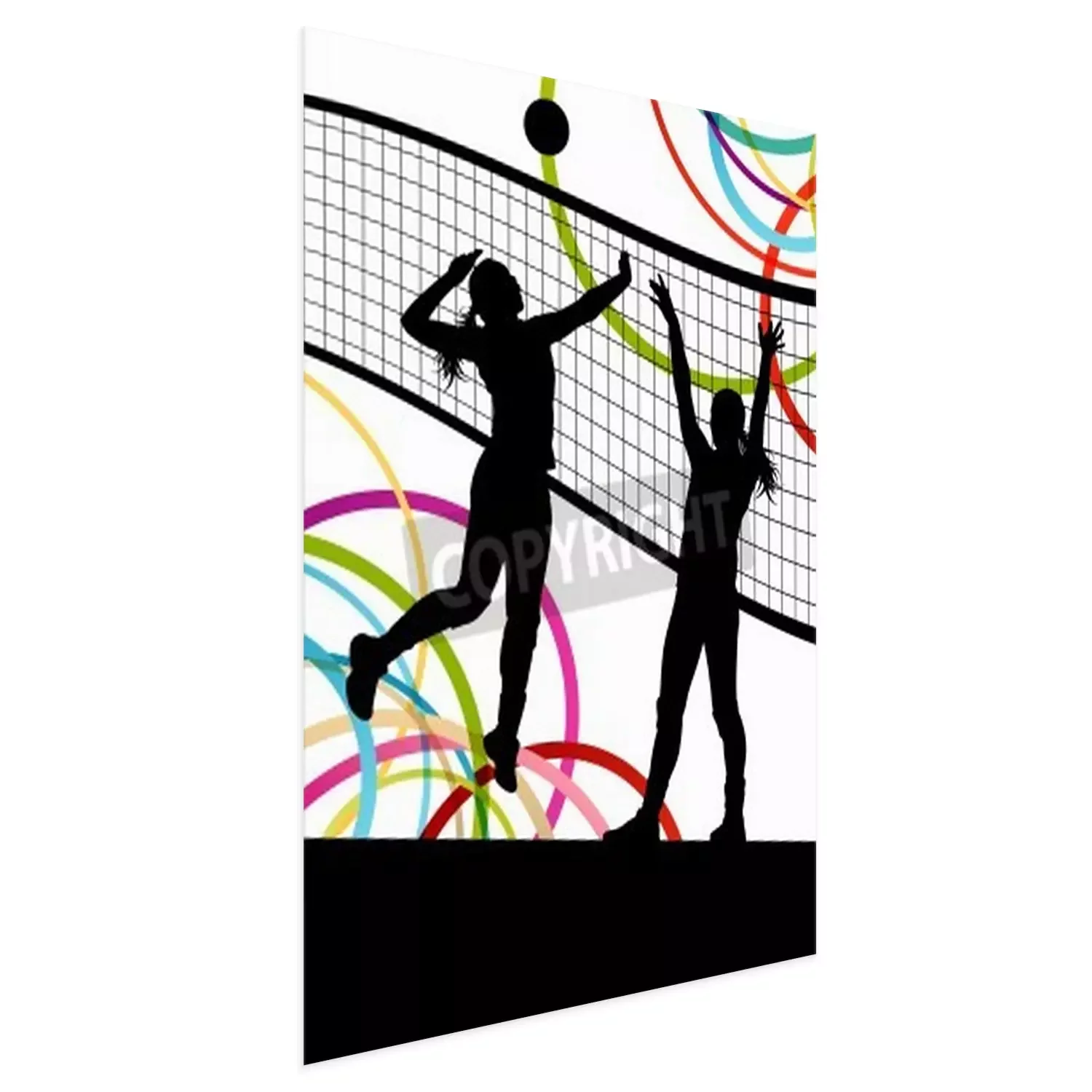 Poster  Jeunes femmes joueur de volley-ball silhouettes actives sportives couleur abstrait Illustrations dans