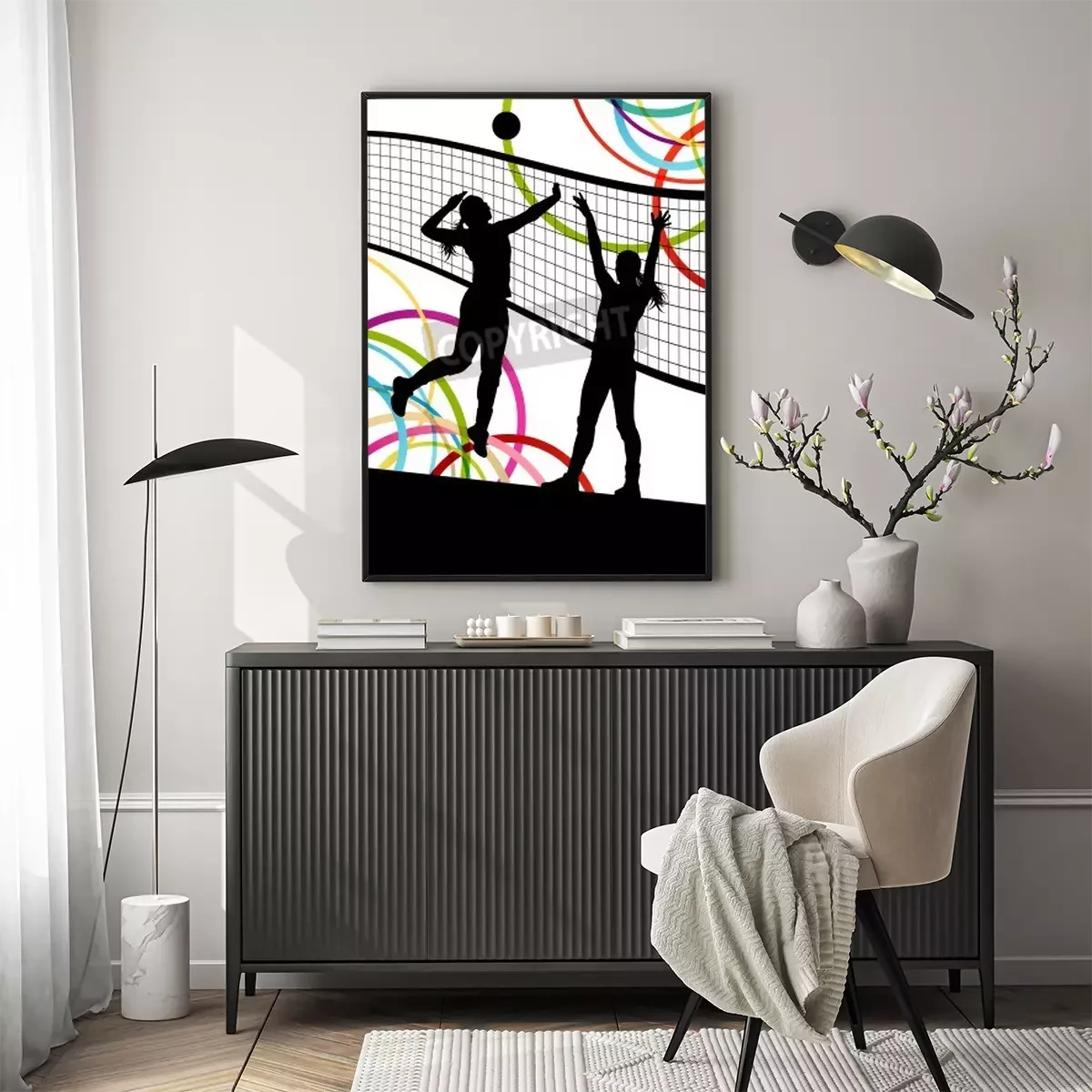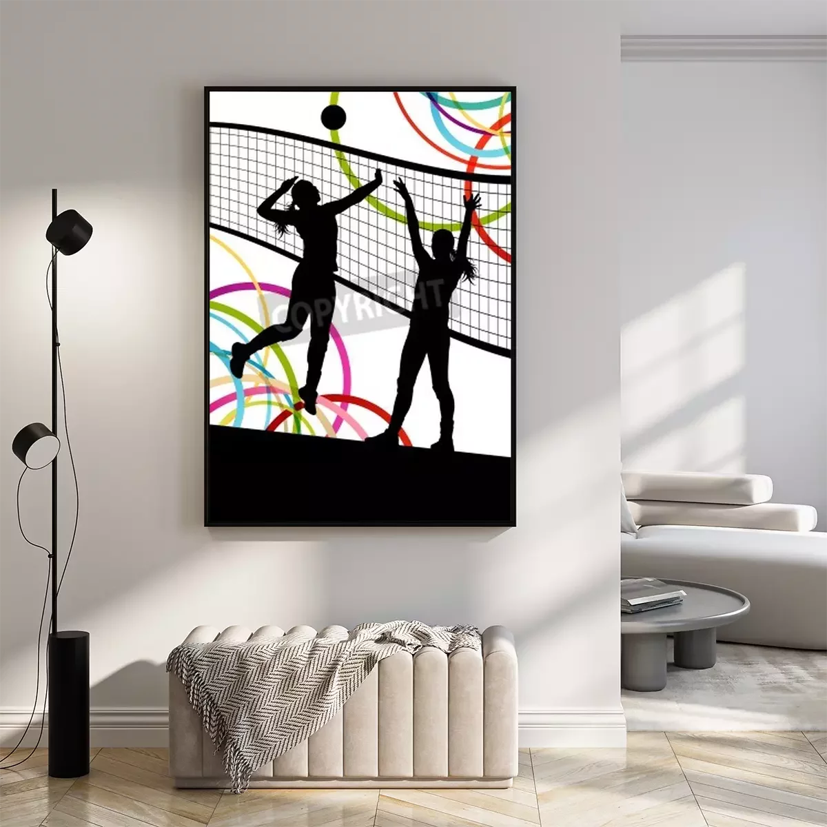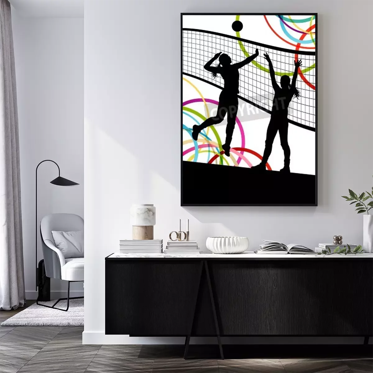 Poster  Jeunes femmes joueur de volley-ball silhouettes actives sportives couleur abstrait Illustrations dans