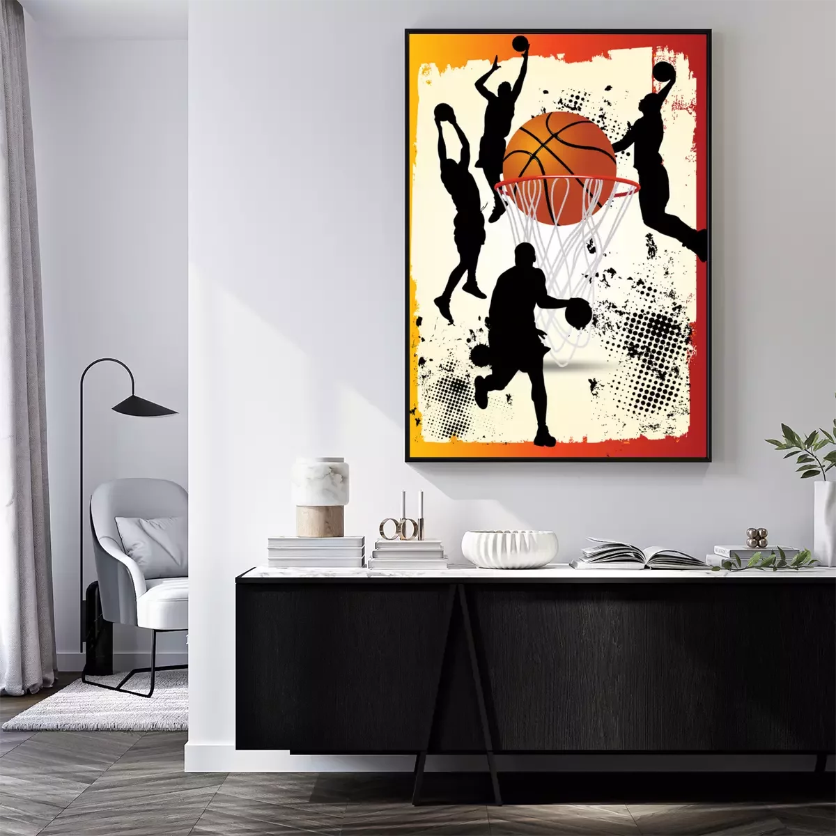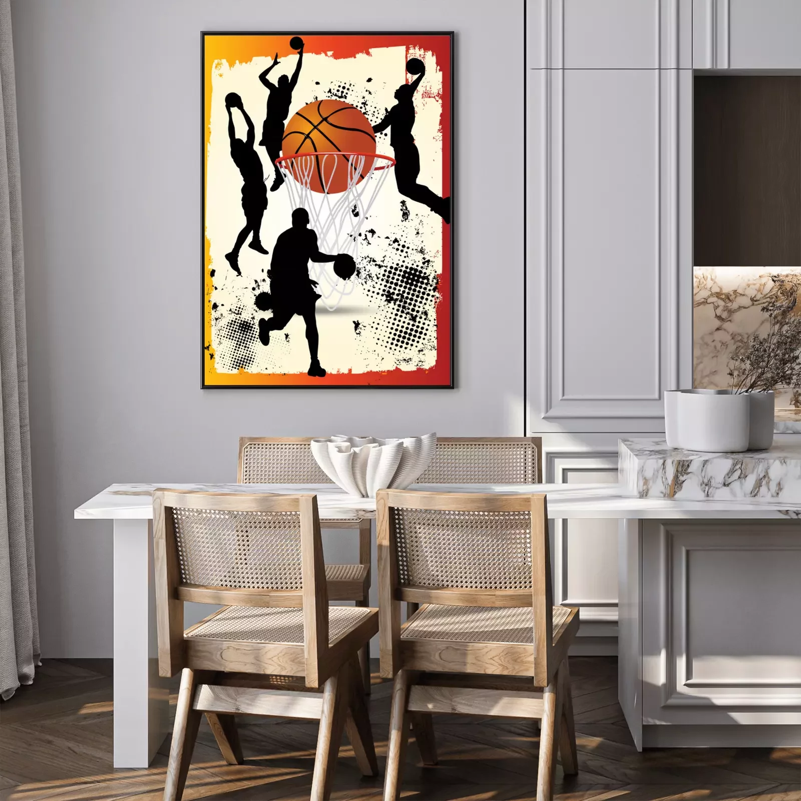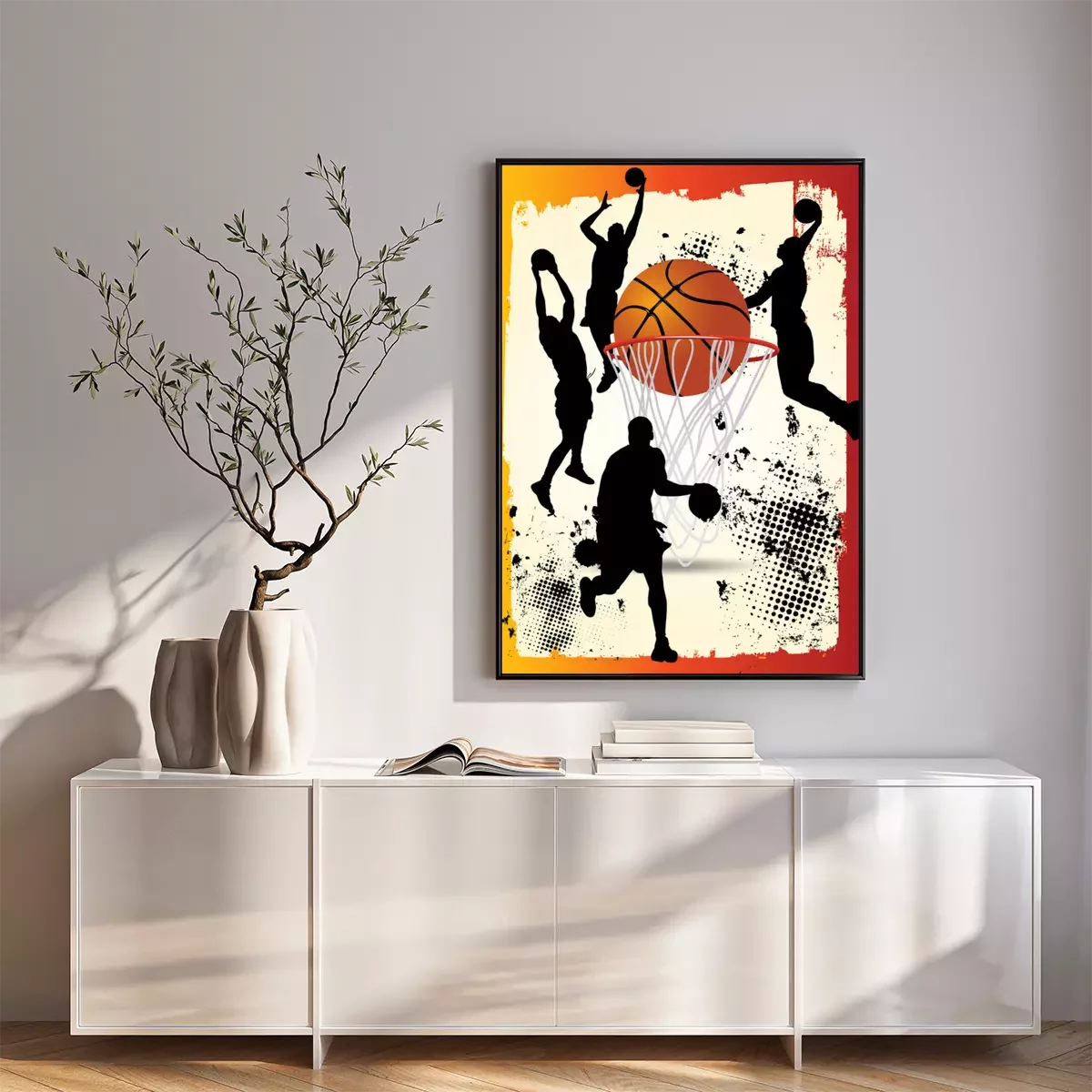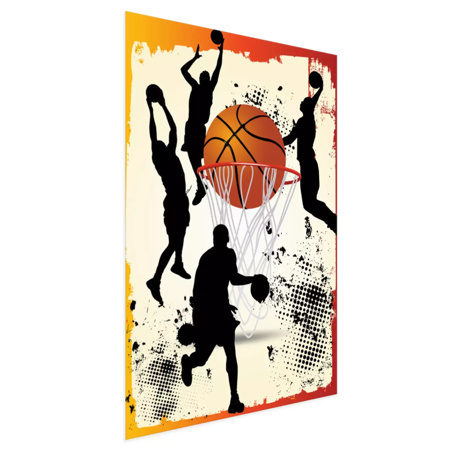 équipe de joueur de basket dans de nombreuses postures sur graphique grunge