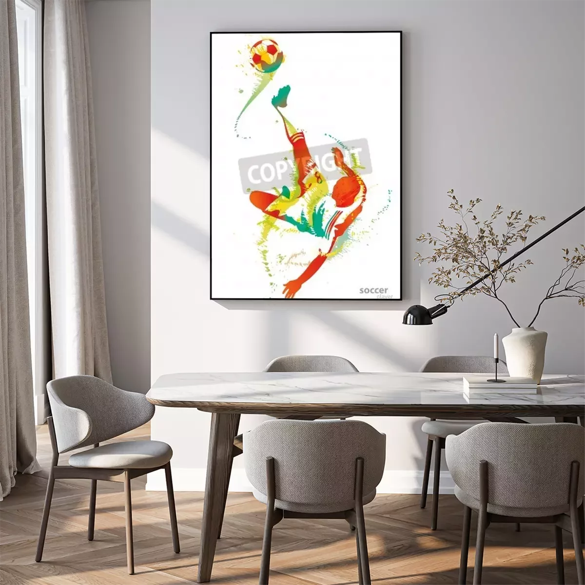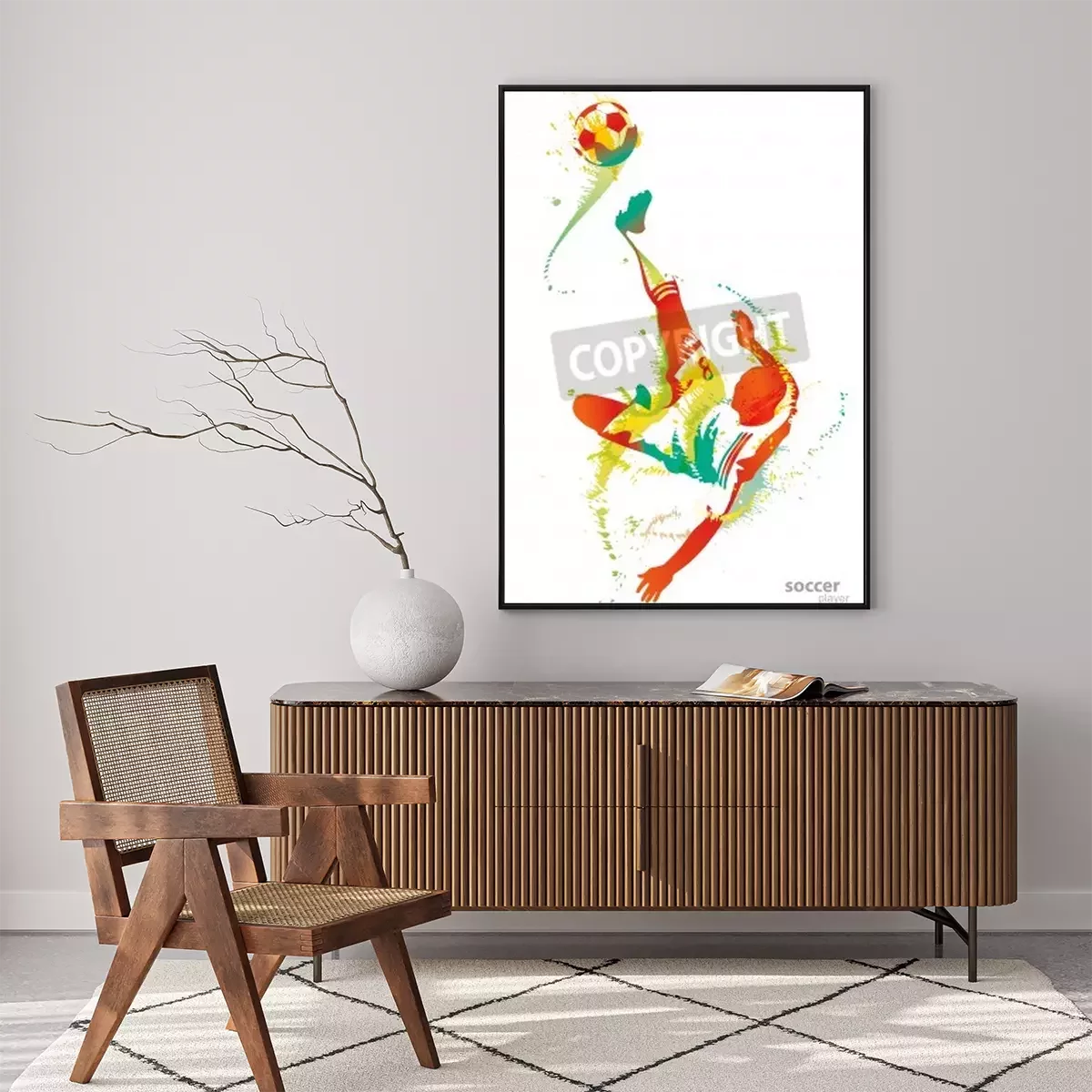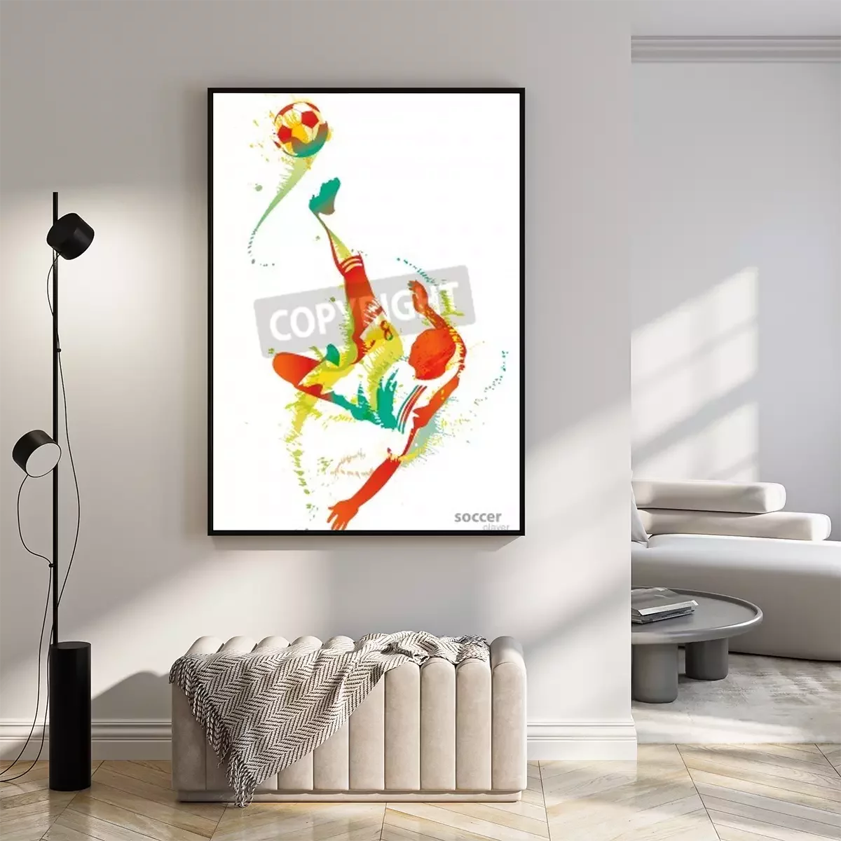 Poster : Joueur de football football peint avec des éclaboussures de peinture