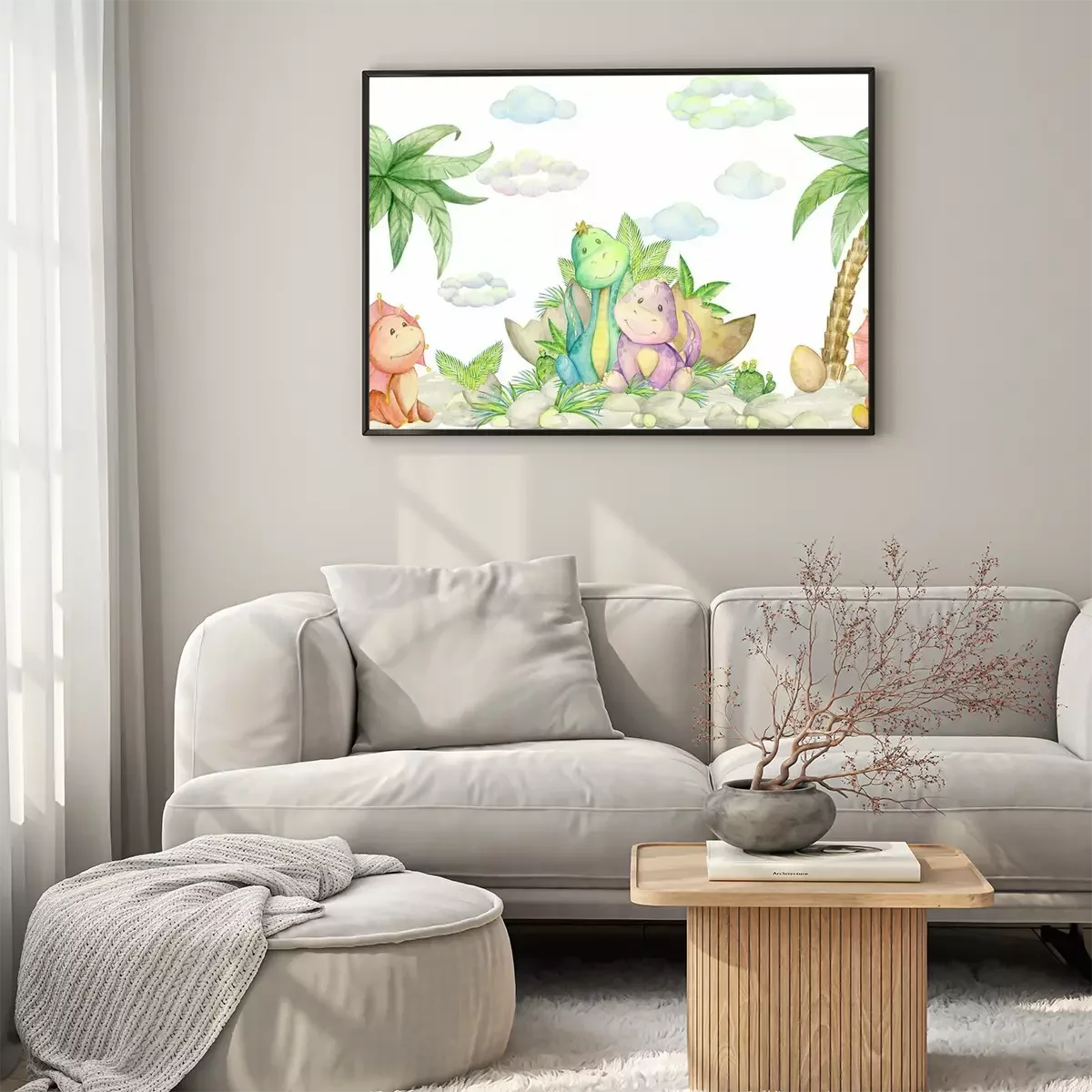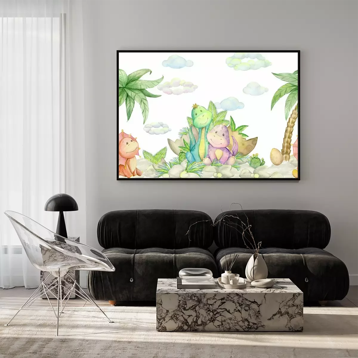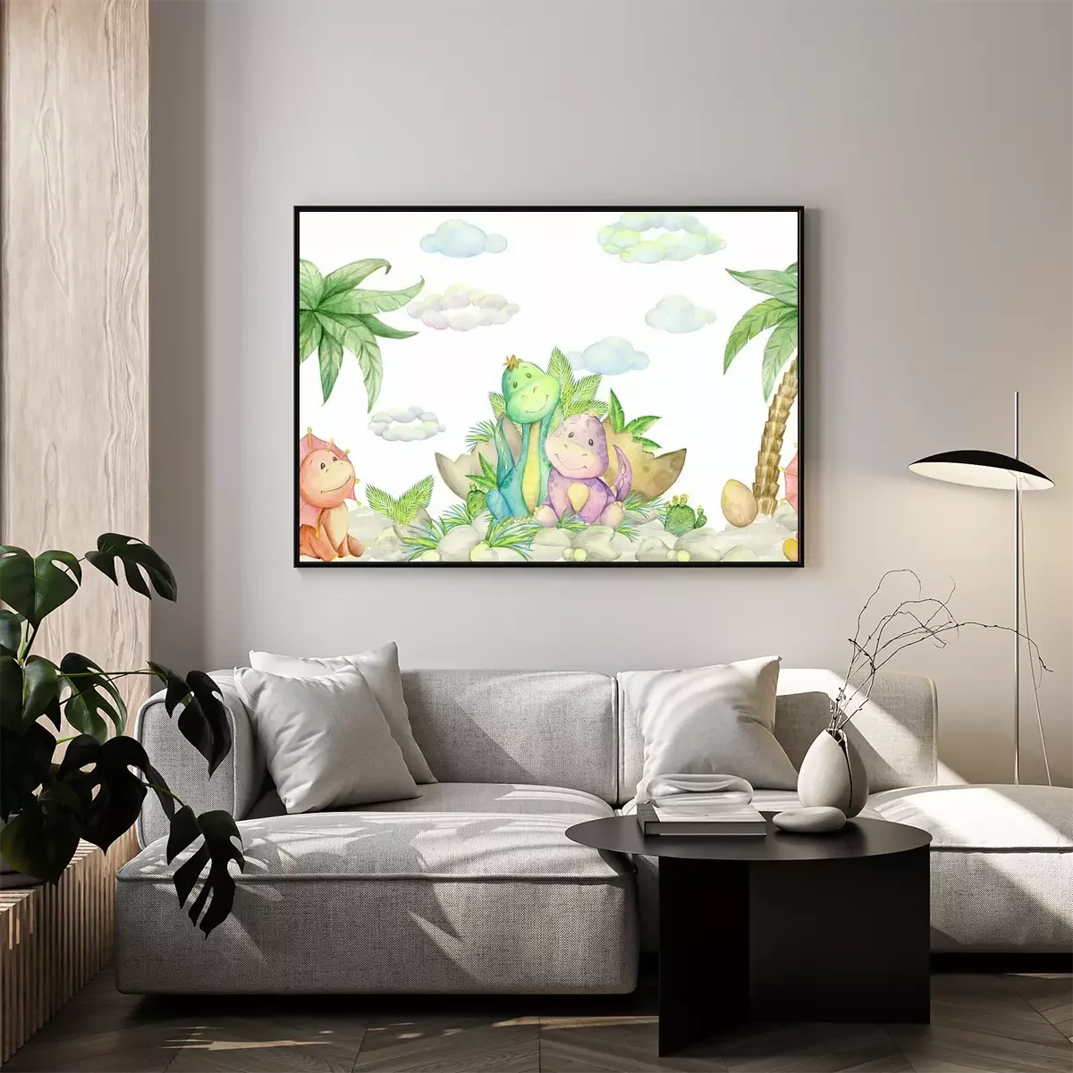 Poster  Joyeux dinosaures et palmiers exotiques