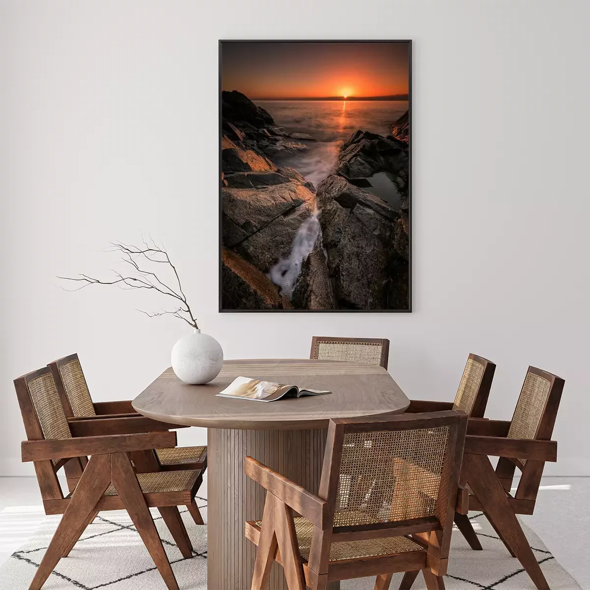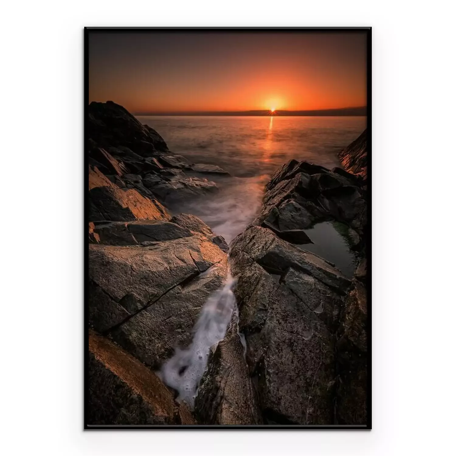Poster  L'aube entre les rochers. Mer, Lever soleil, mer, mer, côte, Rezovo, Bulgarie