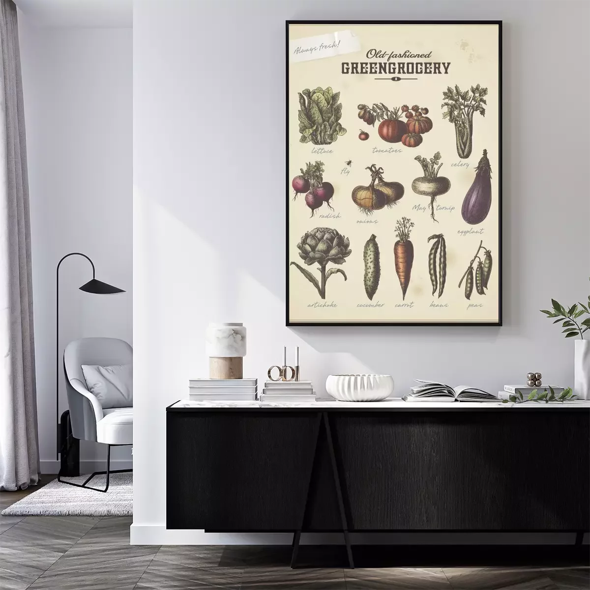 Poster : l'étiquette du millésime primeur avec différents légumes
