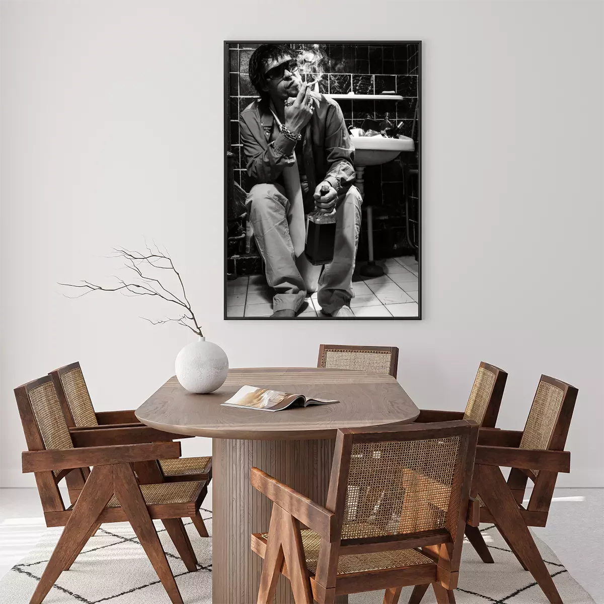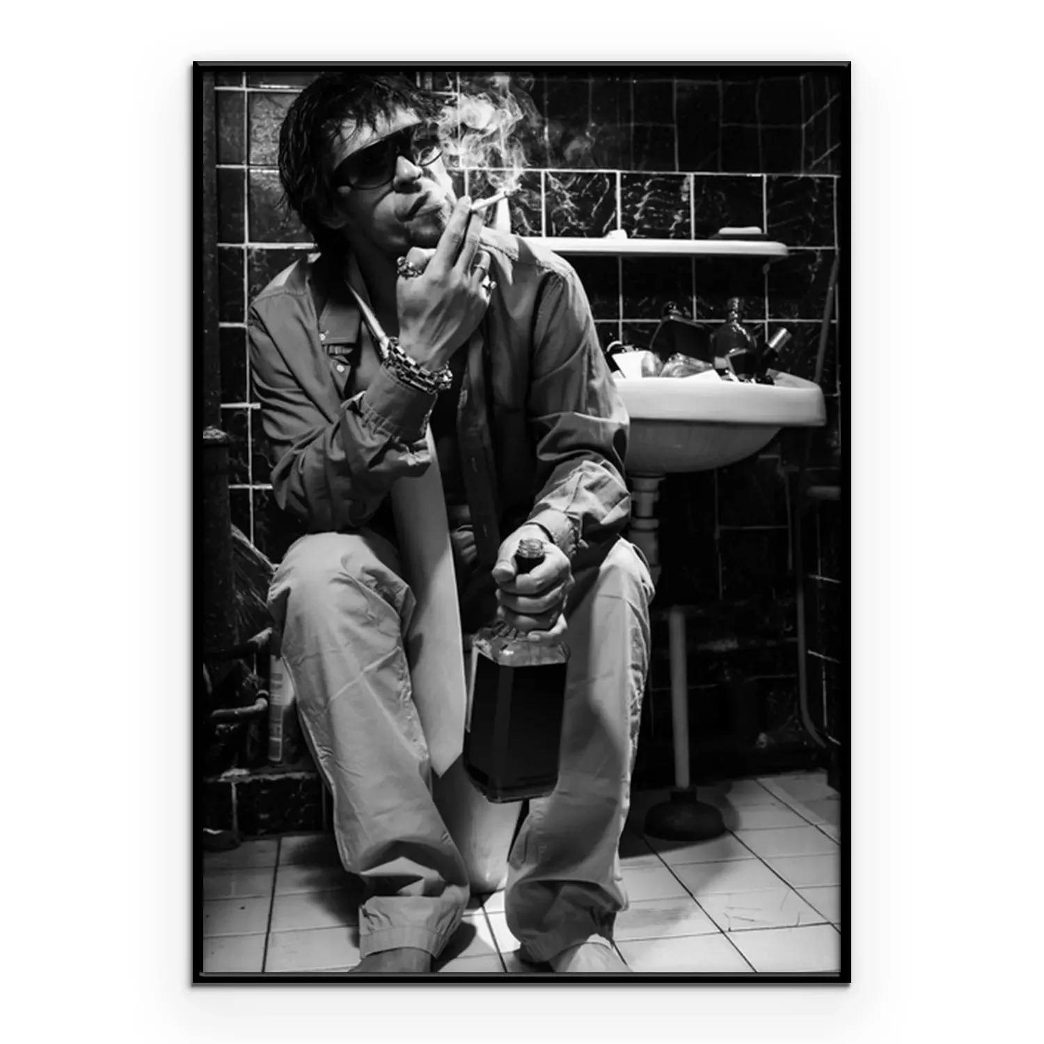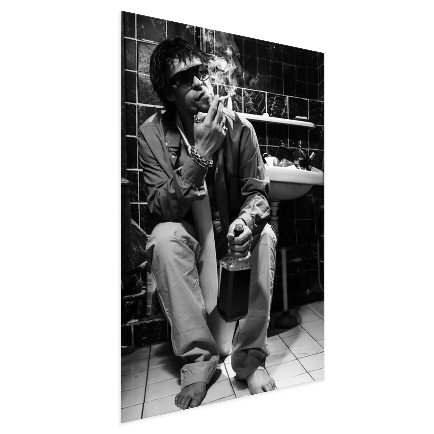 Poster : L'homme ivre se trouve dans les toilettes avec une bouteille d'alcool