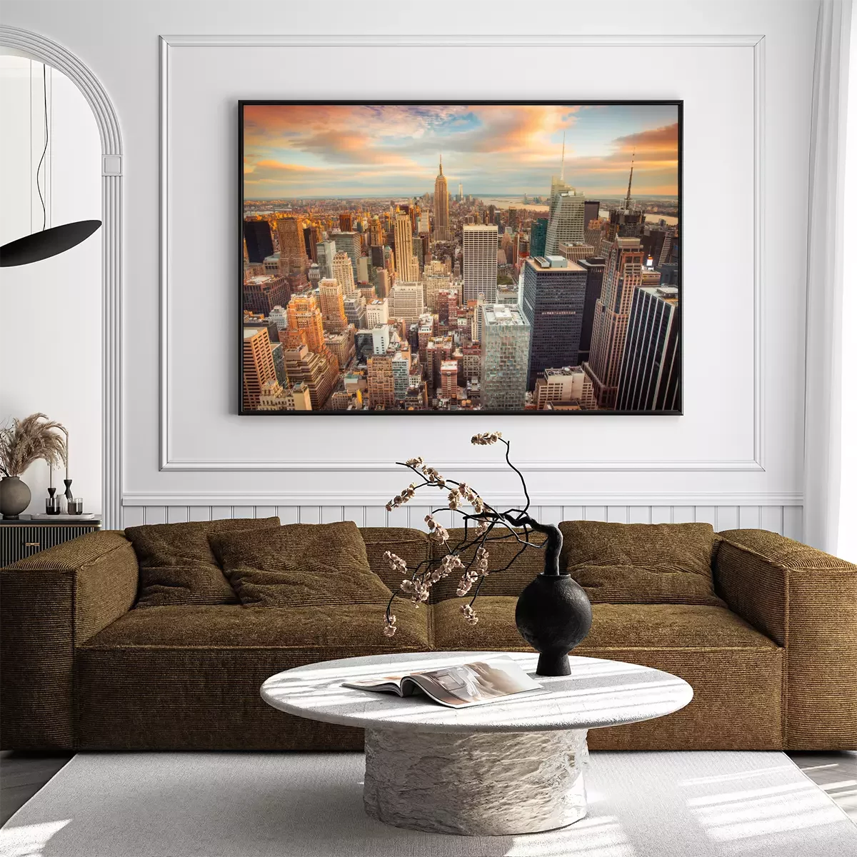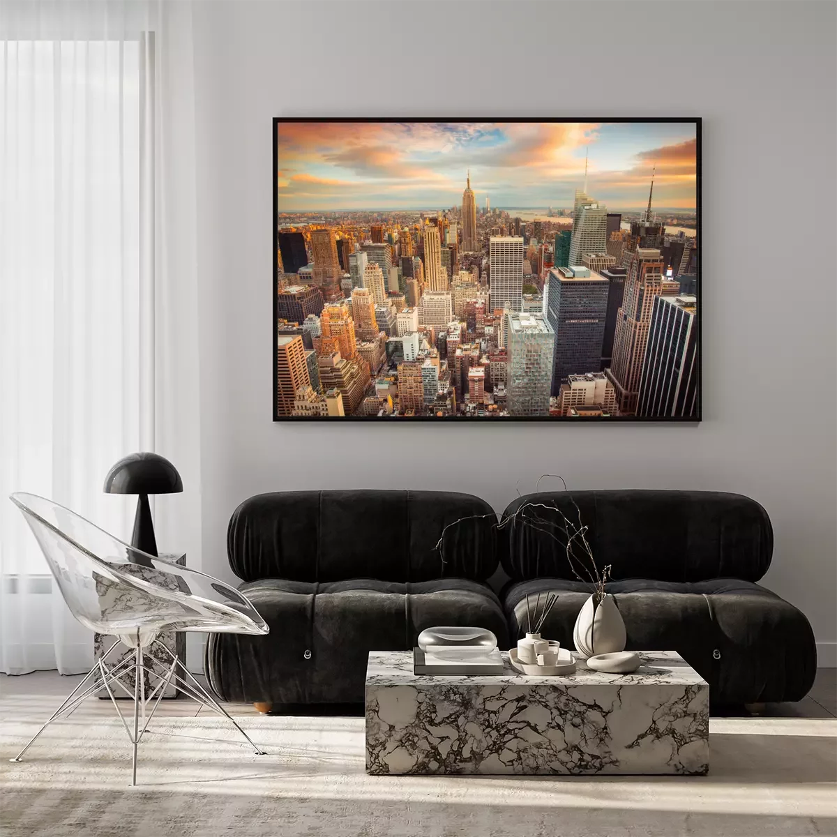 Poster : L'horizon de New York au coucher du soleil vu depuis les montagnes