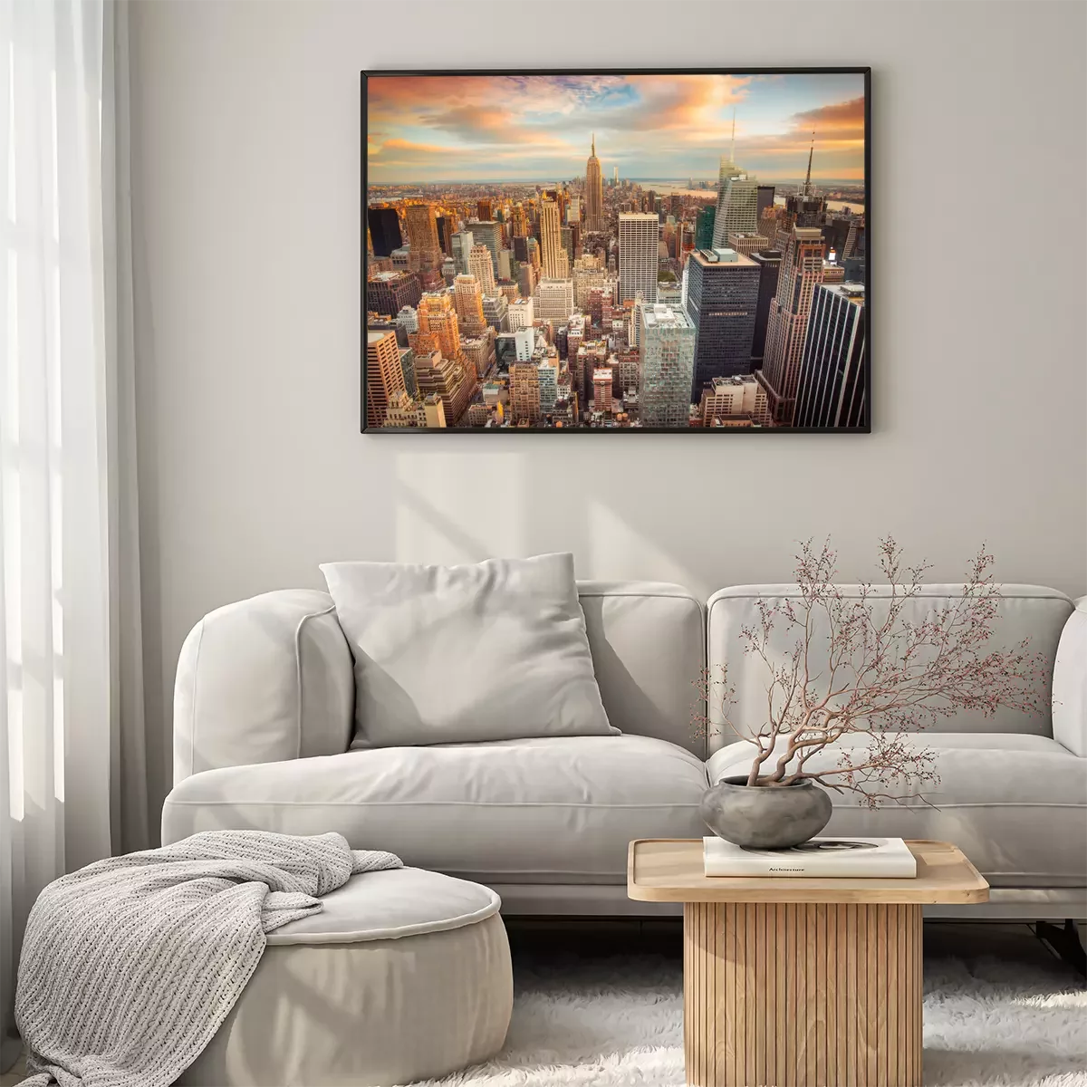 Poster  L'horizon de New York au coucher du soleil vu depuis les montagnes