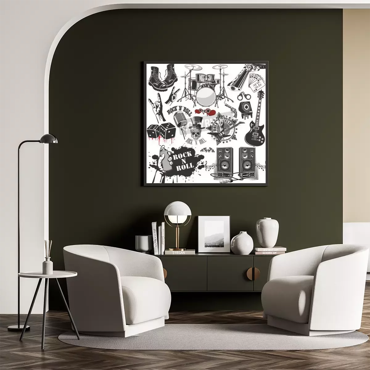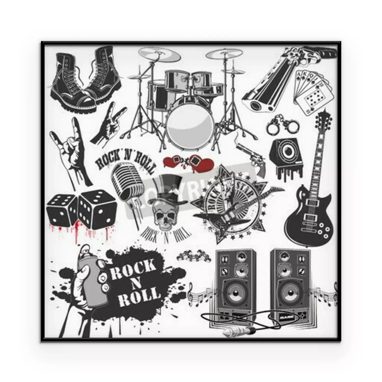 Poster  L'image vectorielle d'ensemble de symboles vectoriels liés au rock and roll