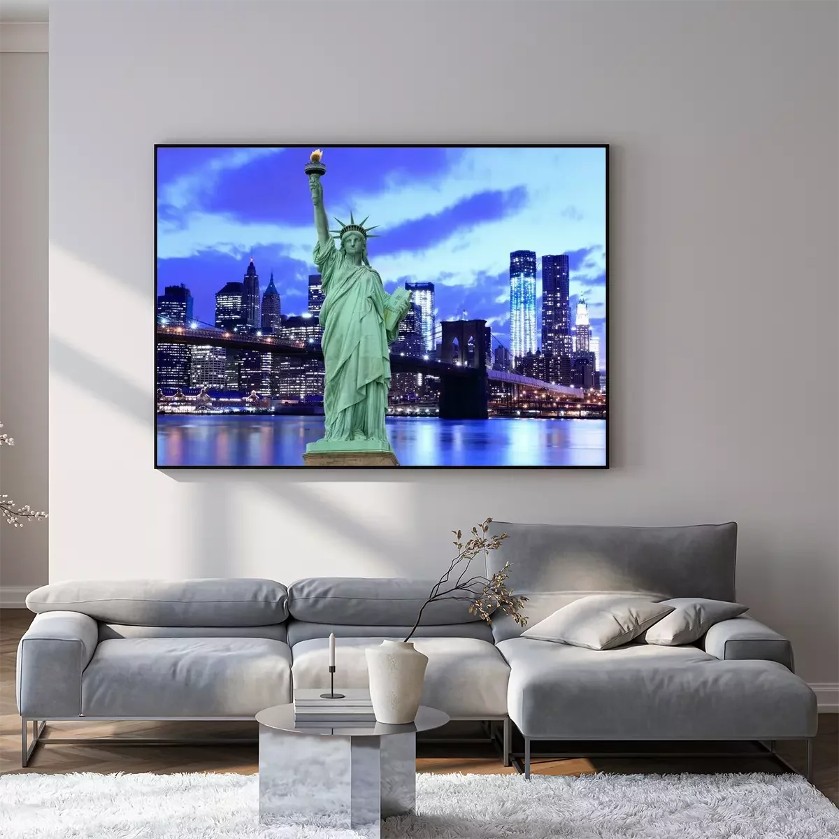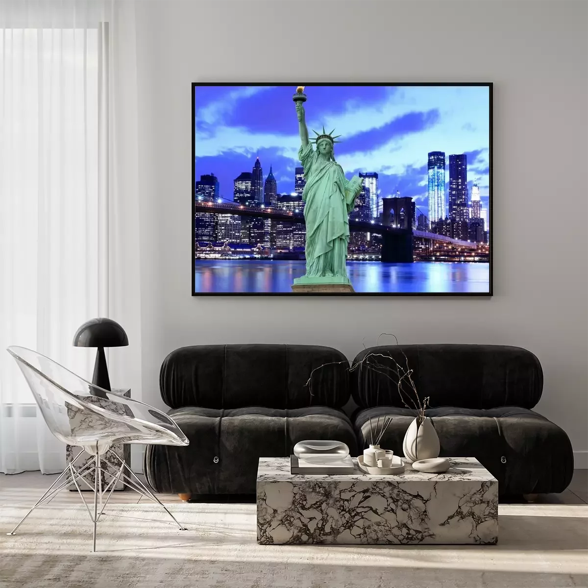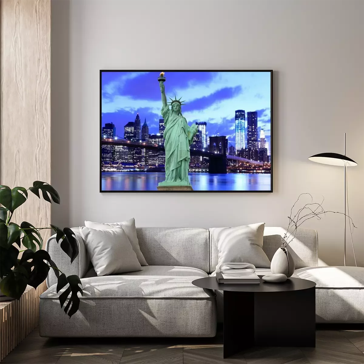 Poster  La Statue de la Liberté sur le fond du pont de Brooklyn